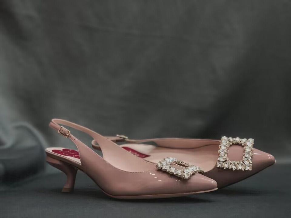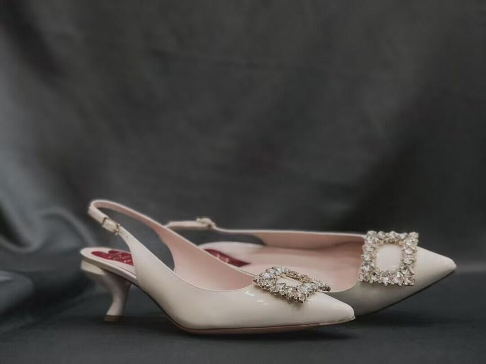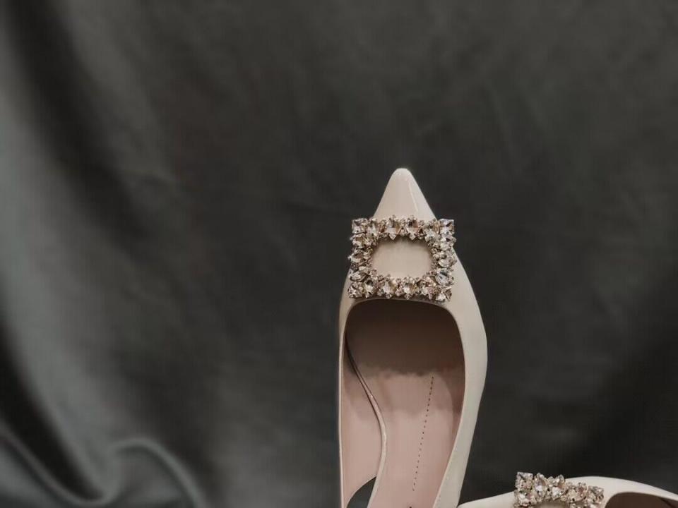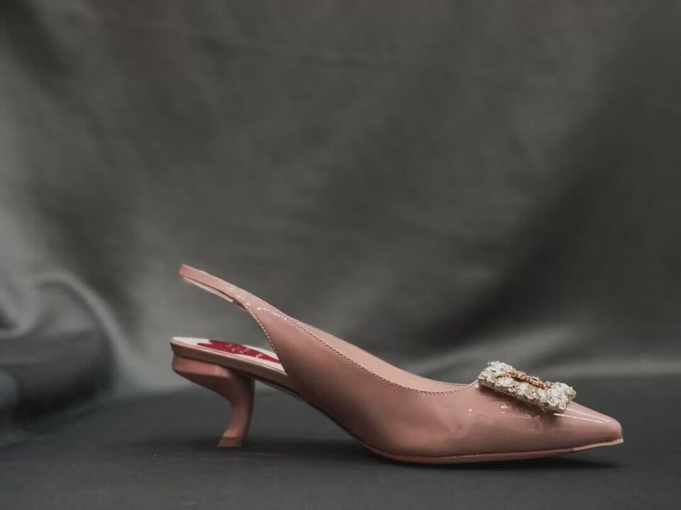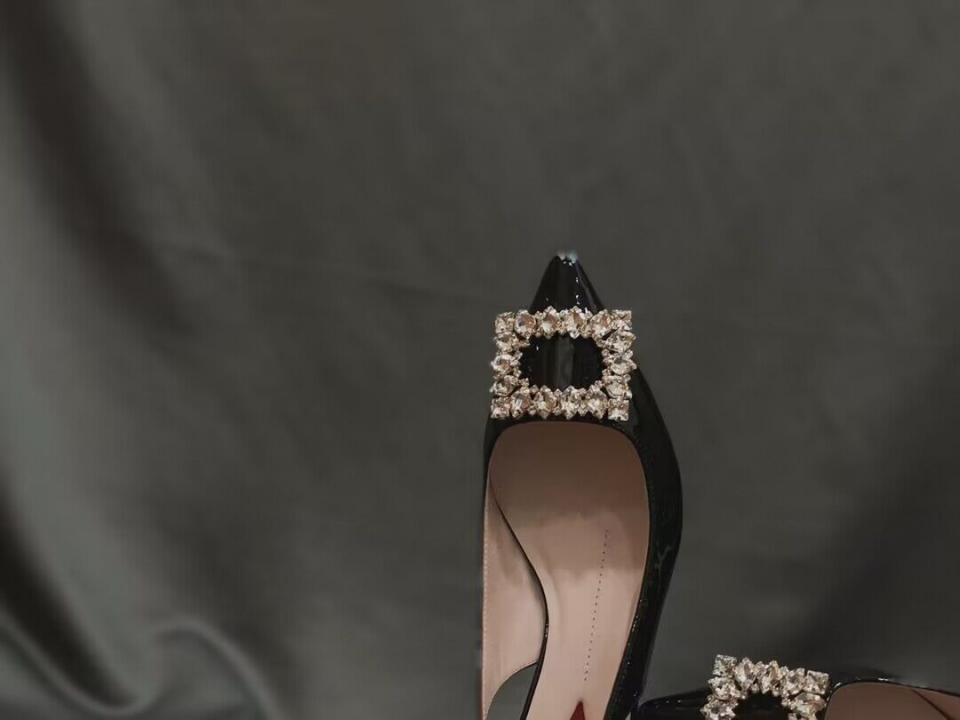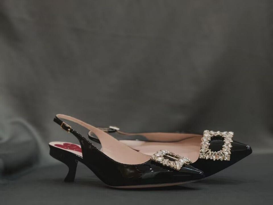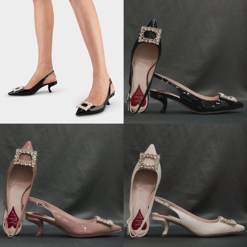 2023春夏新品 R家鑽扣漆皮細帶跟鞋 上腳氣質 好穿舒適