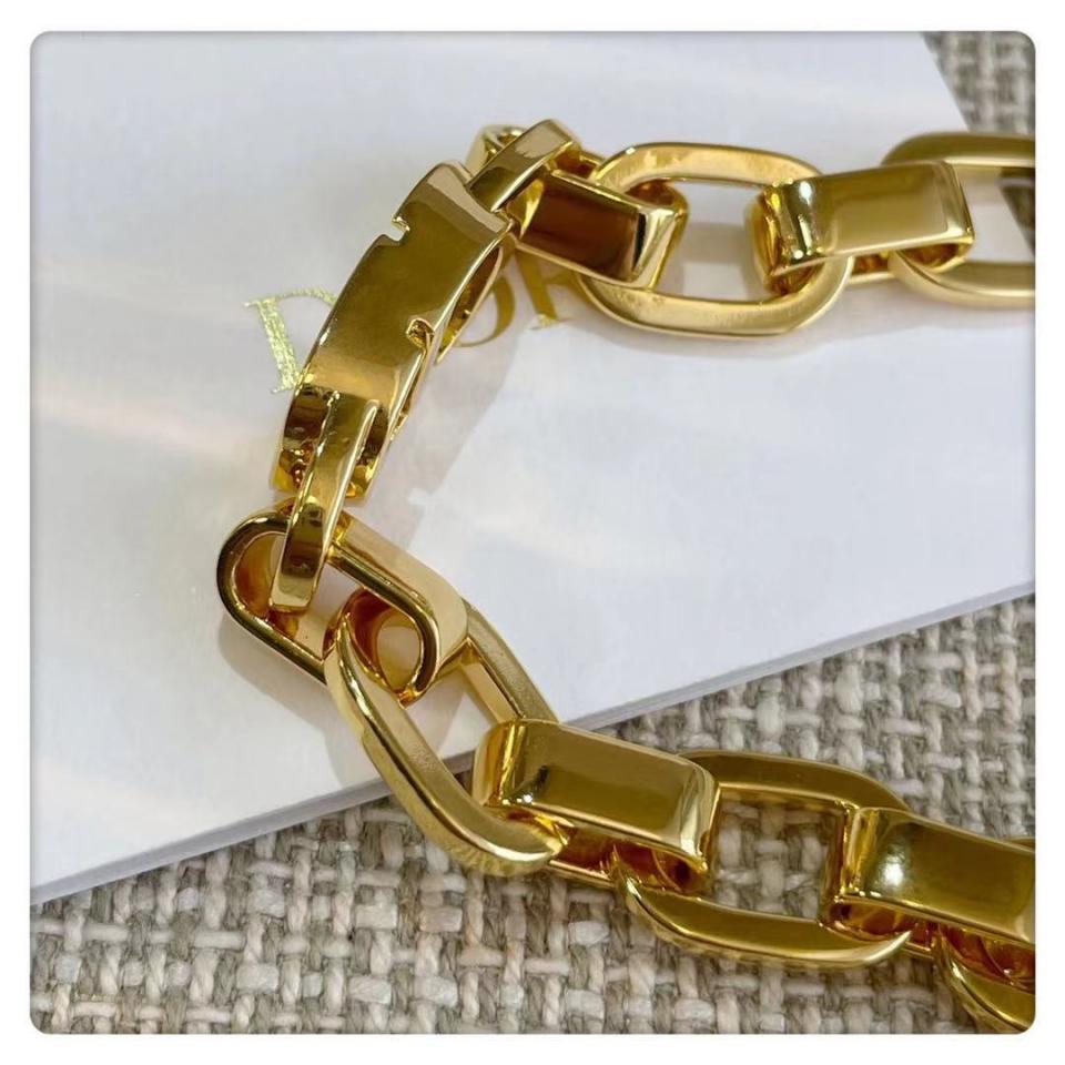 每一節環全部一個一個倒膜出來的,再一節一節純手工拼接起來的,這種手工鏈,很費工費成本,接著再一個個點焊固定住,中間造型的CD Logo,特別特別獨特個性,上手酷酷的,復古時尚又潮流!