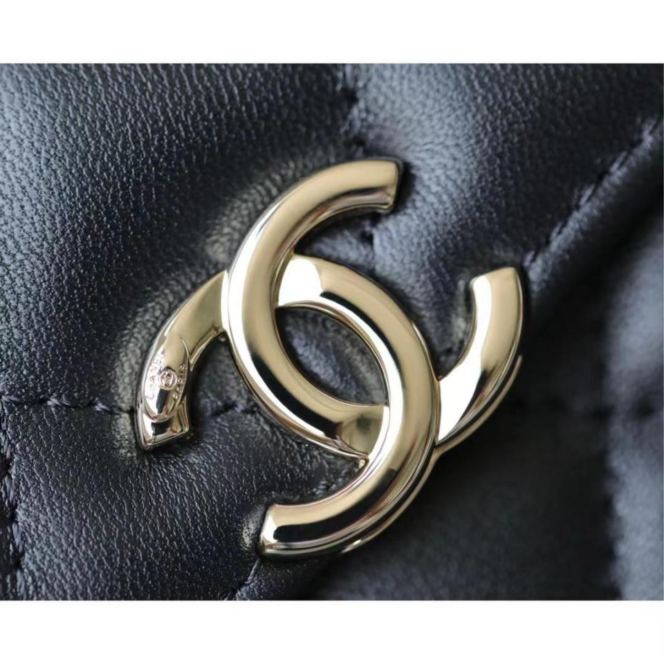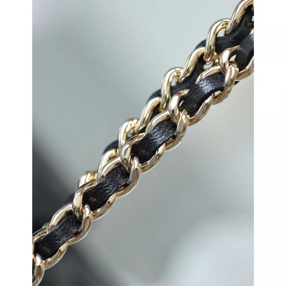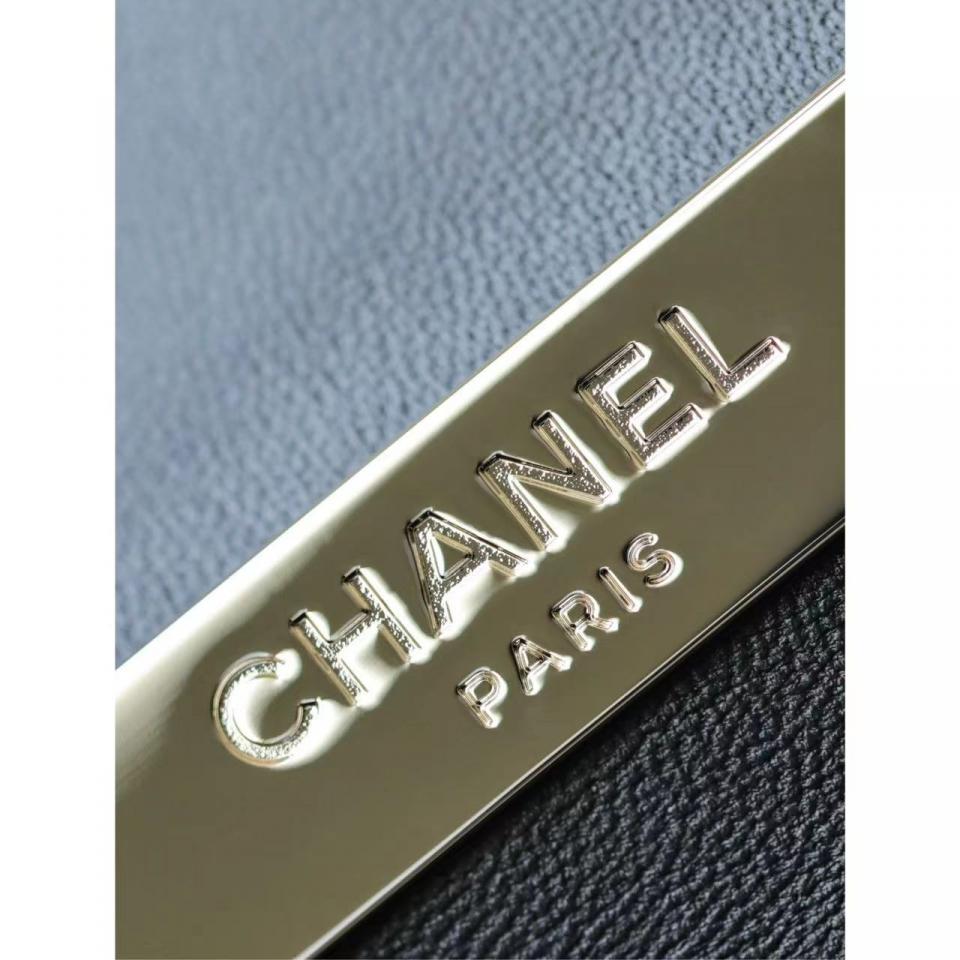 C家22bag字母單肩購物袋槍灰色 金扣(中號)