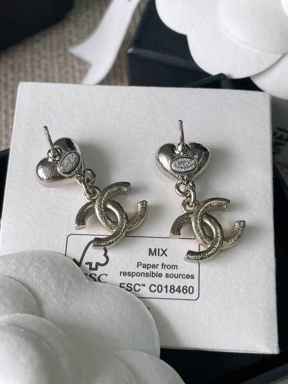 銀色愛心搭配淺金色雙C的設計