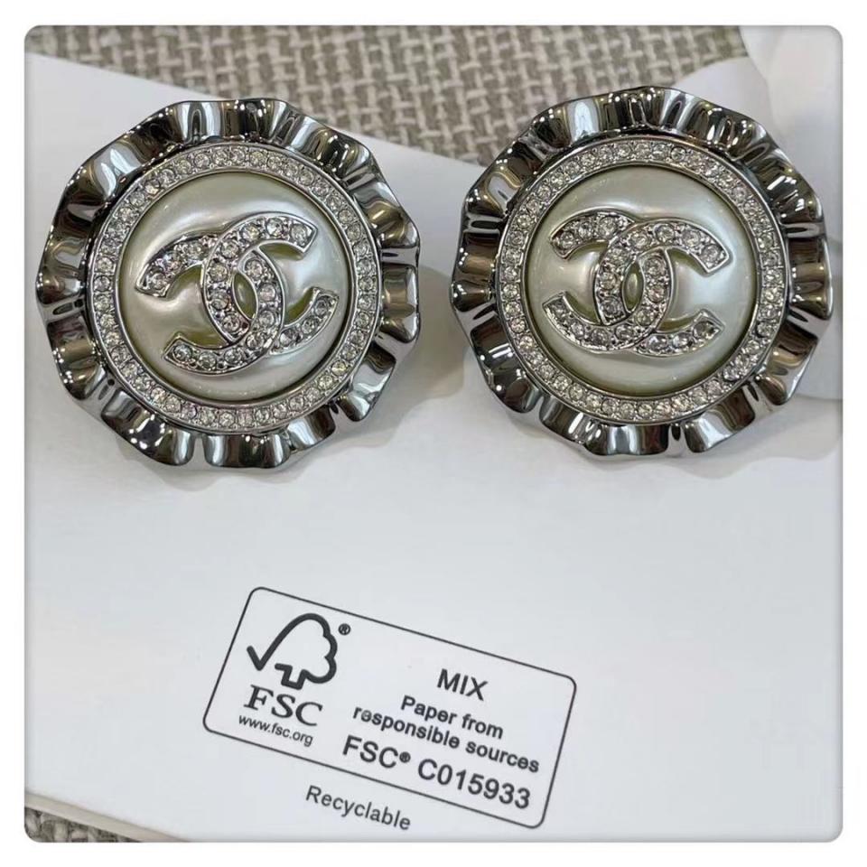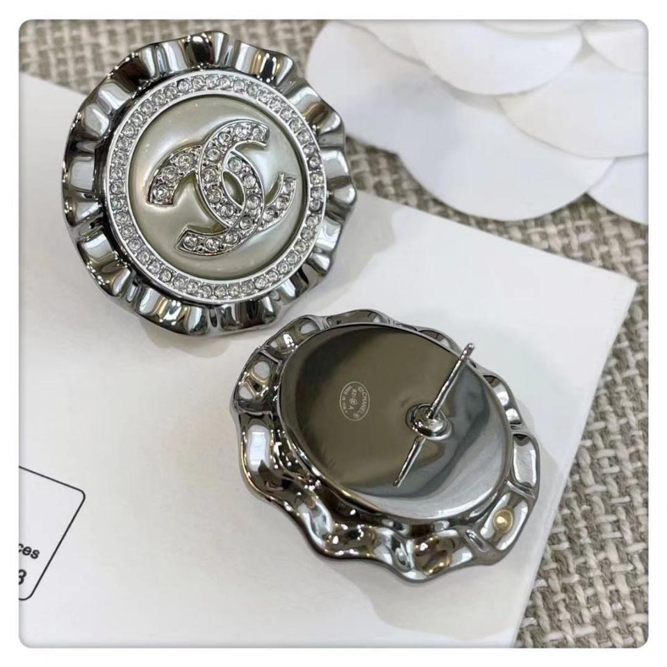 CC的鑽是採用兩種不同規格的施華洛水鑽,C鑽的五金和褶皺五金是分件做的!然後在重疊組裝合併成整體,五金處理得非常精亮光滑細膩!顏色不是銀色,也不是黑色,而是貴金屬黑釕的電鍍顏色!