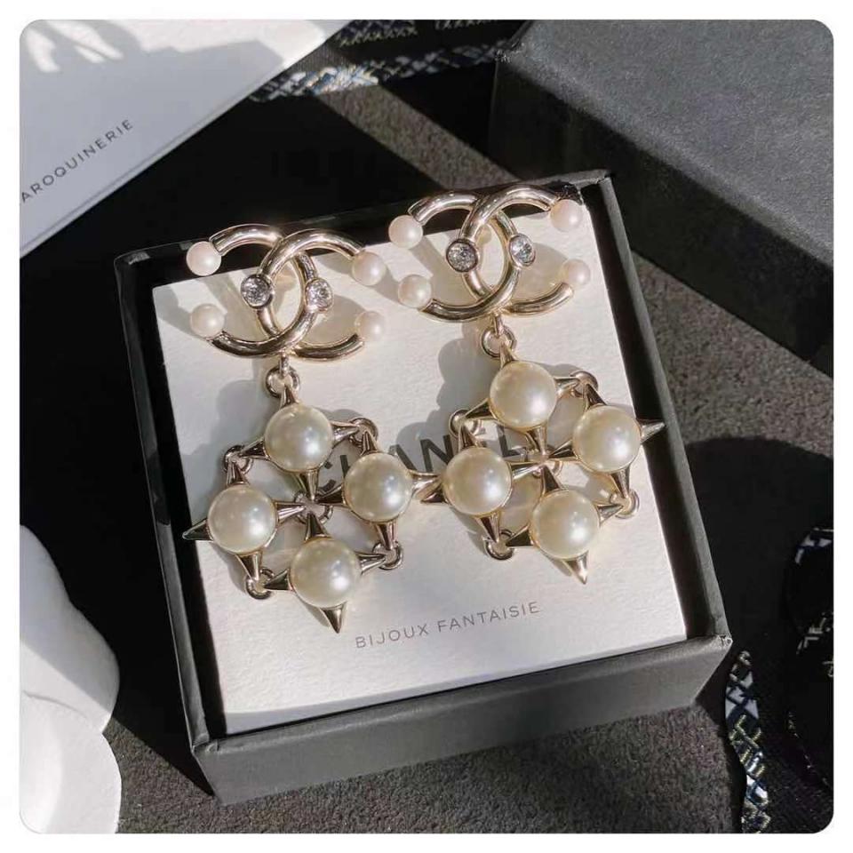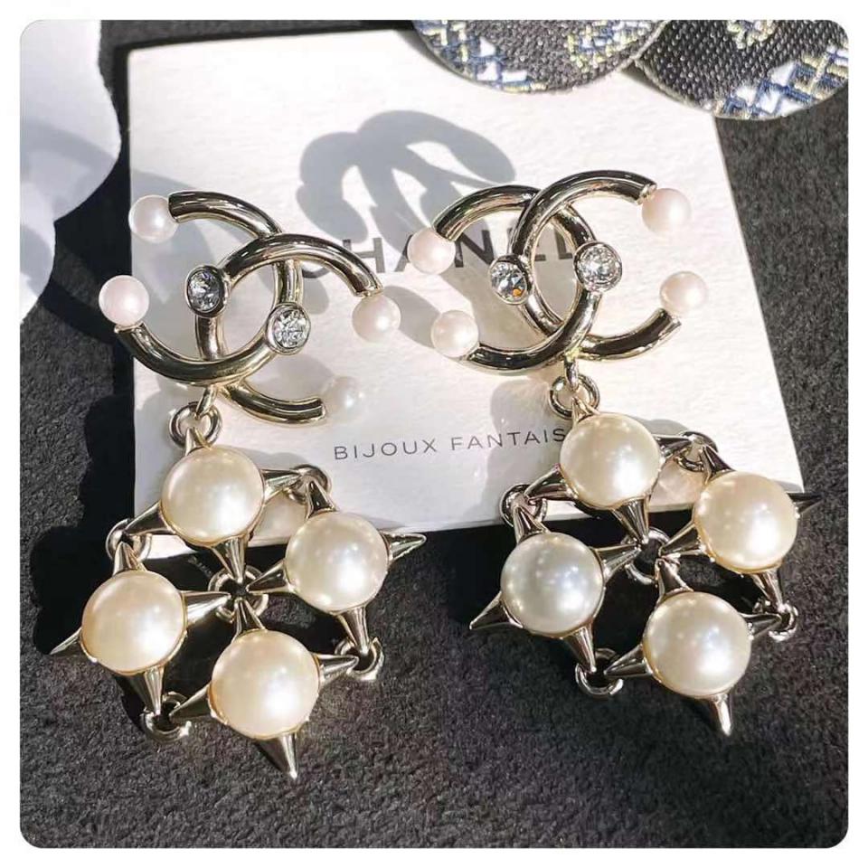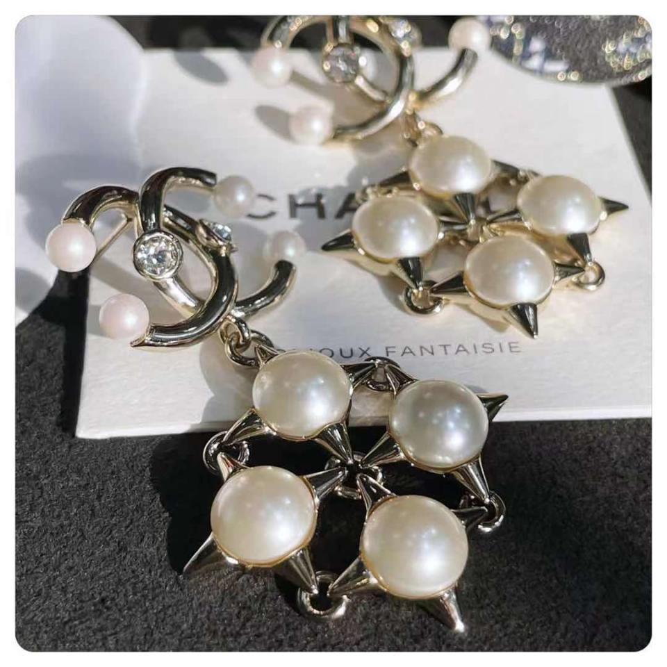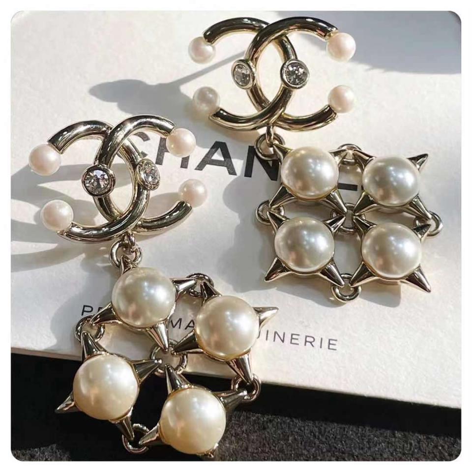 2021早秋 C家珍珠十字鉚釘雙C耳環