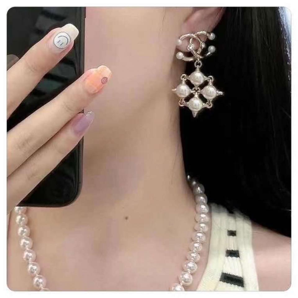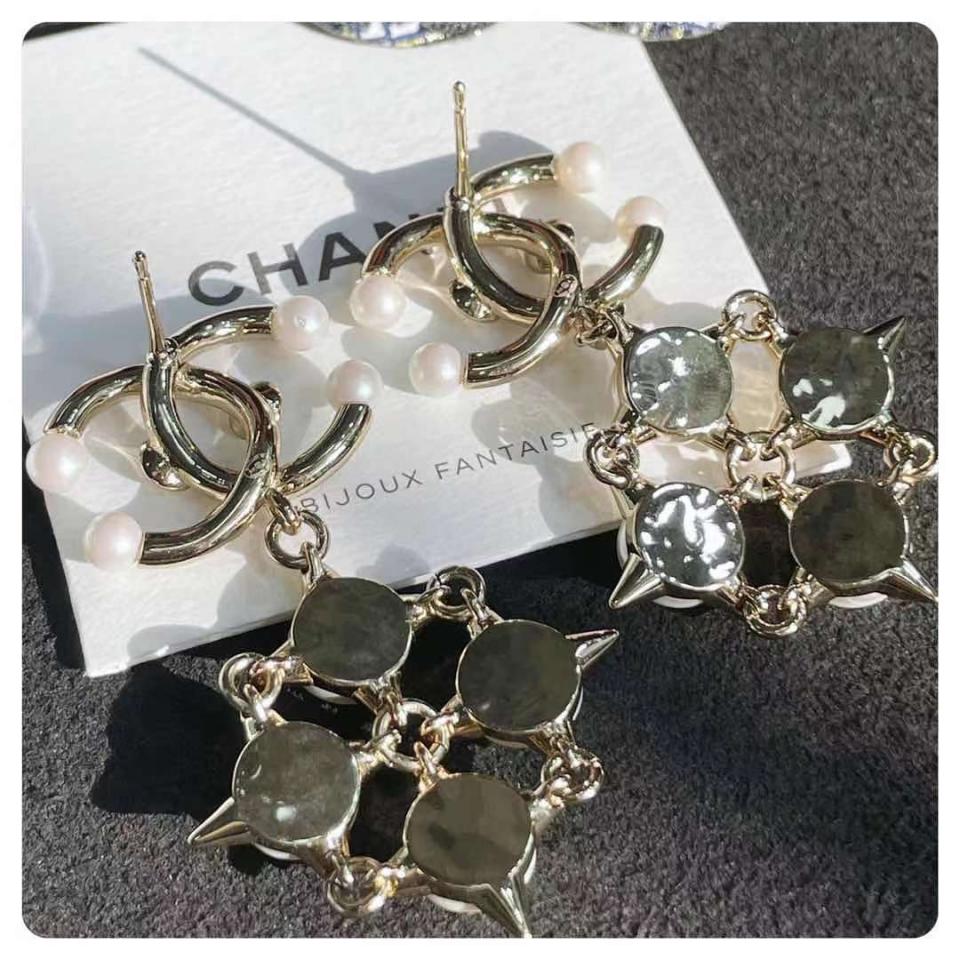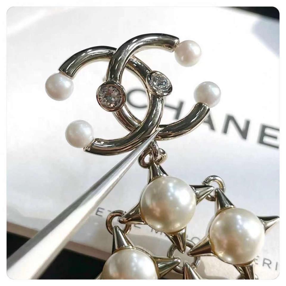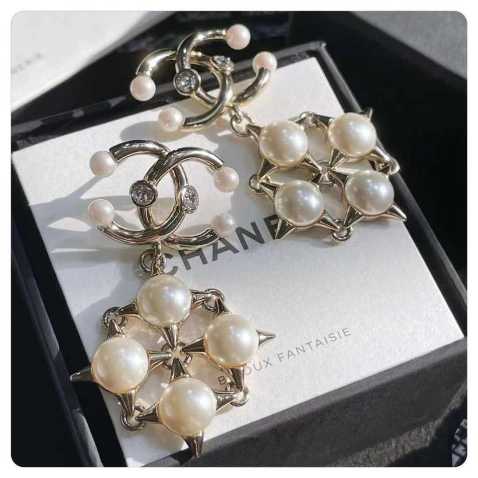 2021早秋 C家珍珠十字鉚釘雙C耳環