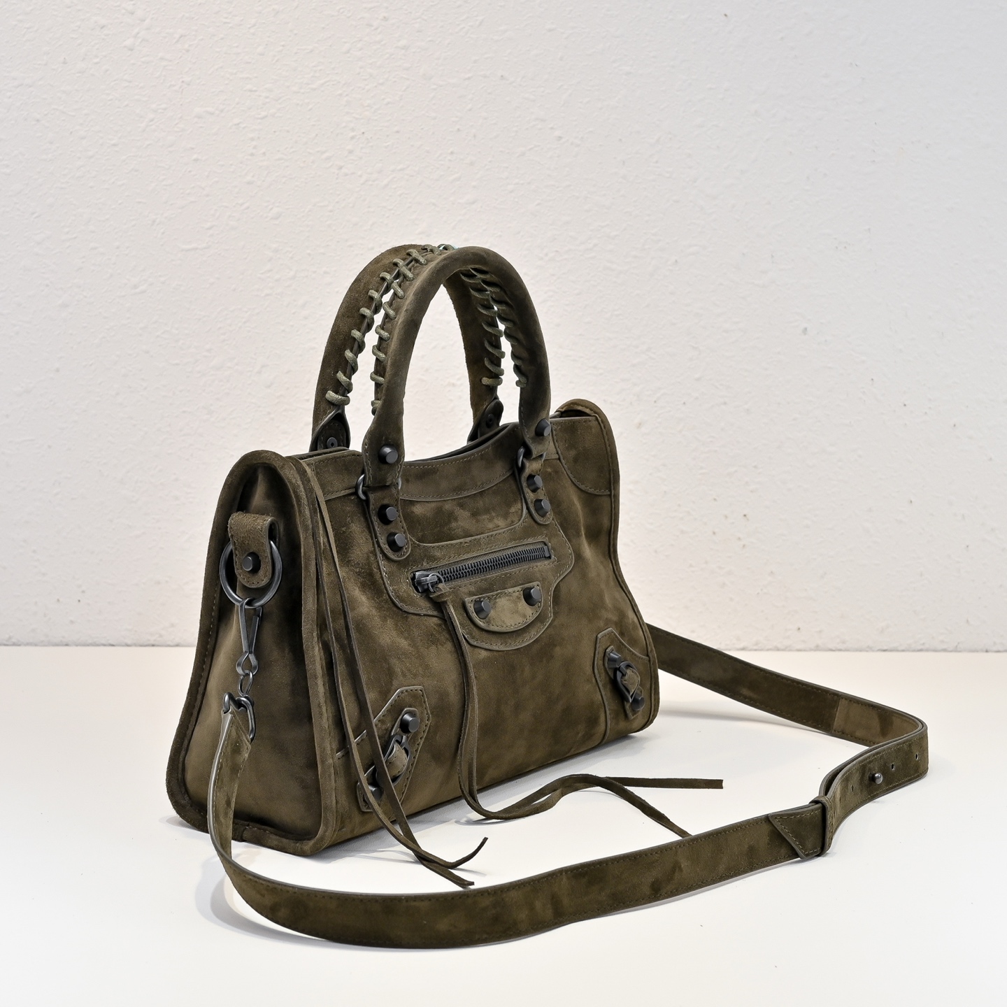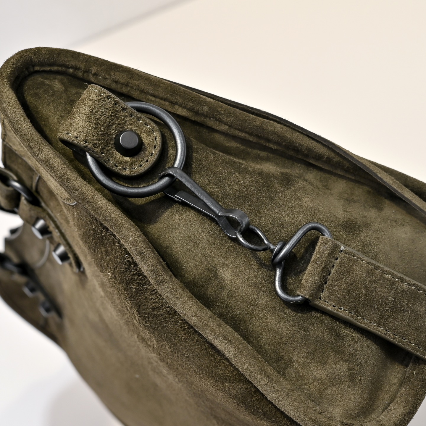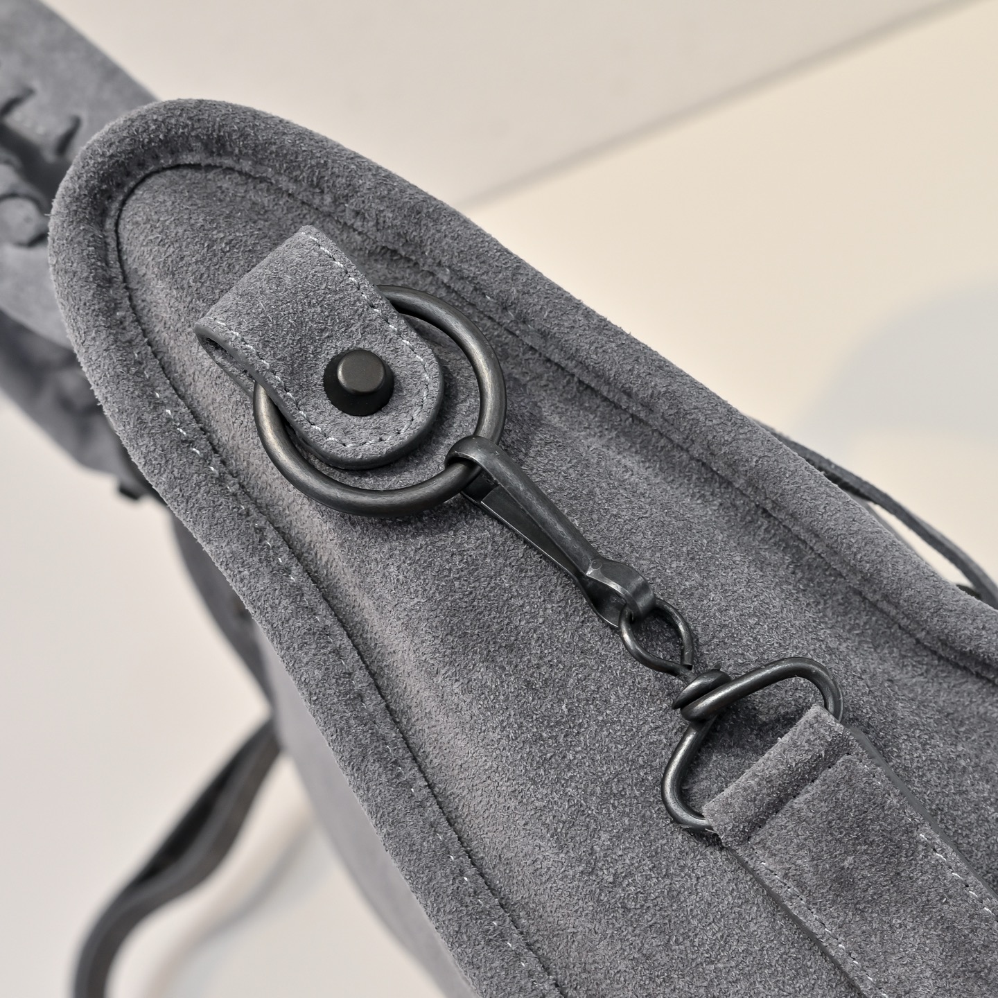 選用高級進口麂皮,手感細膩柔軟,質感高級。麂皮的表面帶有自然霧面光澤,讓整體包型更顯復古氛圍,同時也保有Blcg一貫的酷帥感。
