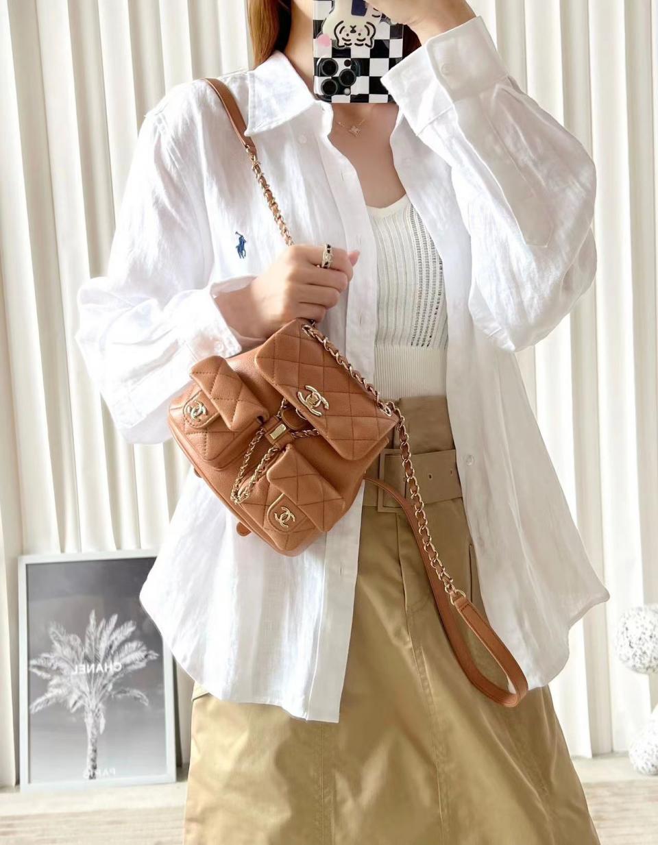 2023秋冬 C家23P雙口袋復古背包(焦糖色)小號