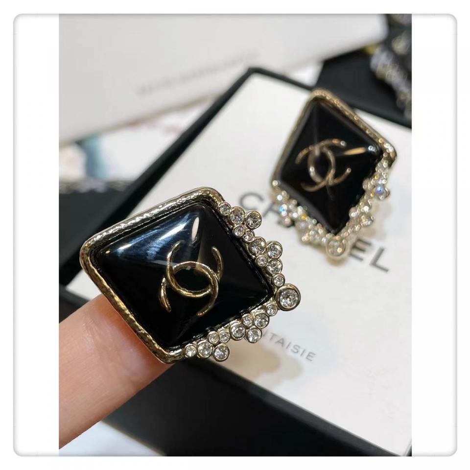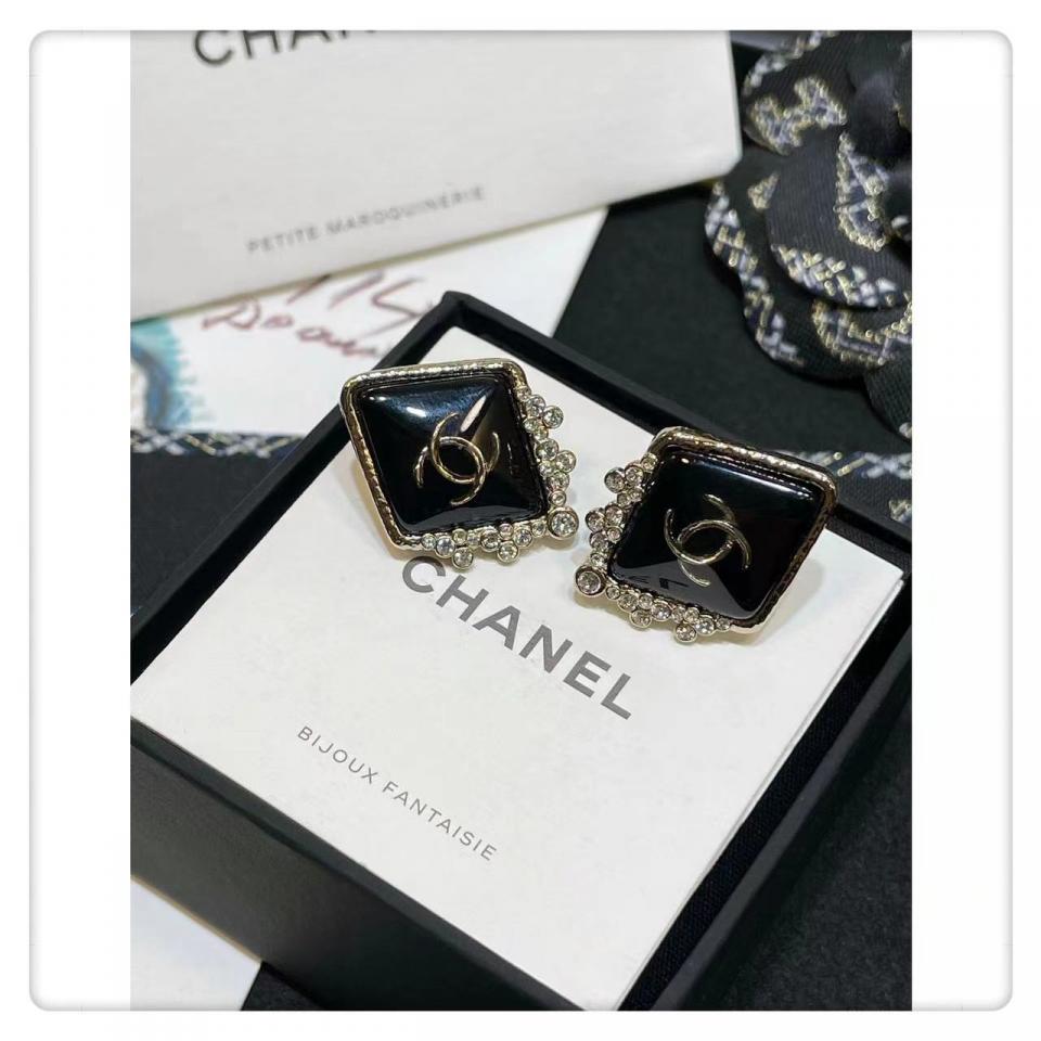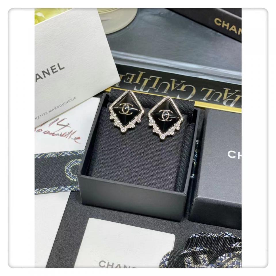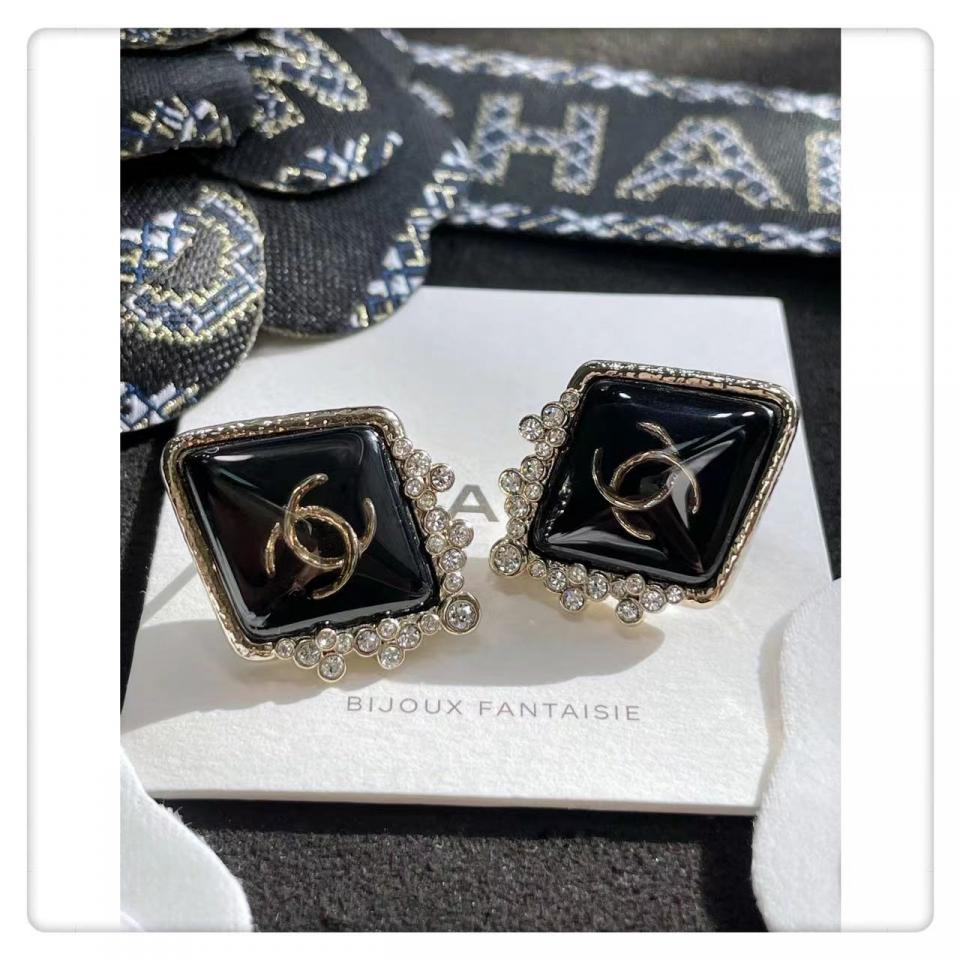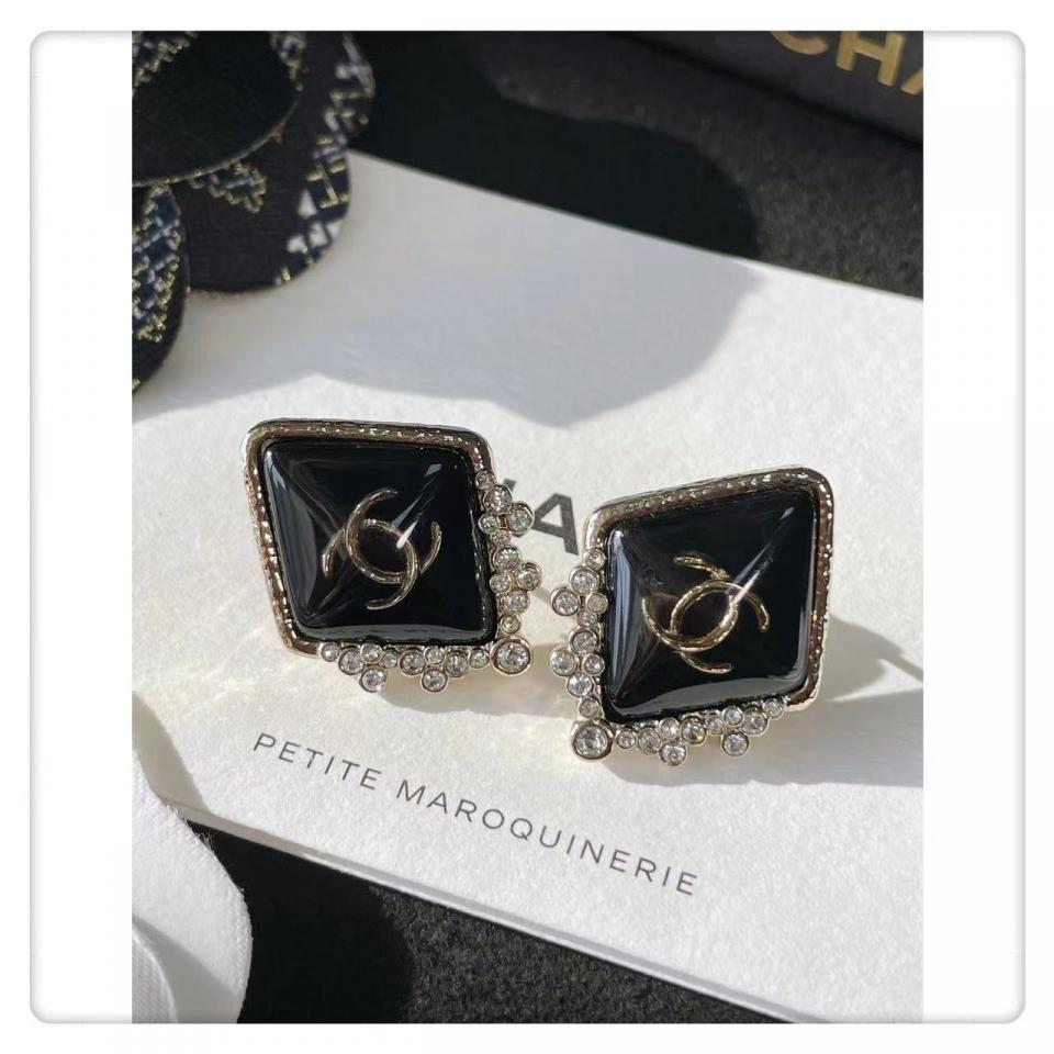 2022春夏 C家菱形金黑耳釘耳環