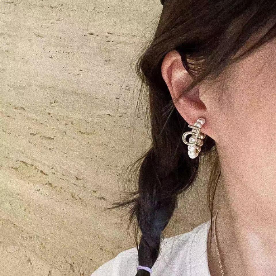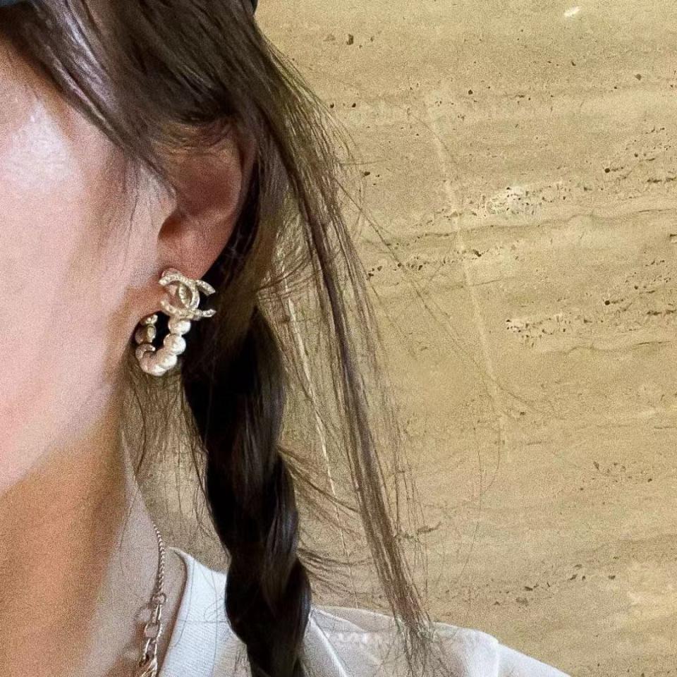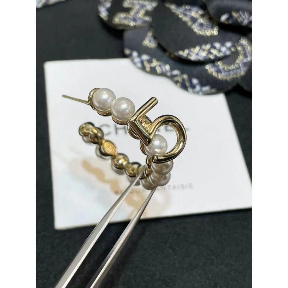 C家彎鉤珍珠雙C5字耳環