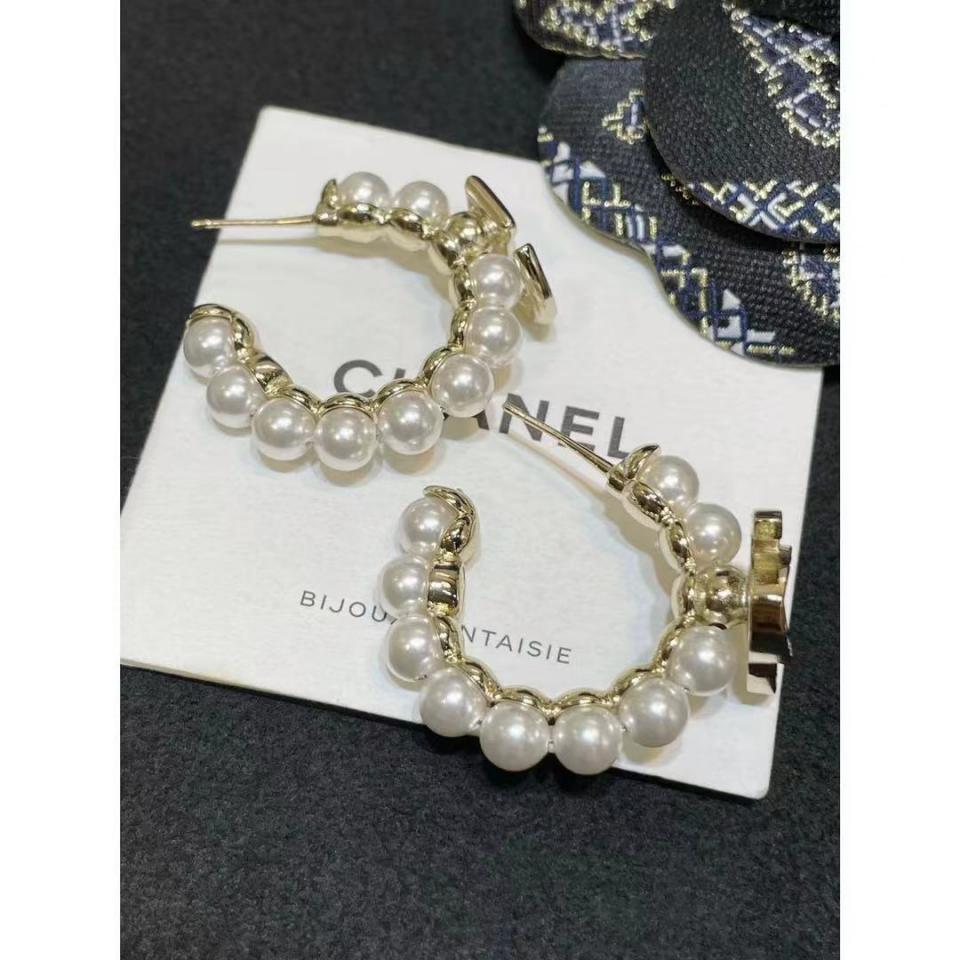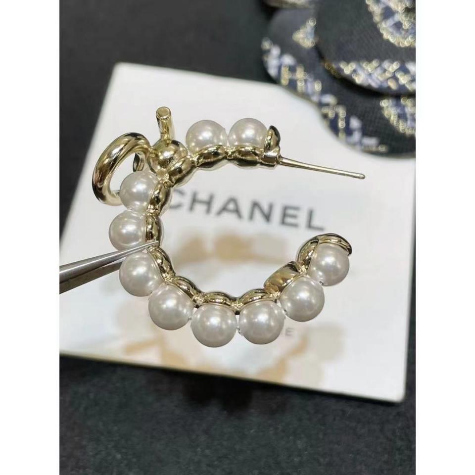 2021春夏新品 彎鉤珍珠雙C5字耳環 最新紀念 100周年珍珠款