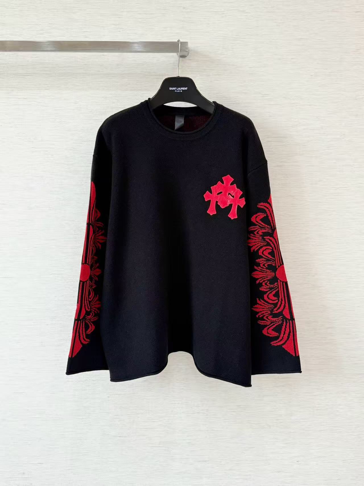 2025秋冬新品 CH家 克羅心十字架紅皮標提花針織毛衣