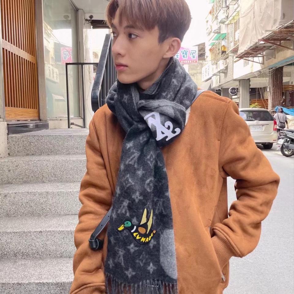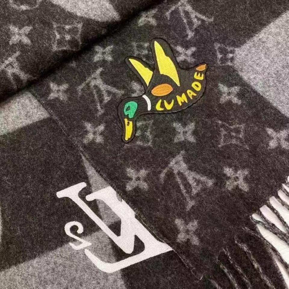 2021秋冬新品 Nigo聯名款鴨子刺繡圍巾 提花拼接棋盤格元素