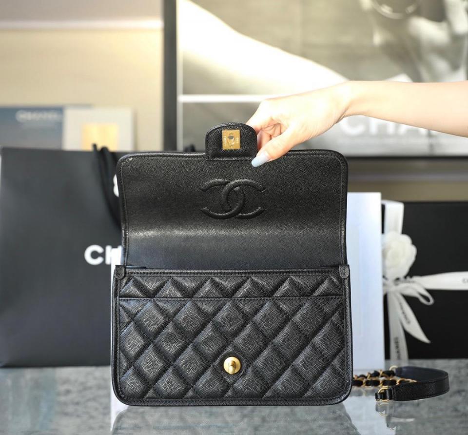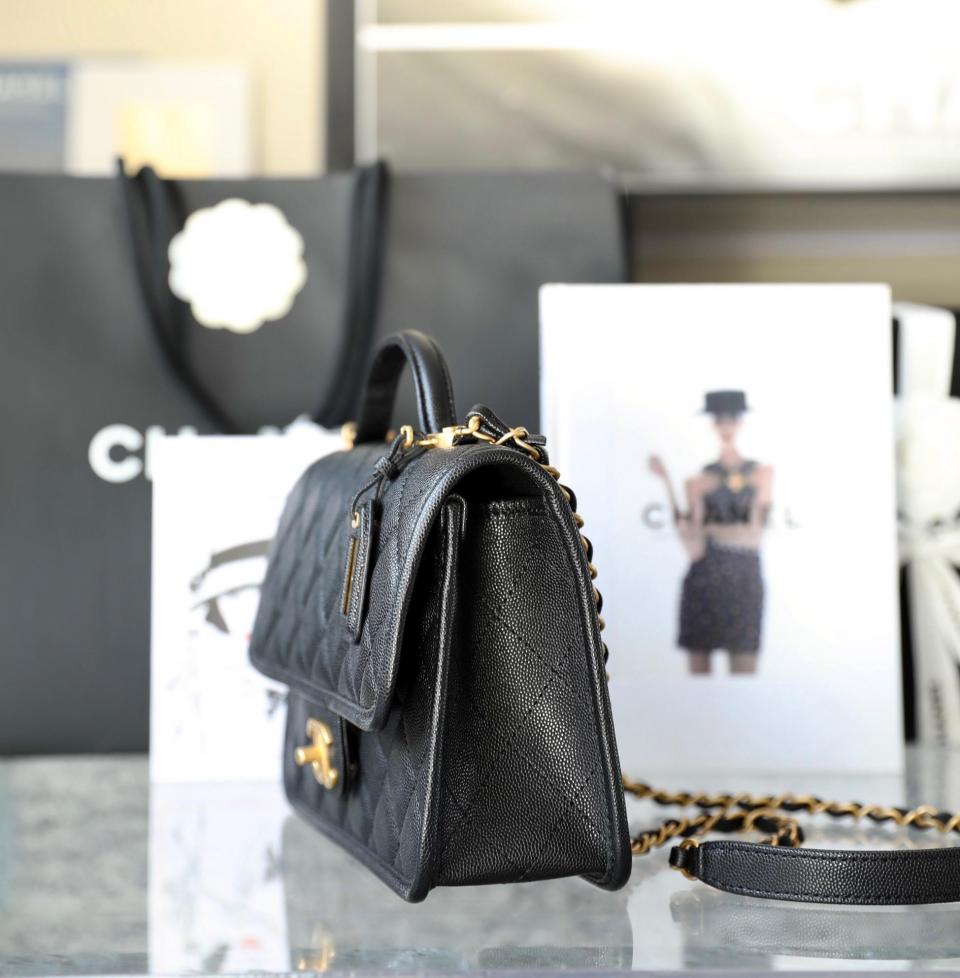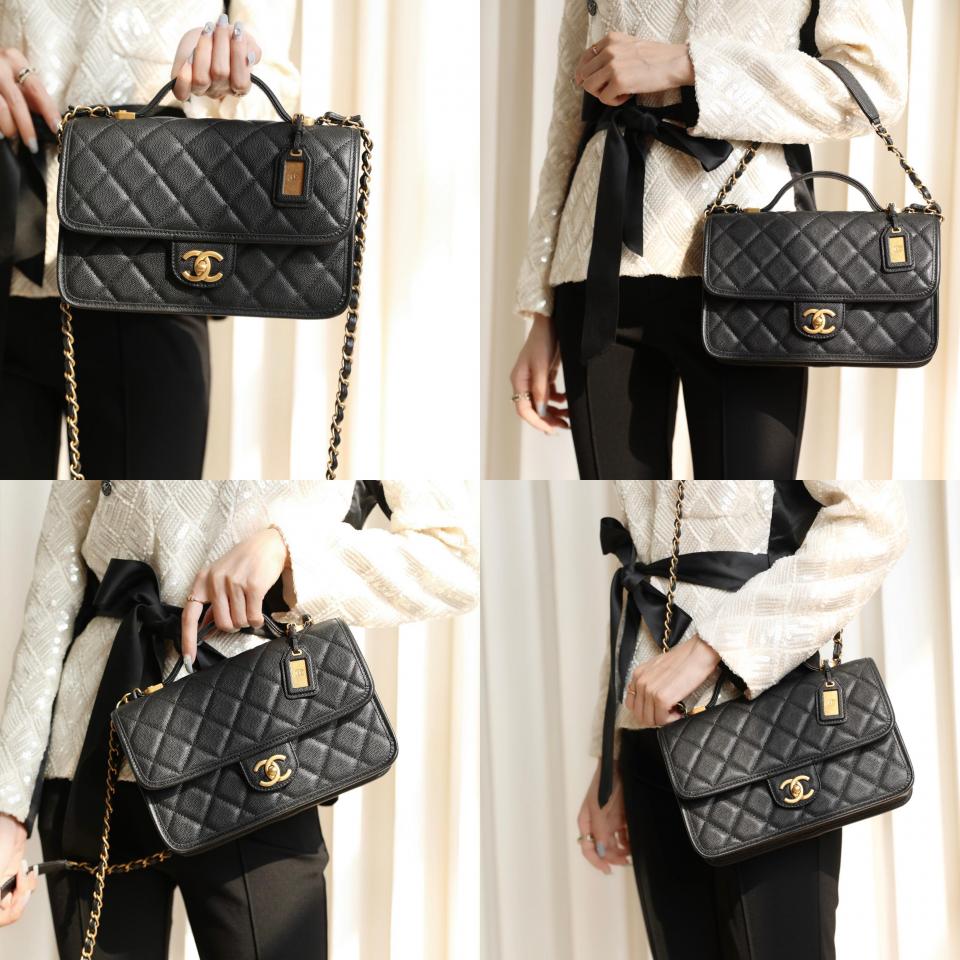 2022秋冬新品 C家22K銘牌手柄豆腐包(黑色大號) 中古銘牌數計感