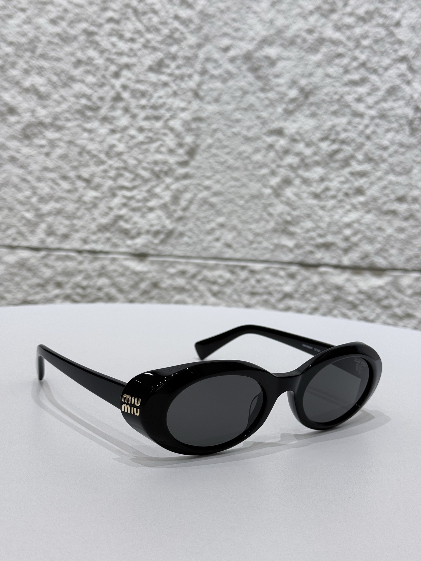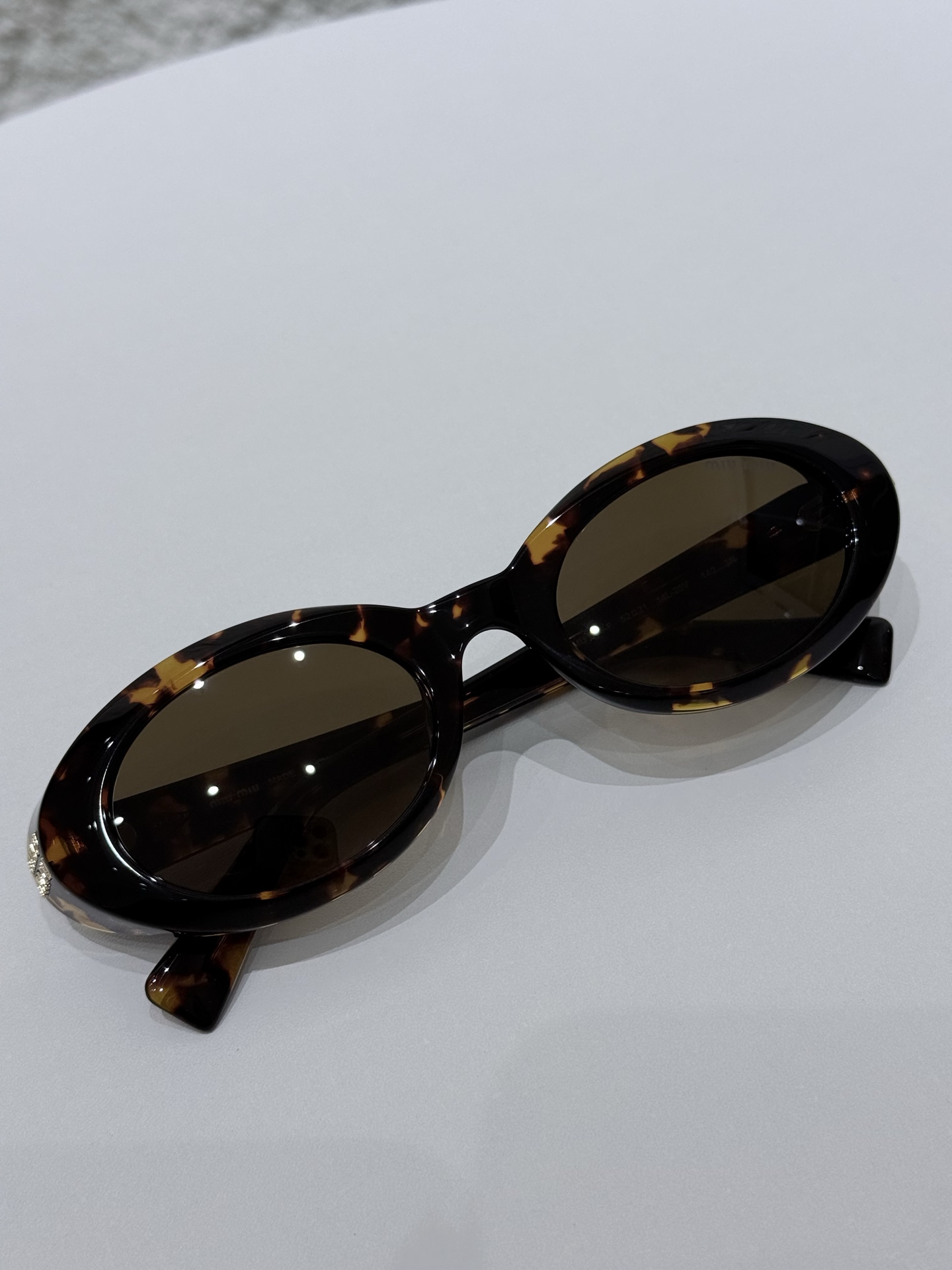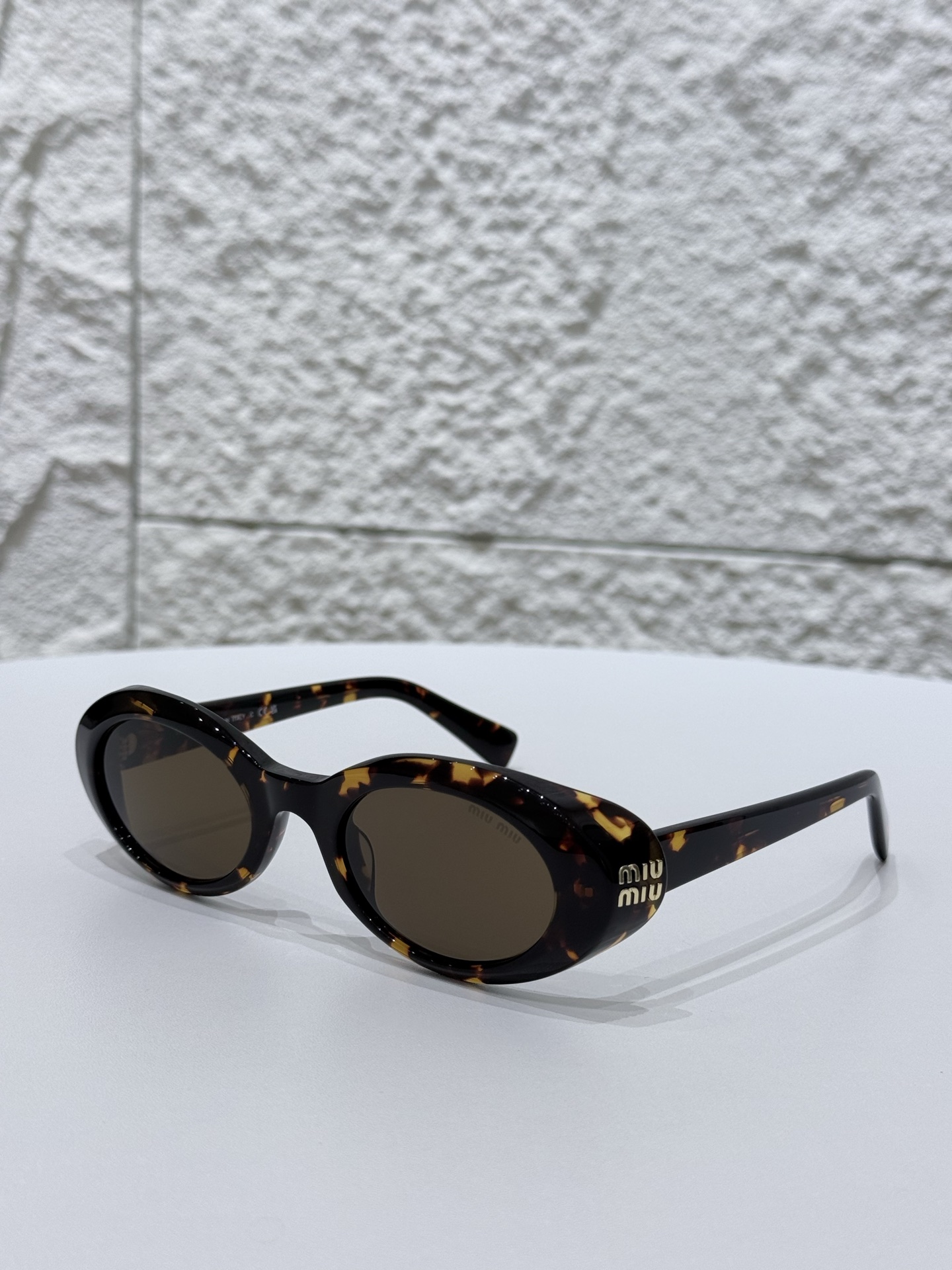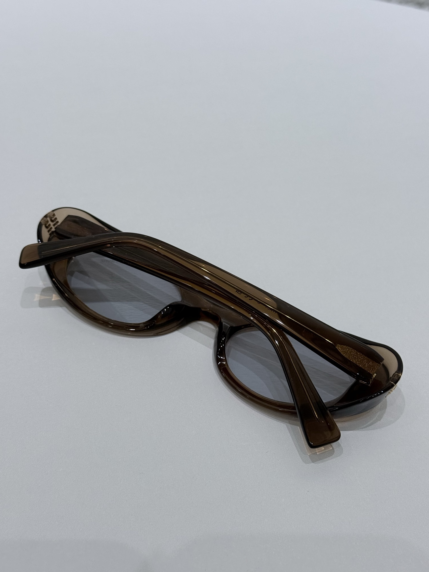 細節更是這副墨鏡的靈魂所在。鏡腿融入金屬質感飾件,縱向鐫刻的Miu 徽標低調卻有辨識度,搭配精密鉸鏈結構,開闔順暢、支撐力佳。