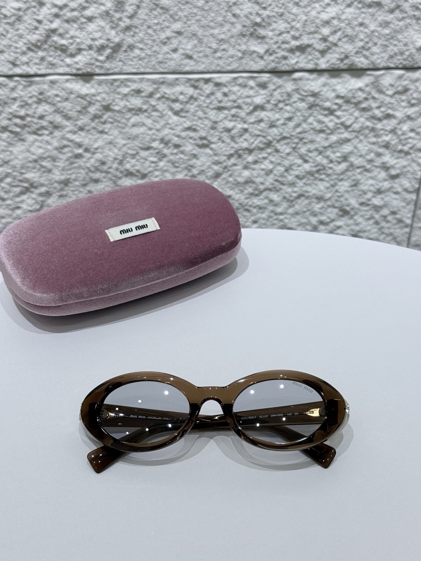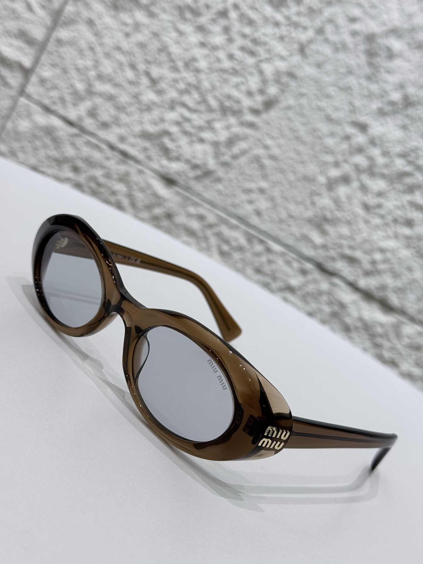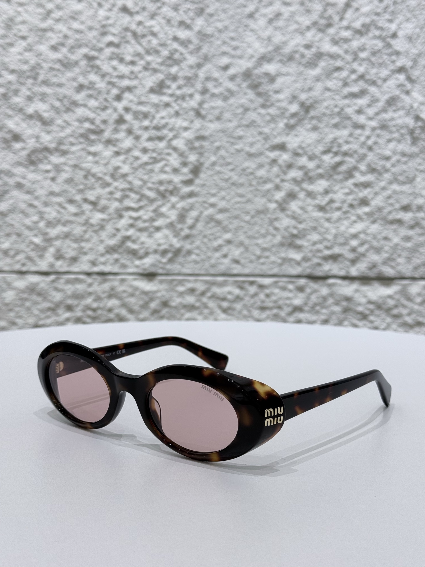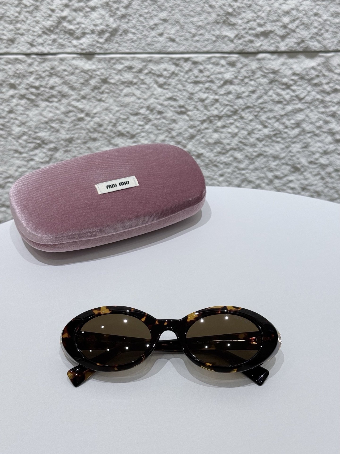 細節更是這副墨鏡的靈魂所在。鏡腿融入金屬質感飾件,縱向鐫刻的Miu 徽標低調卻有辨識度,搭配精密鉸鏈結構,開闔順暢、支撐力佳。