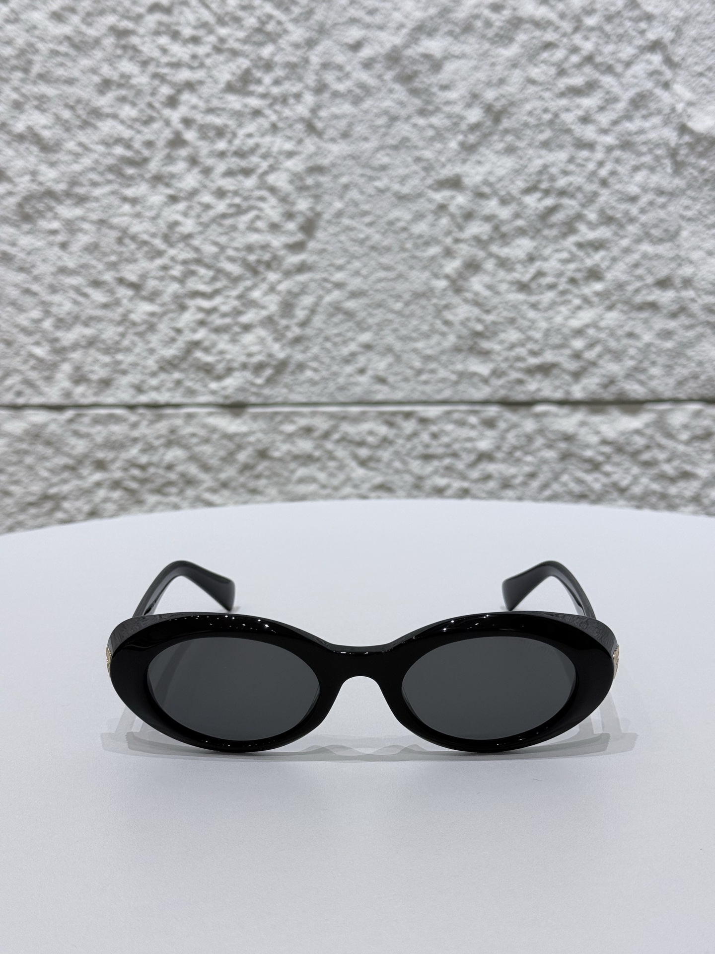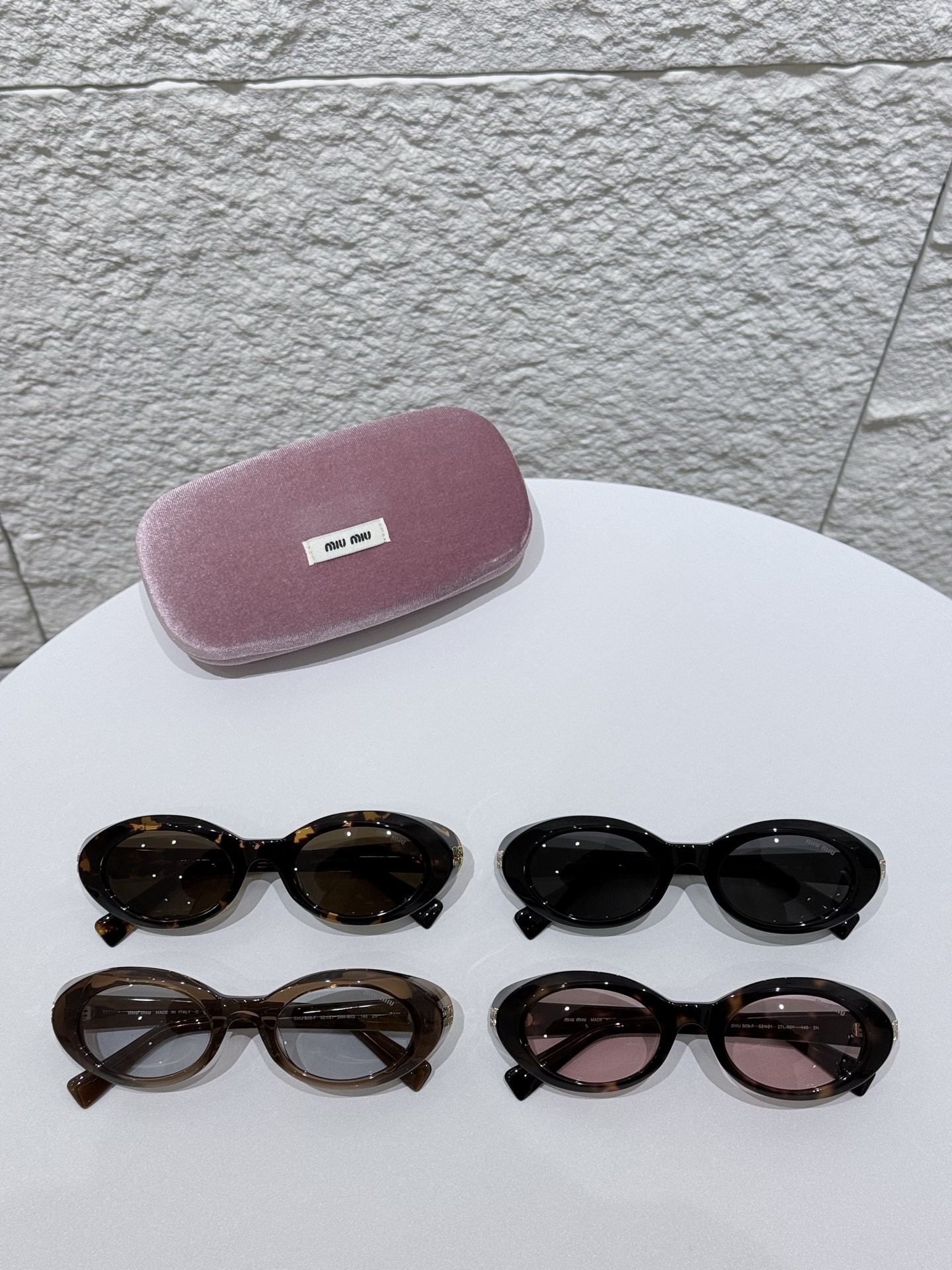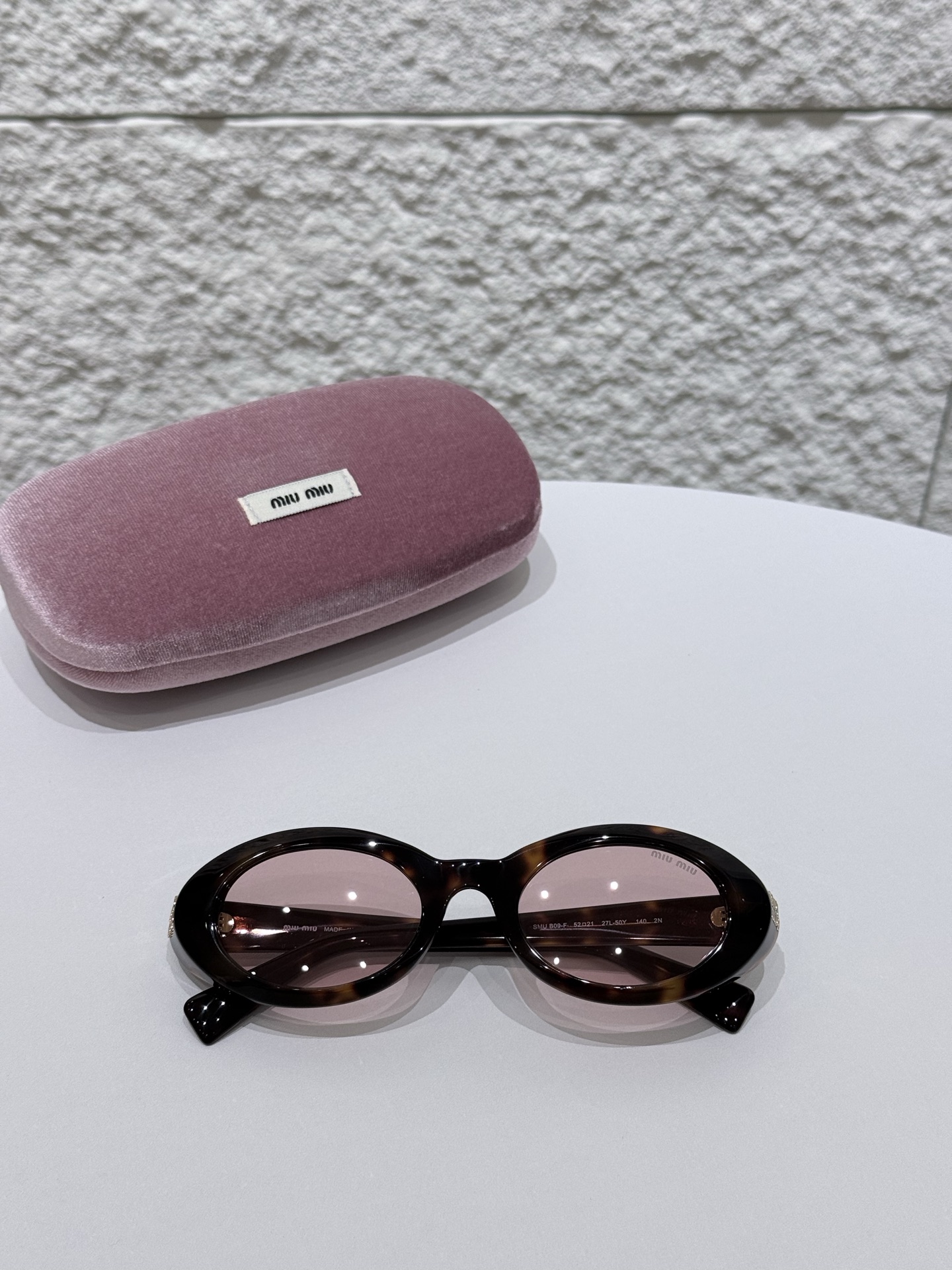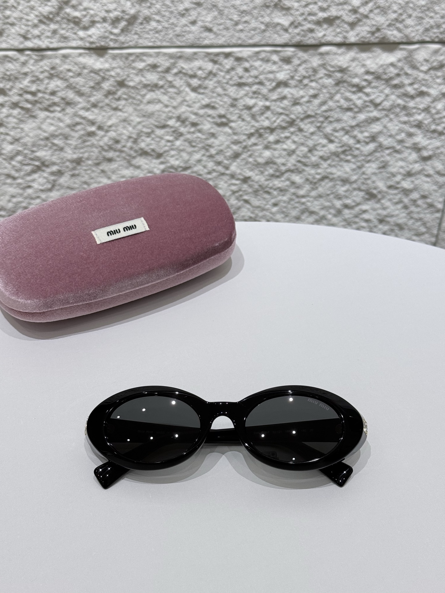 細節更是這副墨鏡的靈魂所在。鏡腿融入金屬質感飾件,縱向鐫刻的Miu 徽標低調卻有辨識度,搭配精密鉸鏈結構,開闔順暢、支撐力佳。