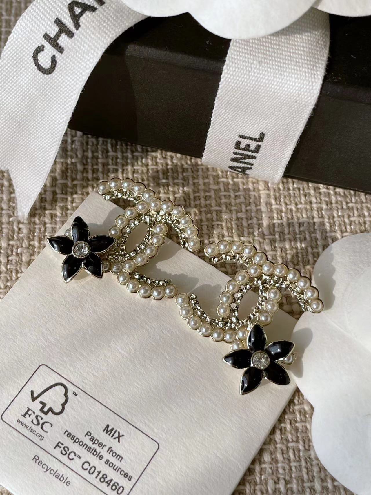 C家黑花雙C耳環
