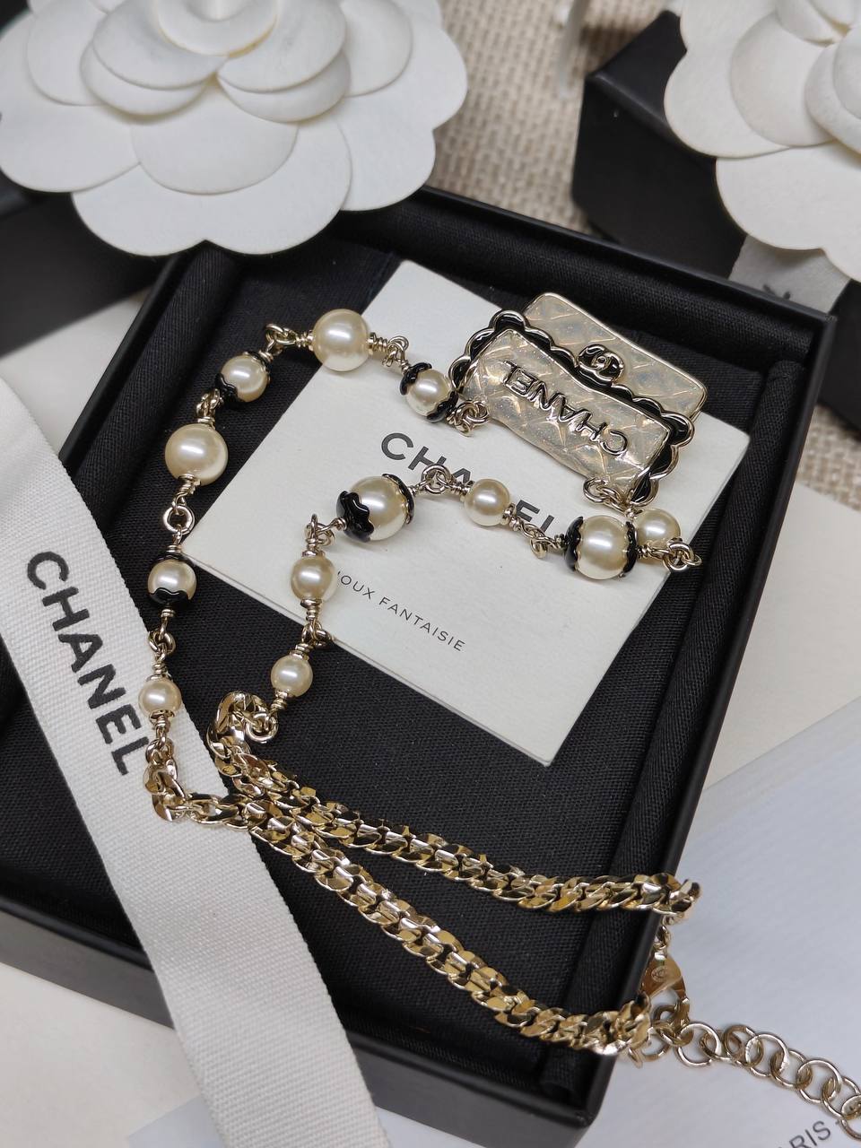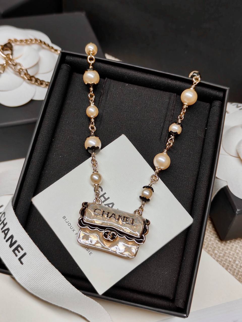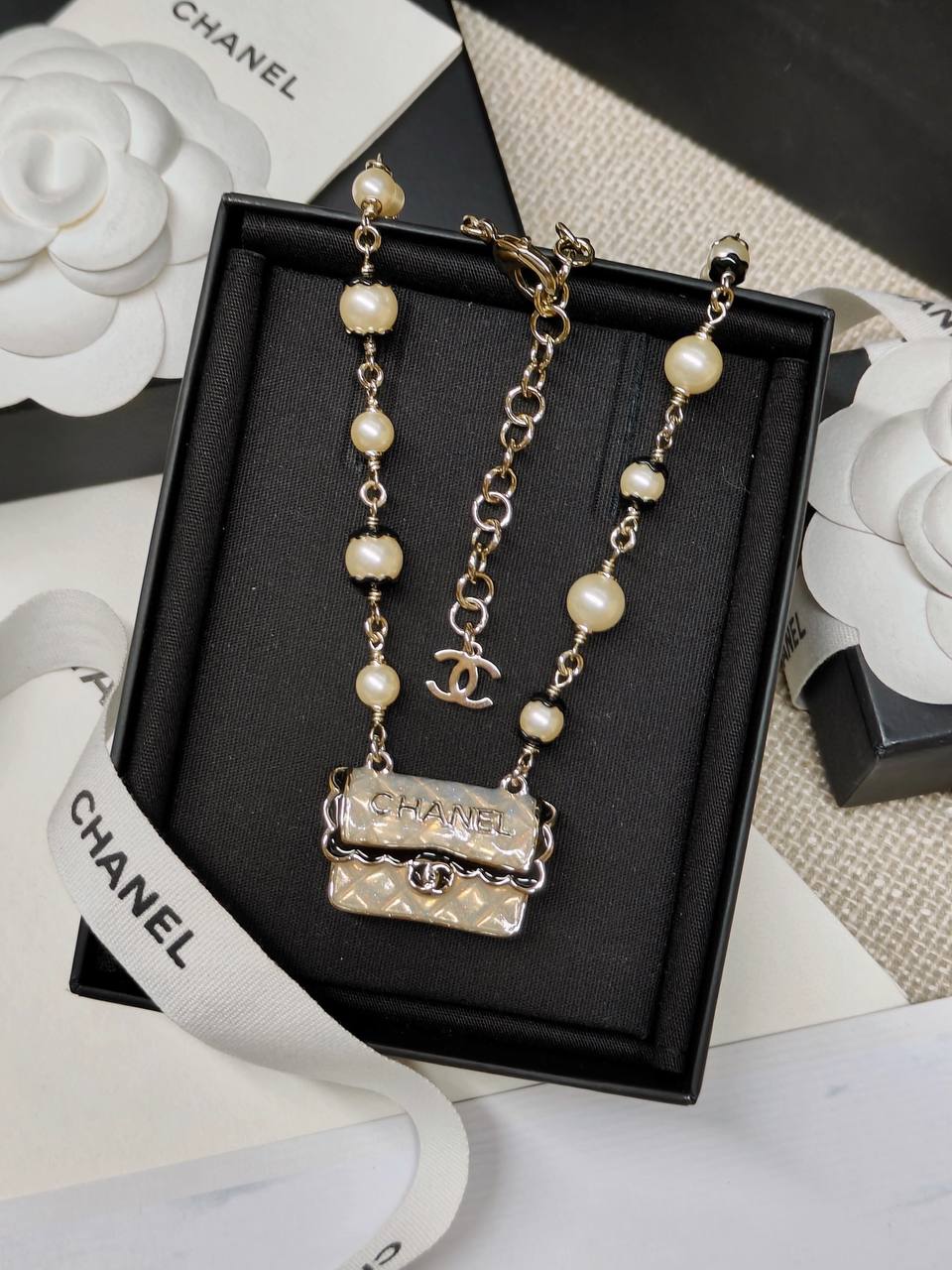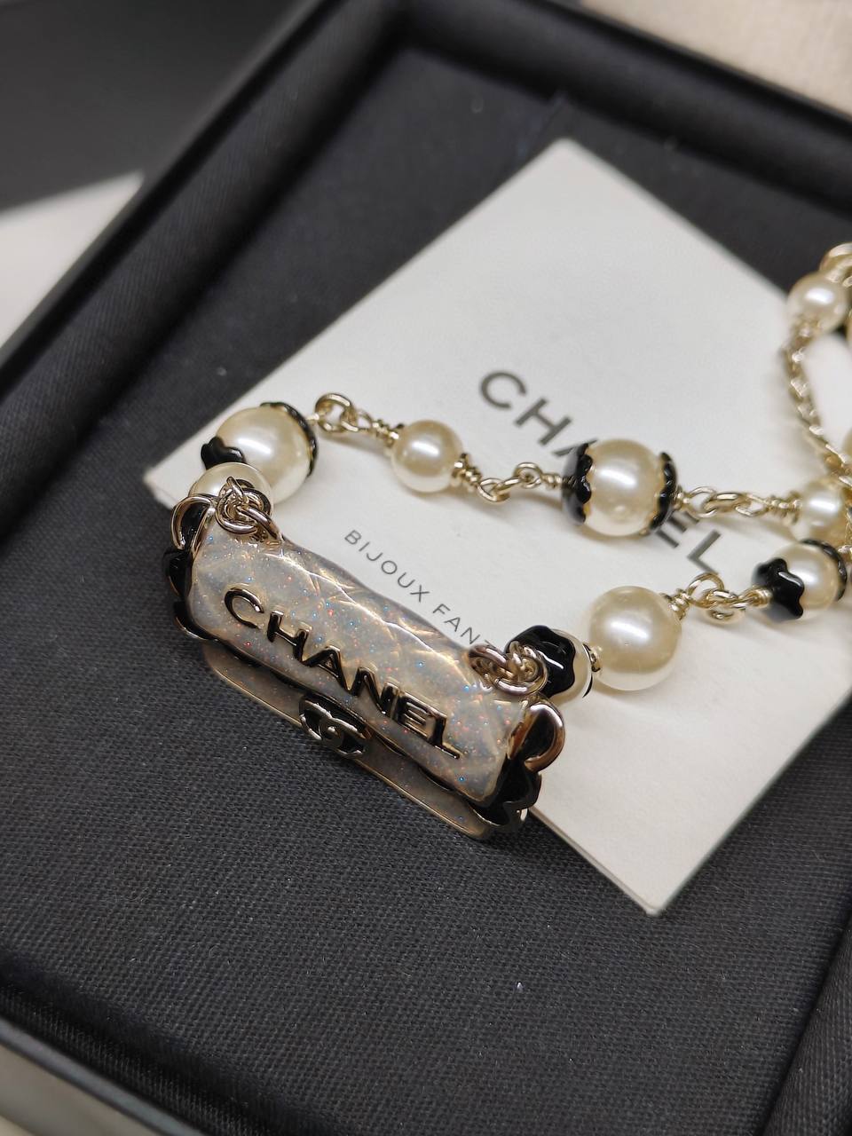 C家 彩色玻璃珠滿鑽雙C毛衣鏈