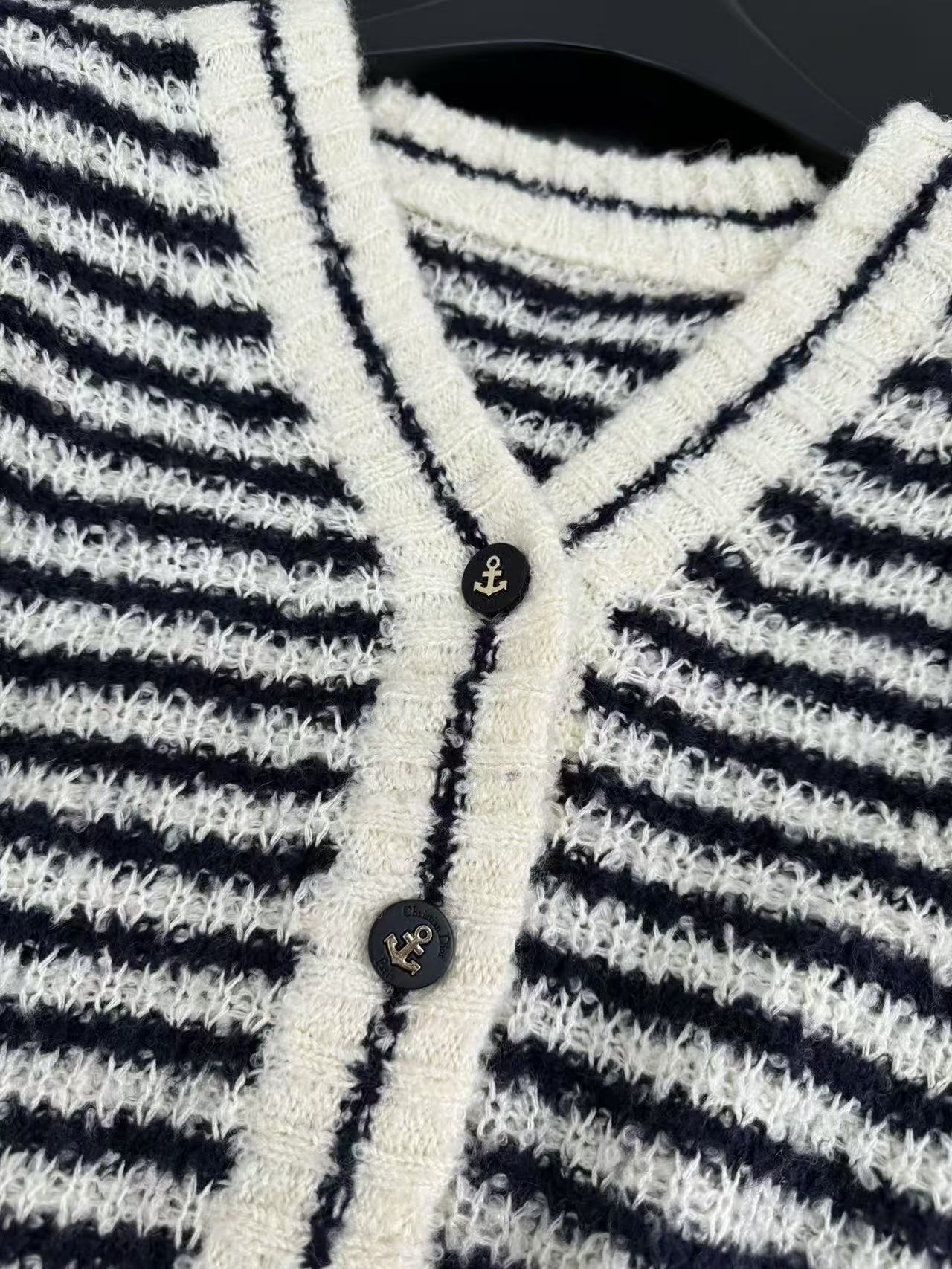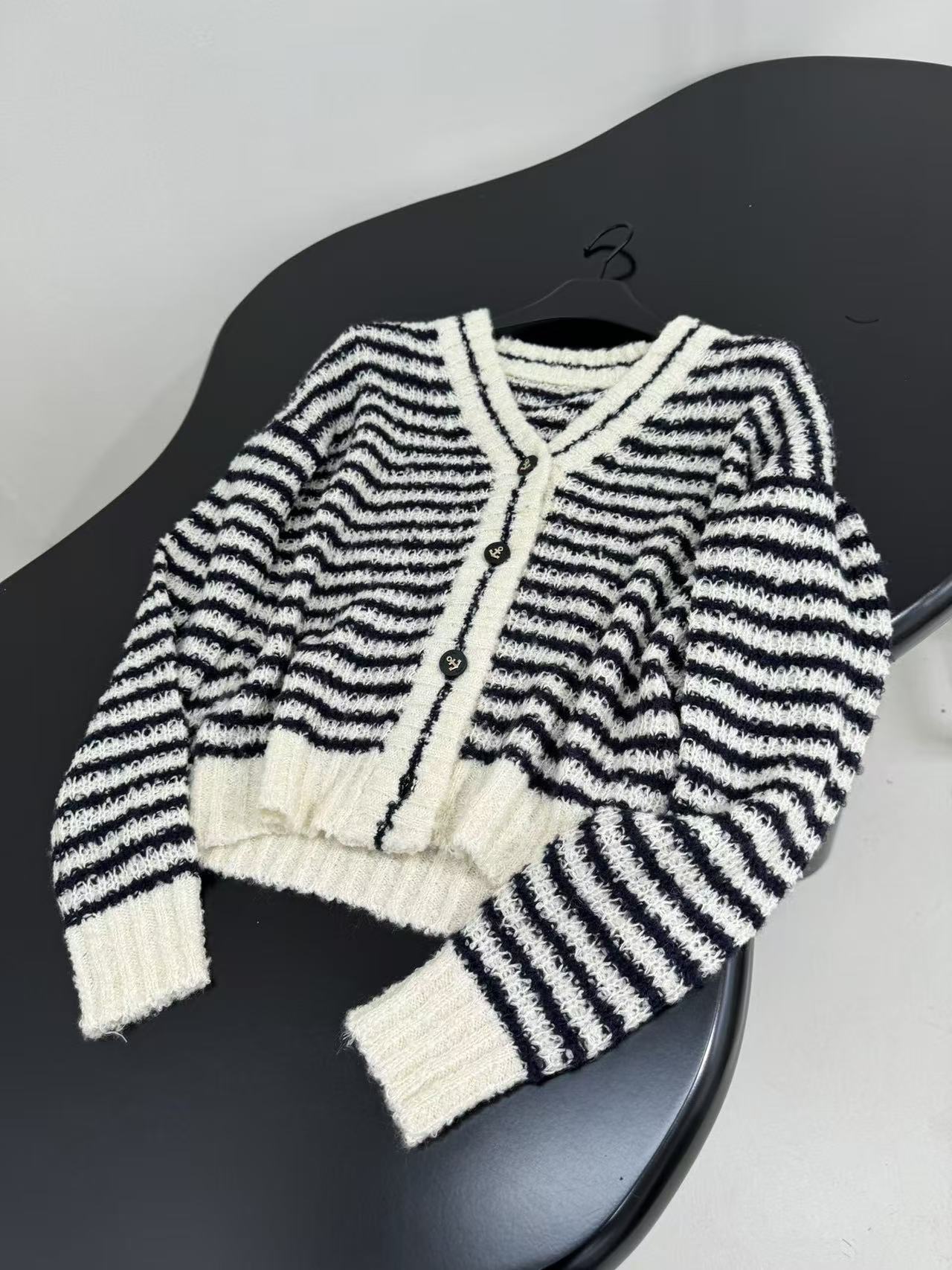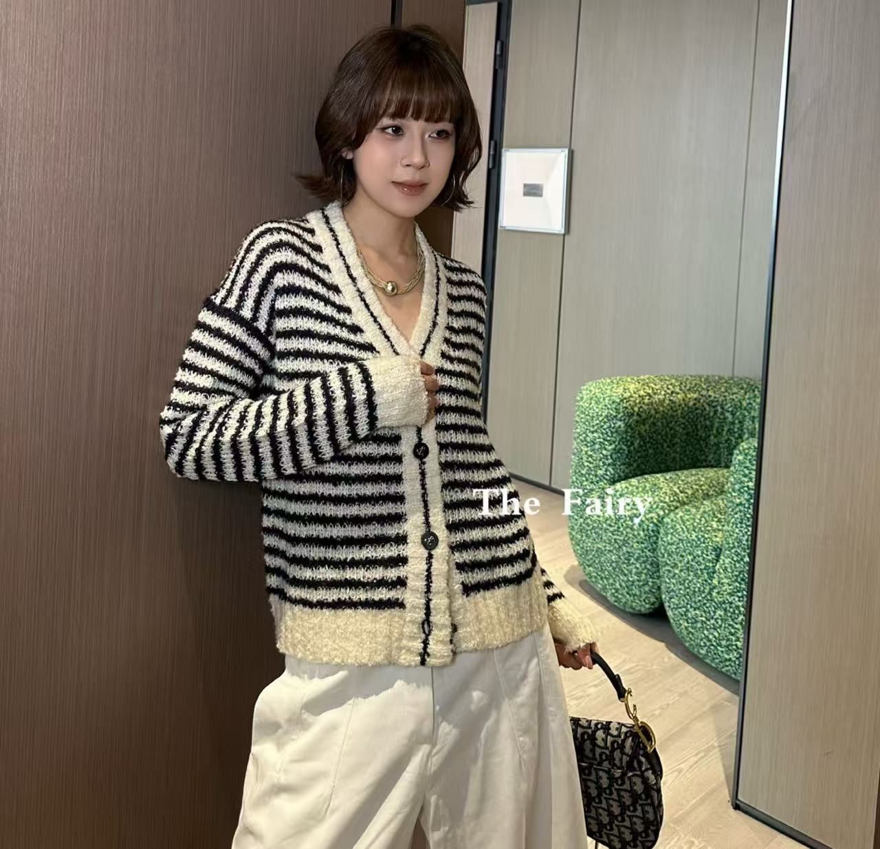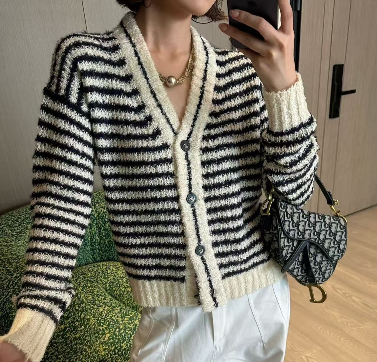 25 新品條紋開衫:桑蠶絲混紡的輕盈質感!減齡又百搭的法式 V 領!