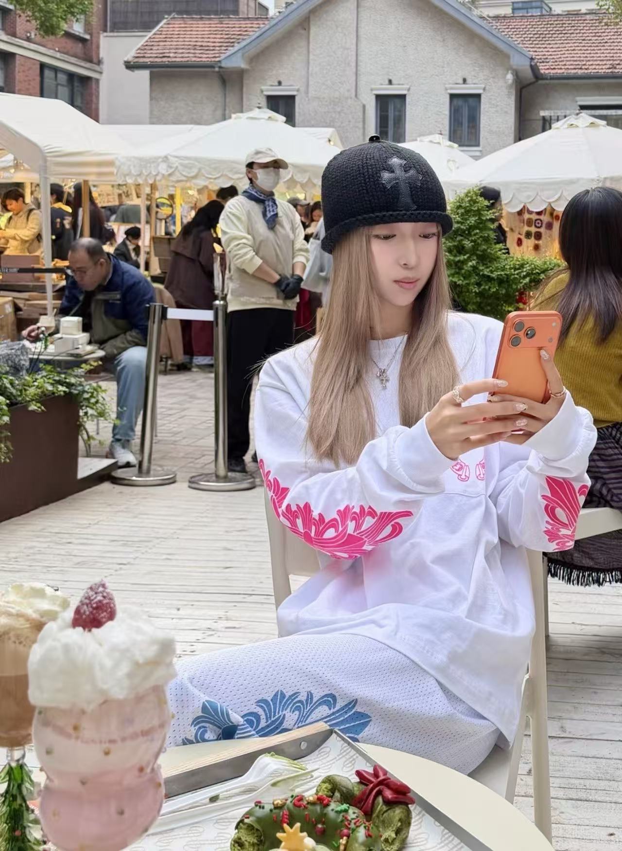 粉色雙袖十字藤蔓+後背馬蹄設計,靈感來自 Blackpink 配色,少女心爆棚卻又帶著滿滿街頭酷感,一穿上就超有存在感!