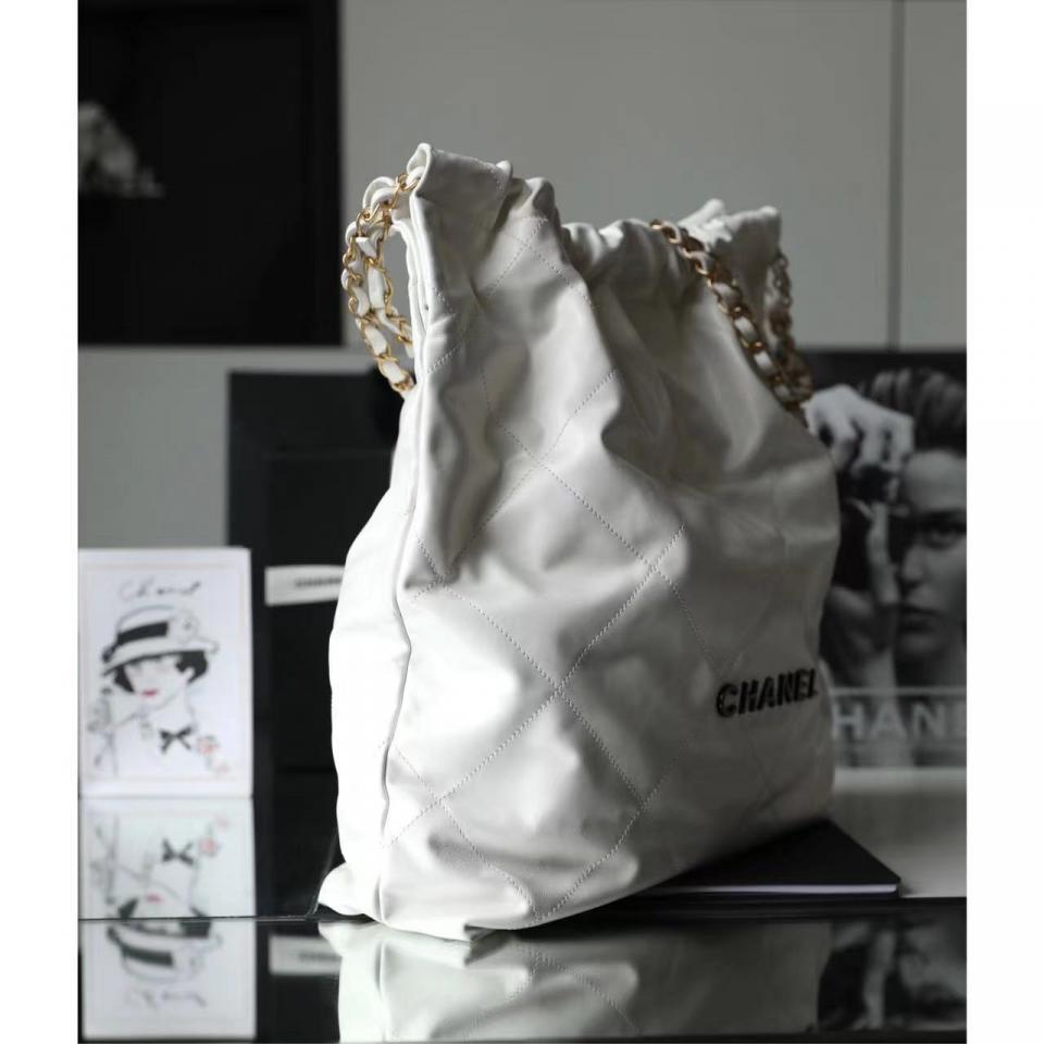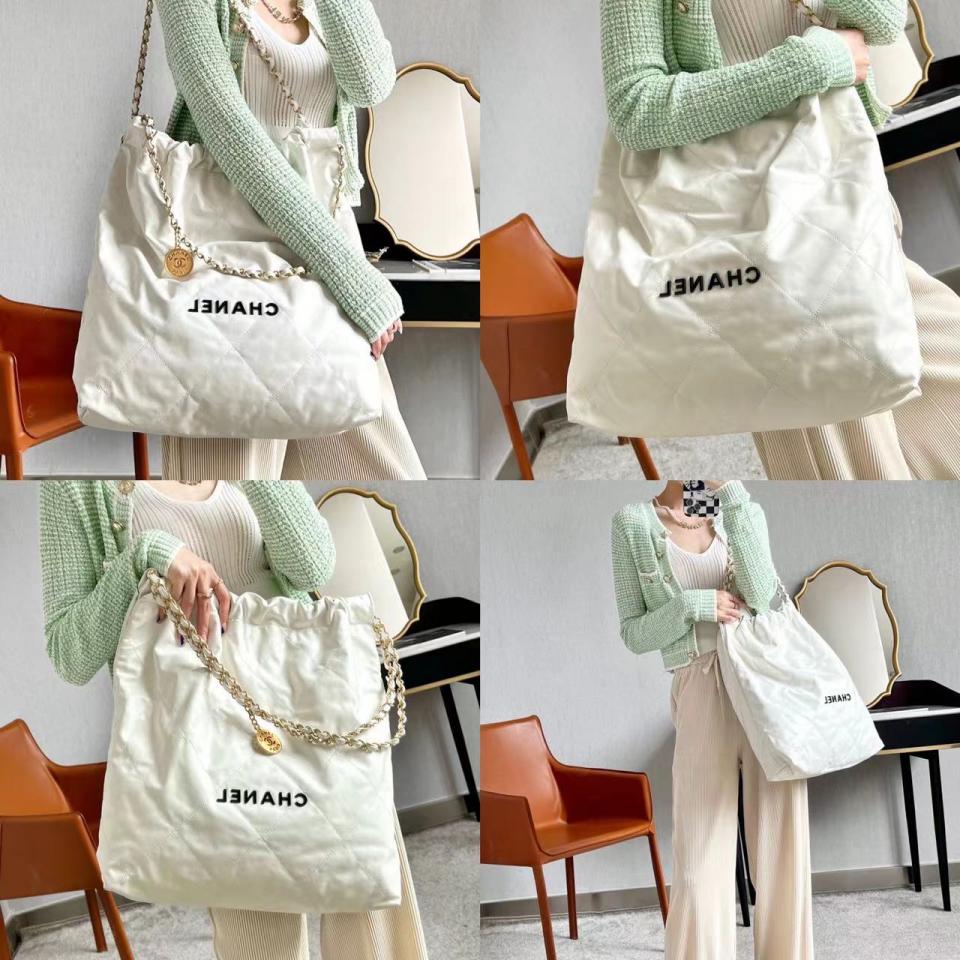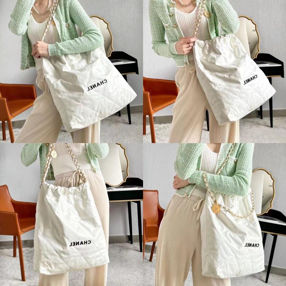 2022春夏新品 超級火爆款 22bag字母單肩購物袋 白色黑字(大號)
