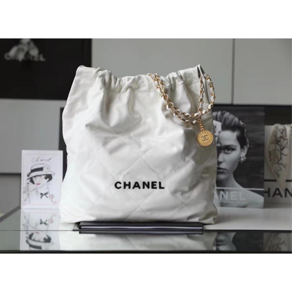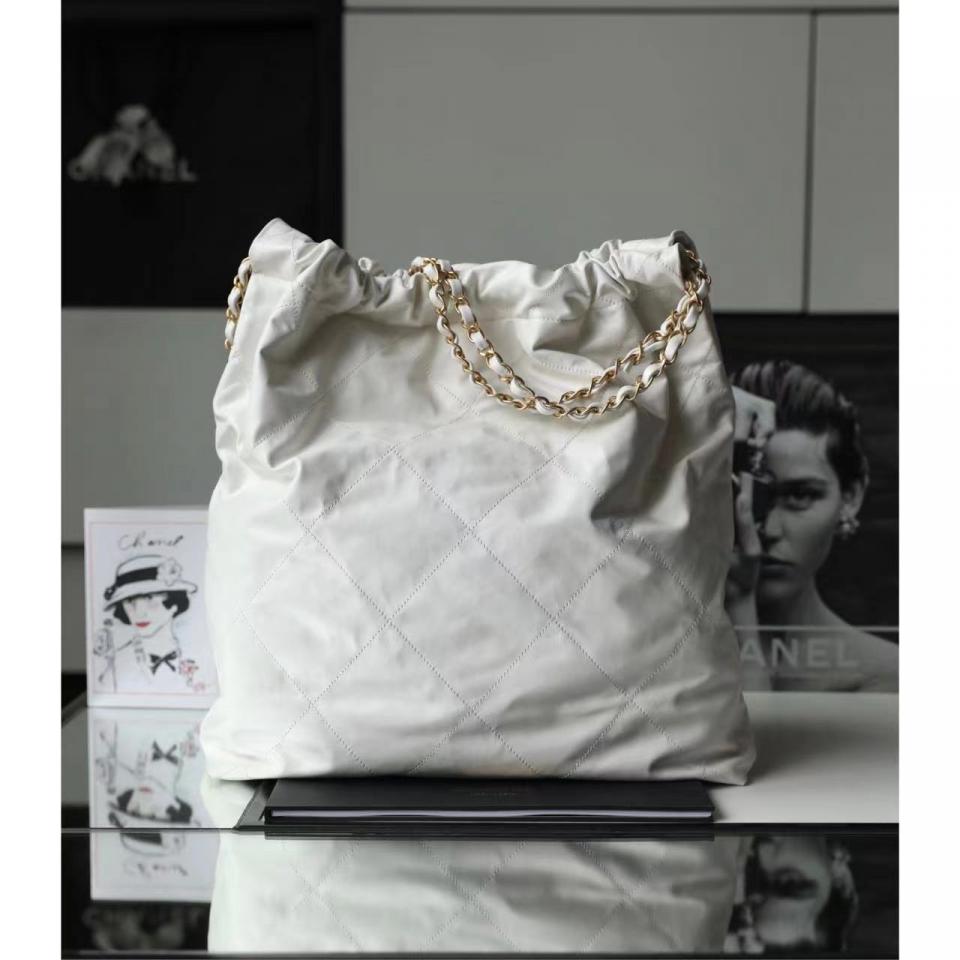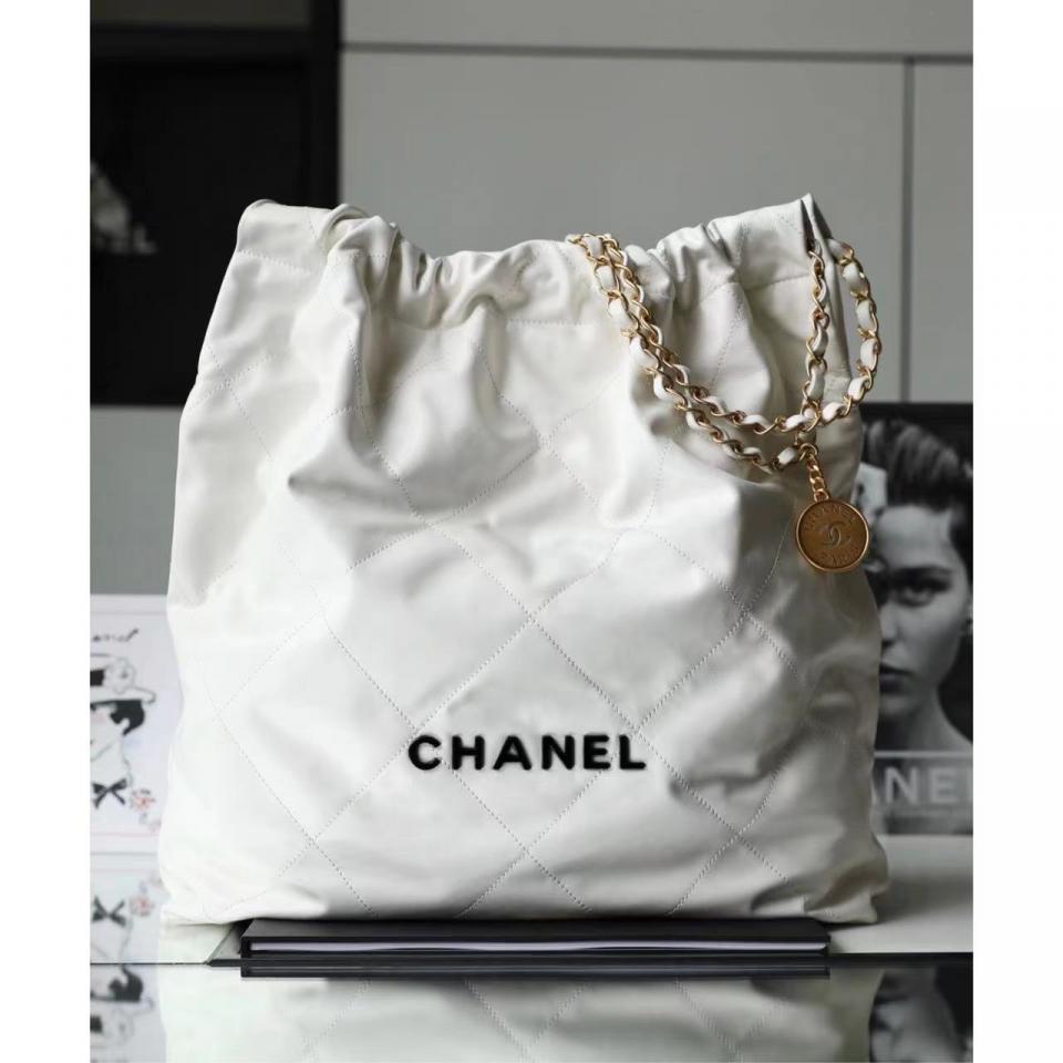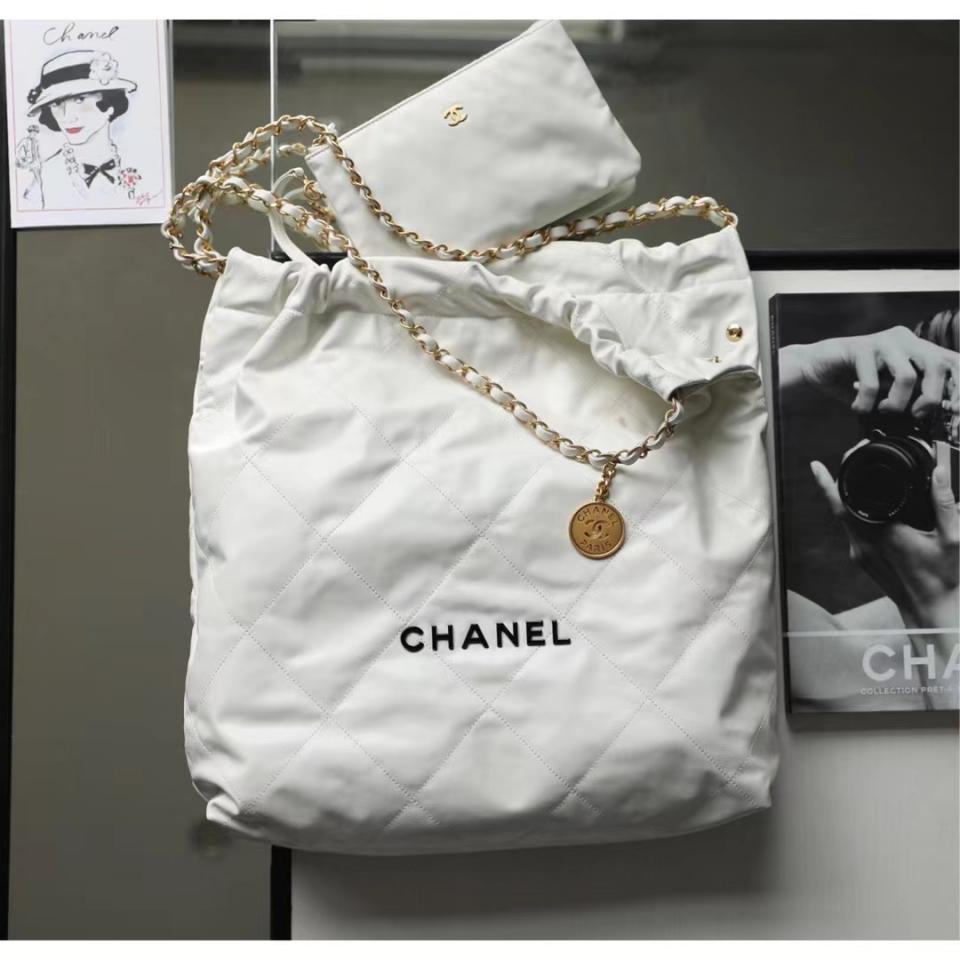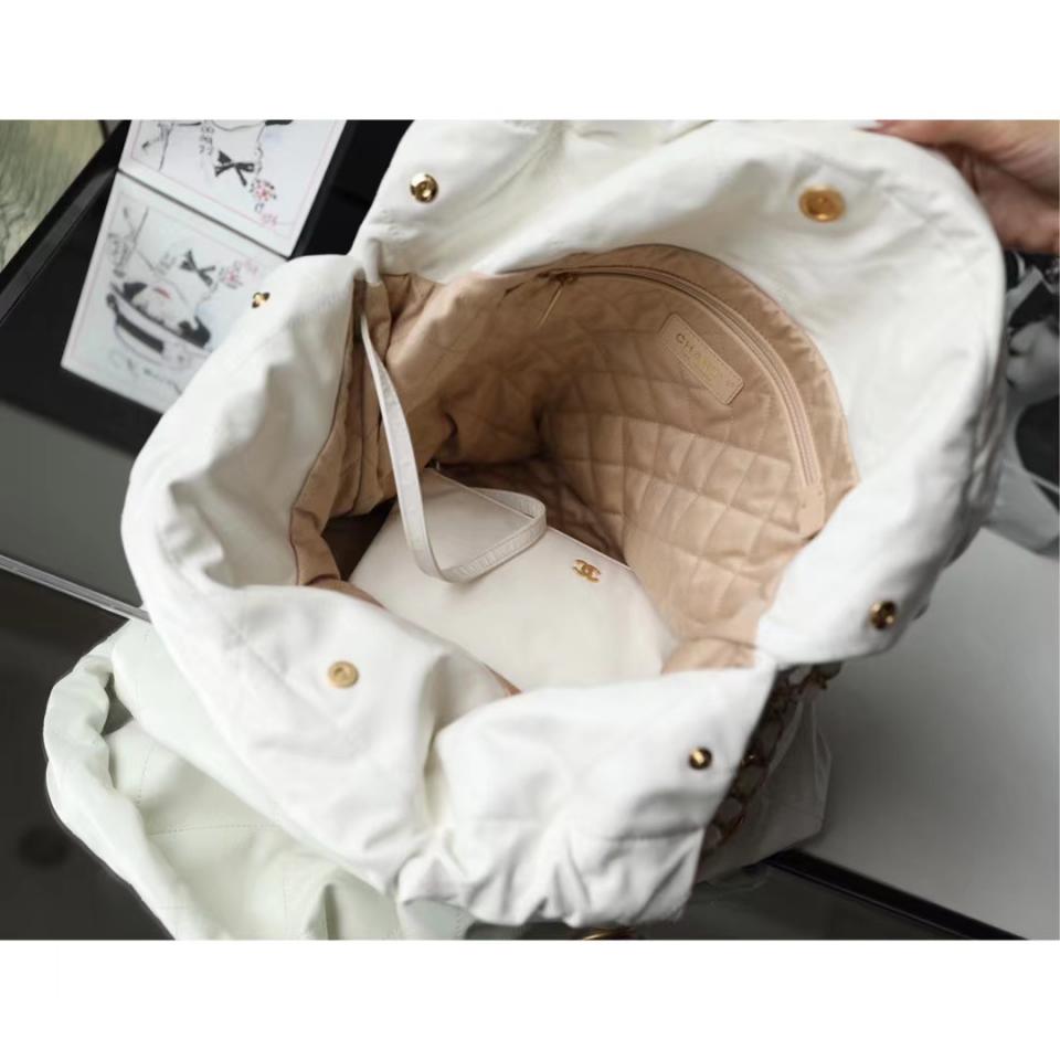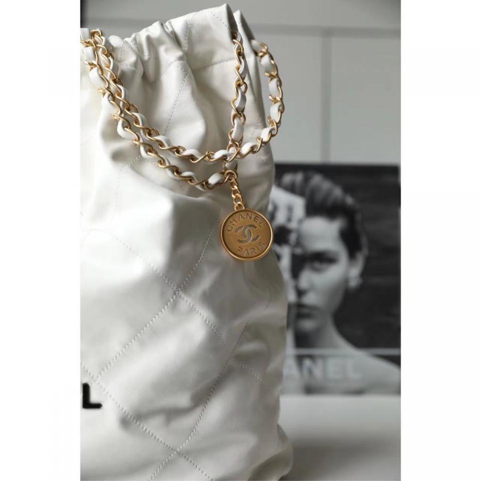 C家22bag字母單肩購物袋 白色黑字(大號)