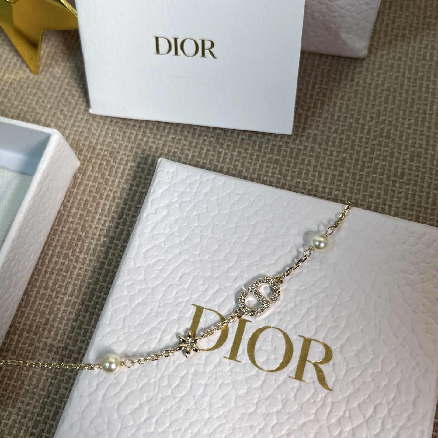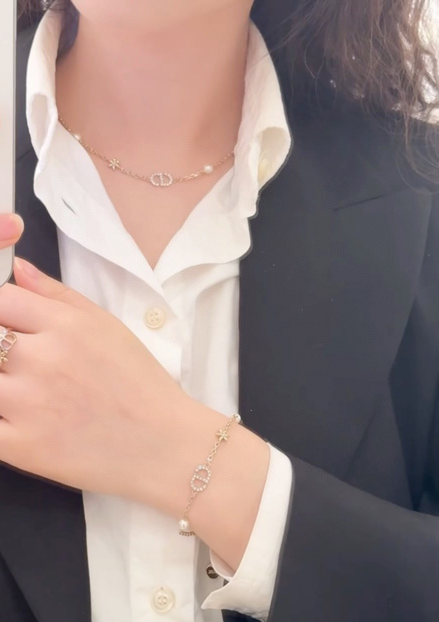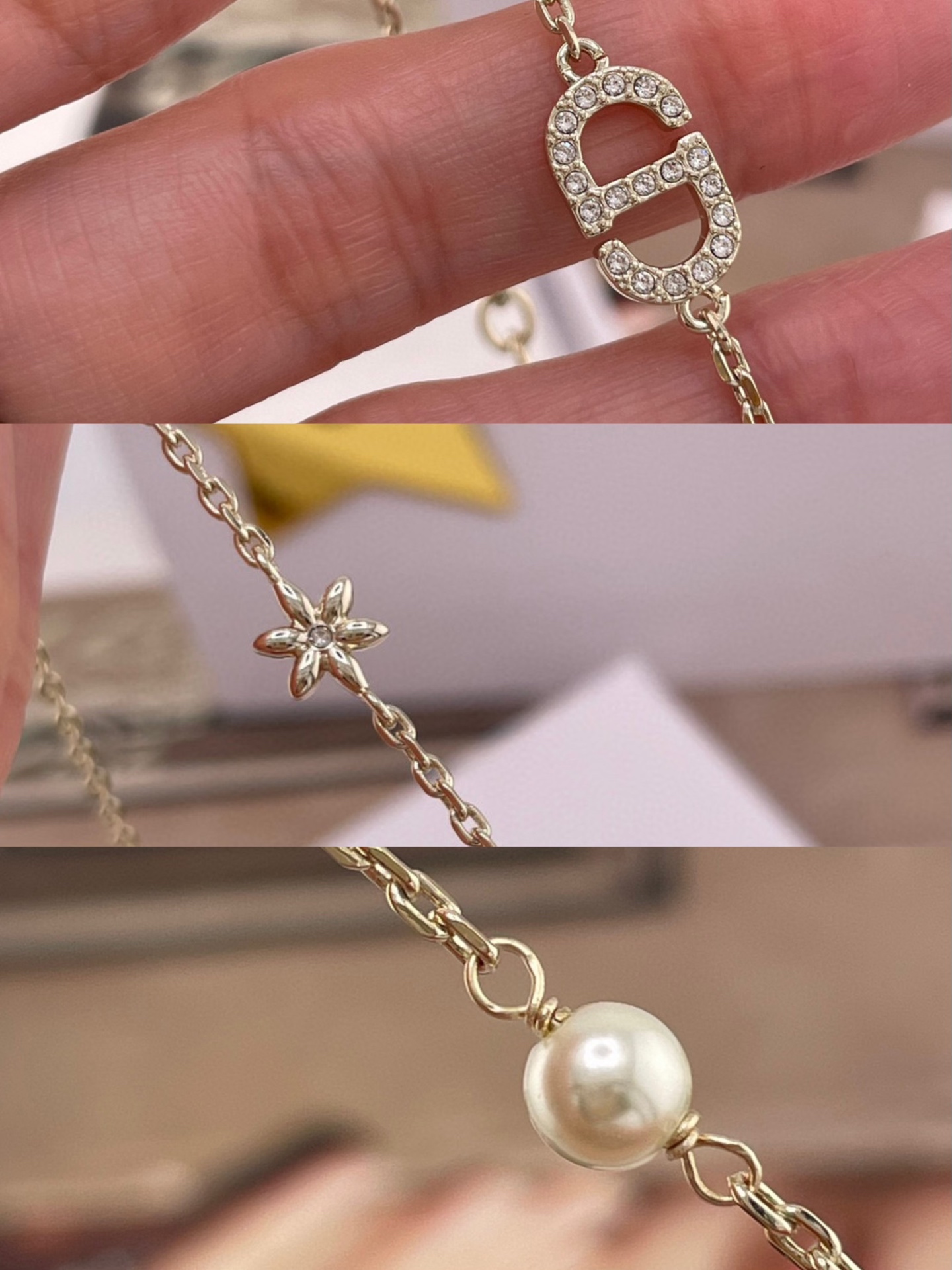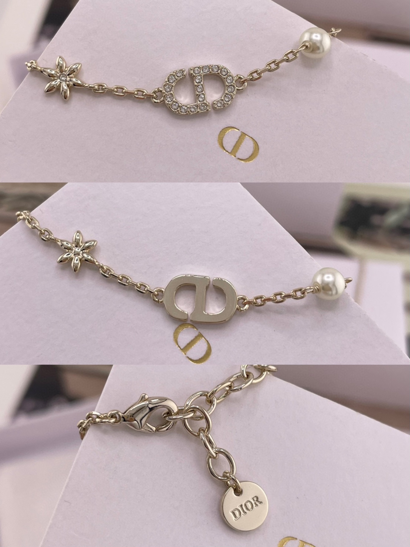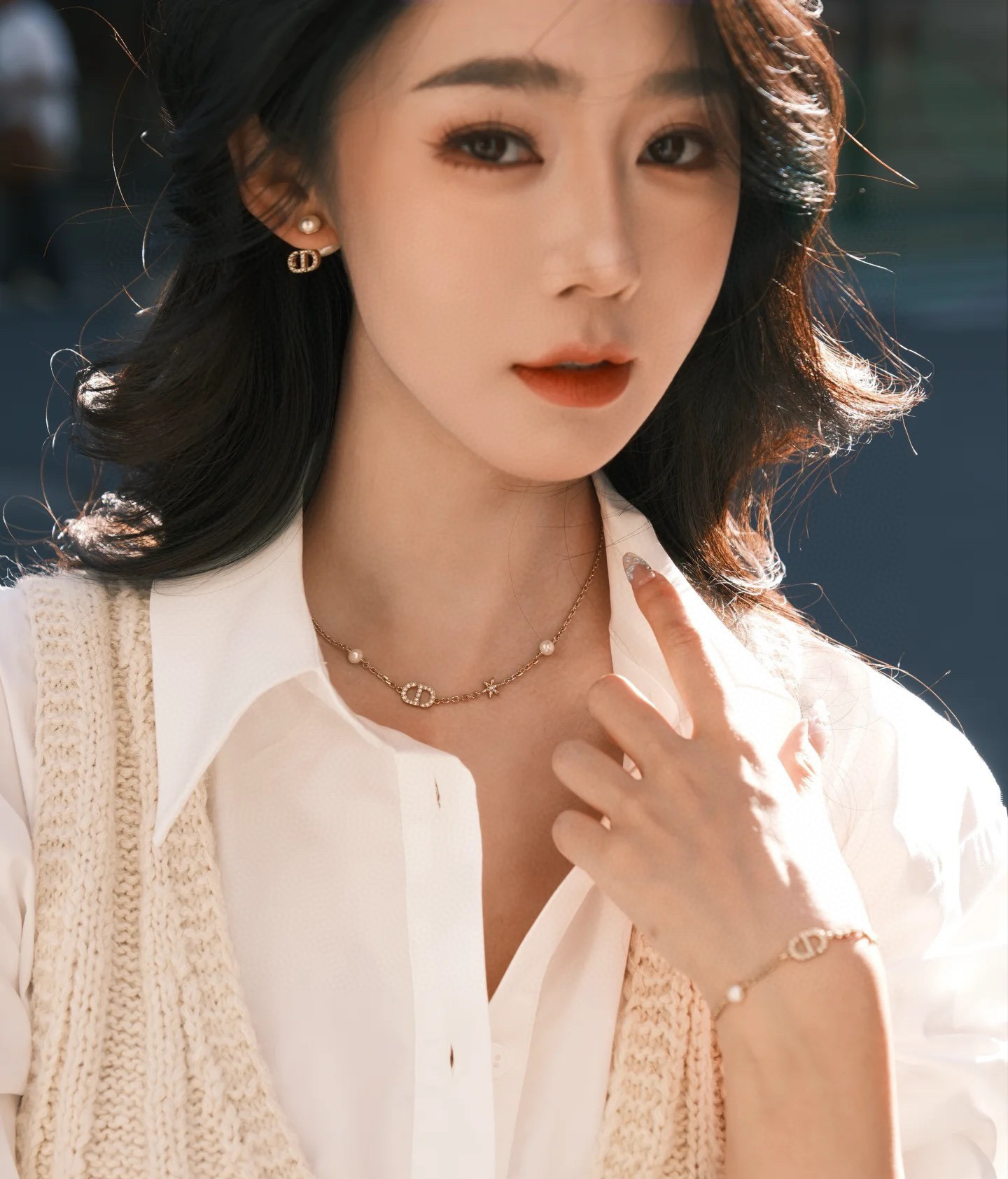整體配色以 低調淺金色為主,搭配 經典 CD 標誌、小立體花朵、珍珠與水鑽元素,細節滿滿卻不浮誇,呈現的是很耐看、很細膩的高級質感。