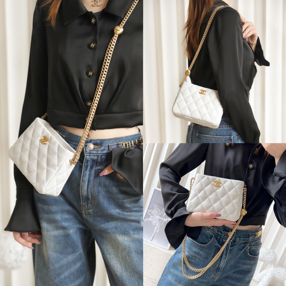2023春夏新品 C家23P愛心扣鏈條hobo流浪小號腋下包 看起來小容量卻很能裝