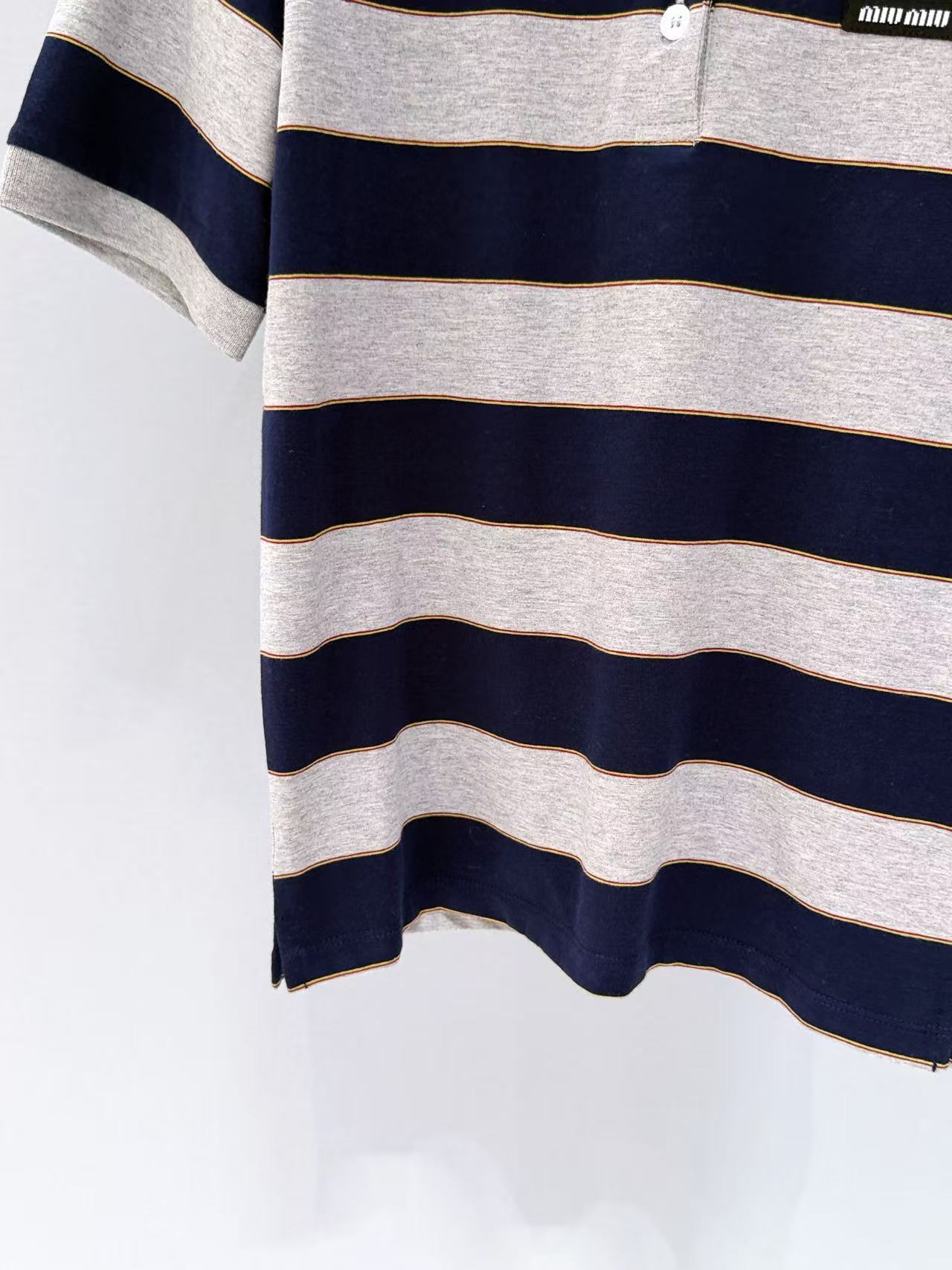 2026早春 Miu家 藍灰條紋 Polo 短袖