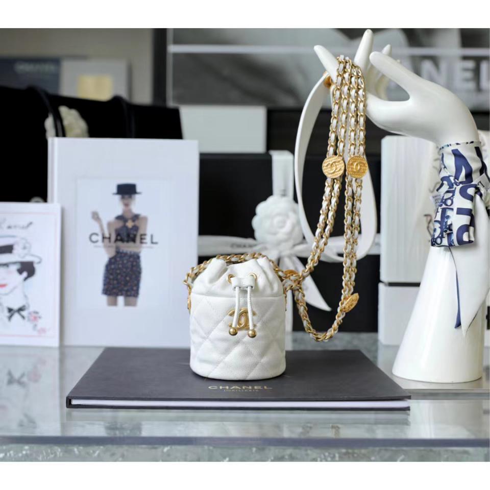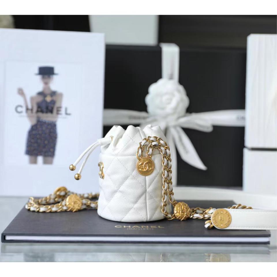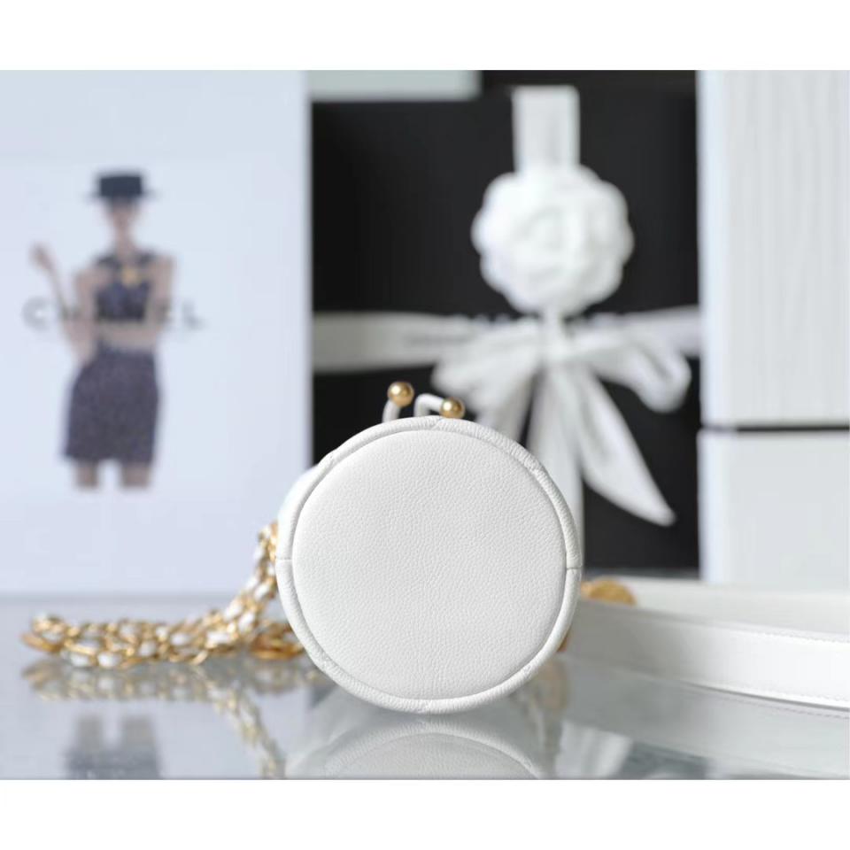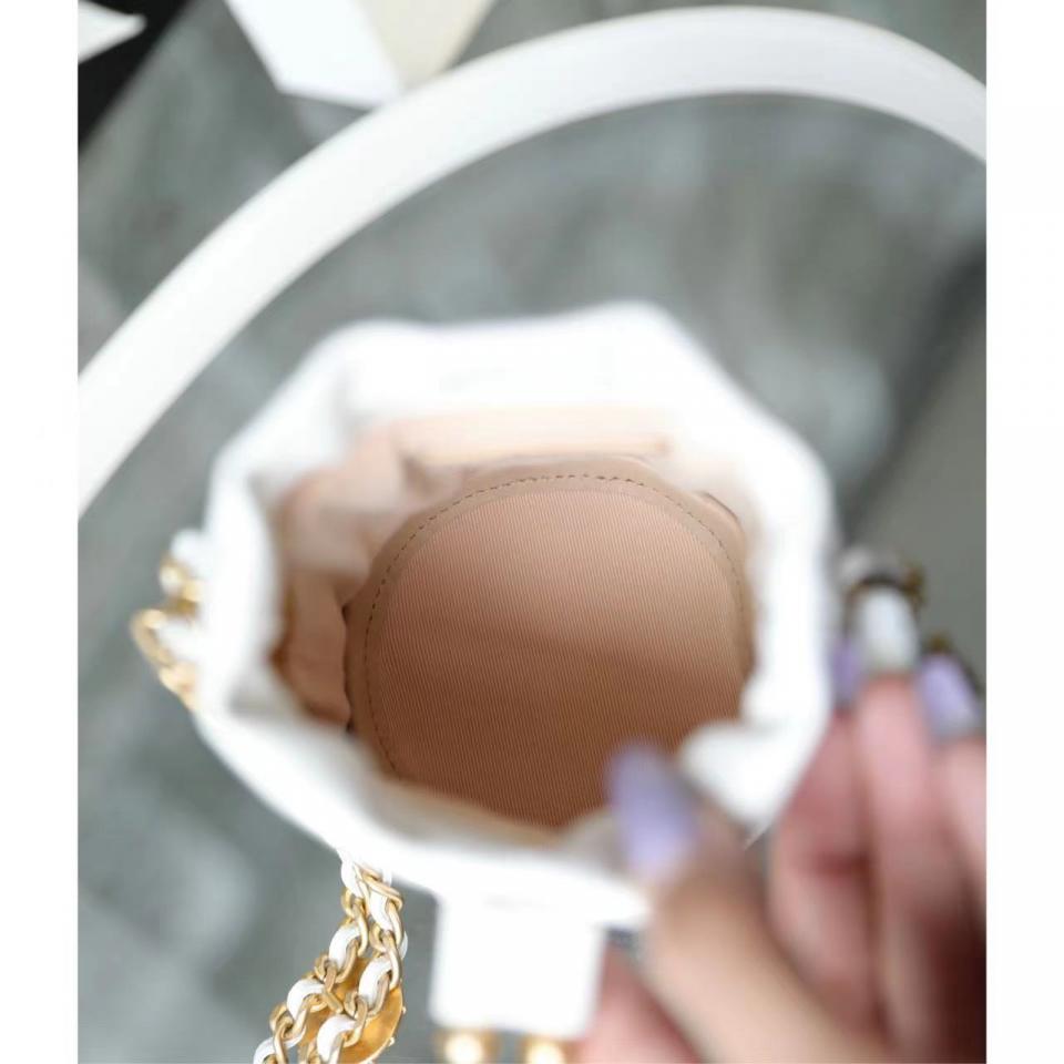 2022春夏新品 高級手工坊 徽章金幣鏈條Mini水桶包(白色) 最火爆系列