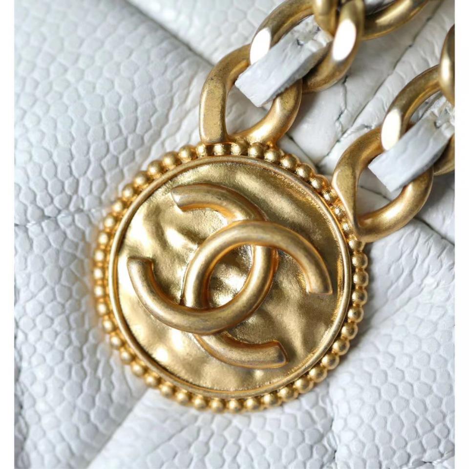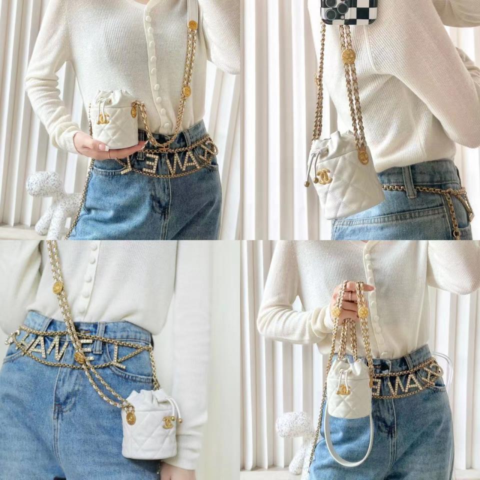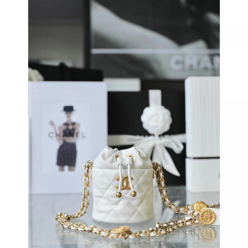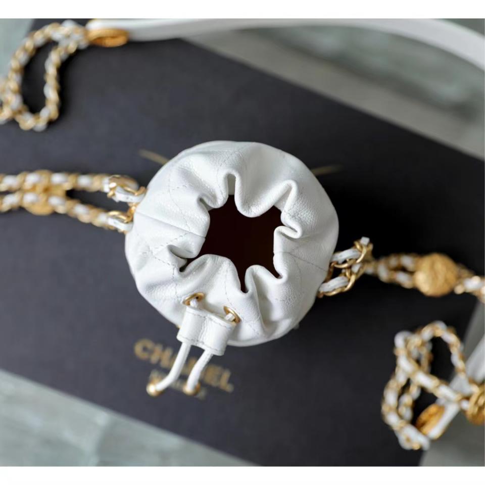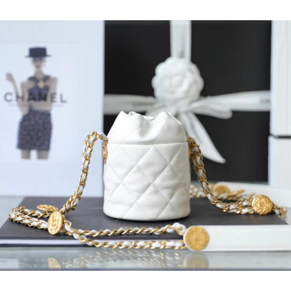 2022春夏新品 高級手工坊 徽章金幣鏈條Mini水桶包(白色) 最火爆系列