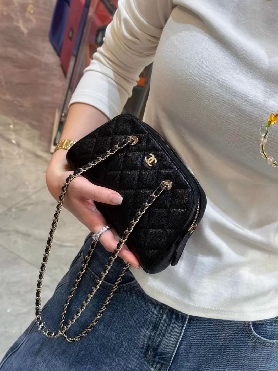 將一貫的優雅語言與現代設計巧妙融合,整體圓潤的包身線條,搭配標誌性的雙C金屬扣,低調卻極具辨識度,完全展現出不費力的高級感。