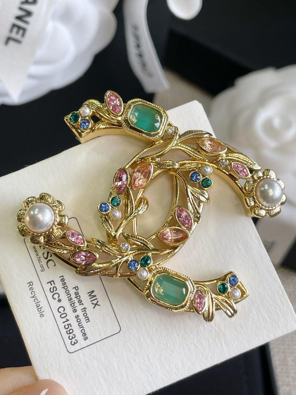 2023春夏 C家22K彩色寶石珍珠胸針