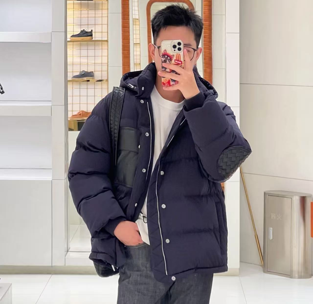 在秋冬的奢華男裝中,如何將品牌標誌性的皮革元素與實用的羽絨服結合,Bottega Veneta 給出了完美的答案。