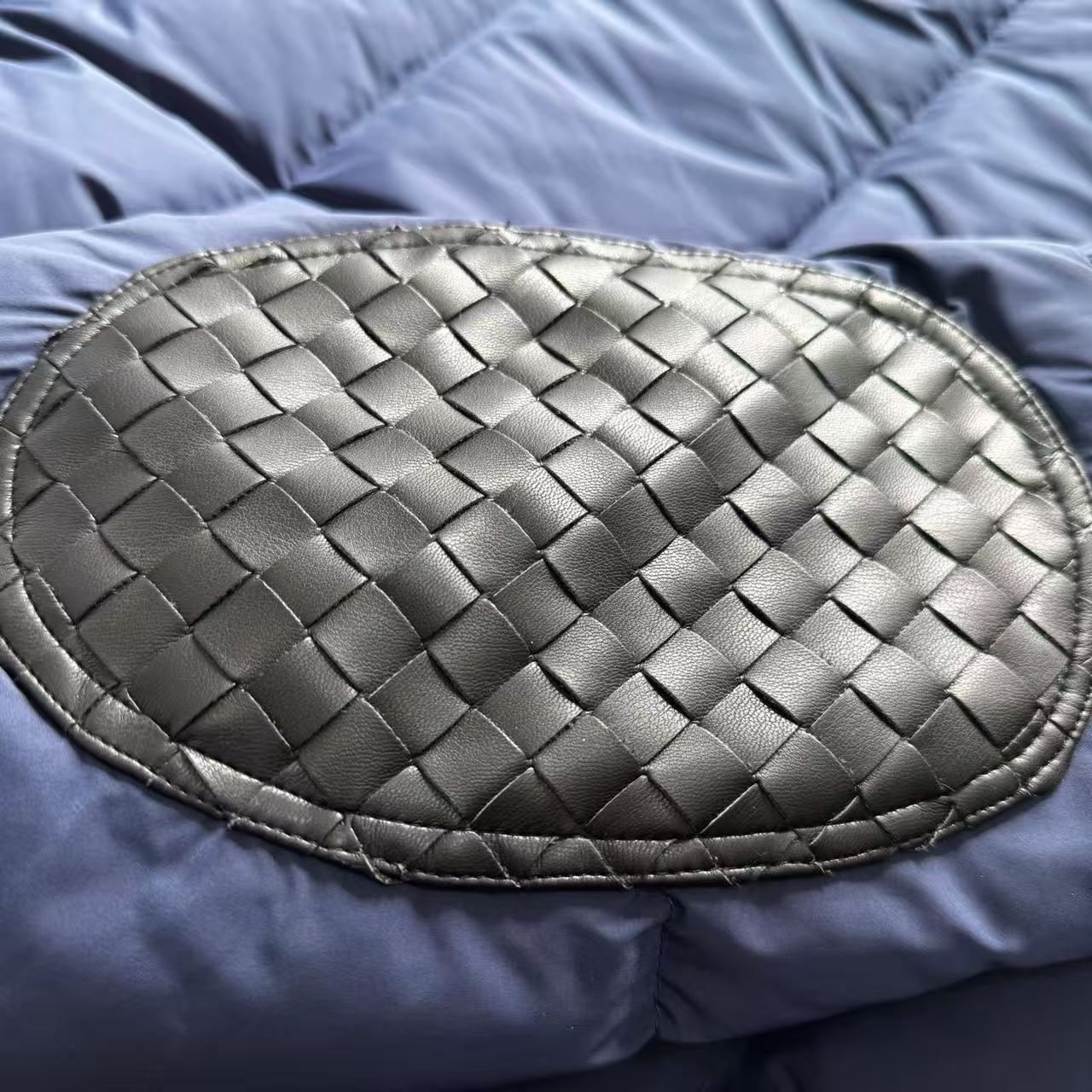 皮革編織拼接:品牌標誌性的編織裝飾,是透過精密的小羊皮貼片拼接工藝完成。將皮革牢固地縫製在棉質面料上,不僅考驗工匠的車縫穩定度,更讓衣服呈現出獨特的視覺深度。