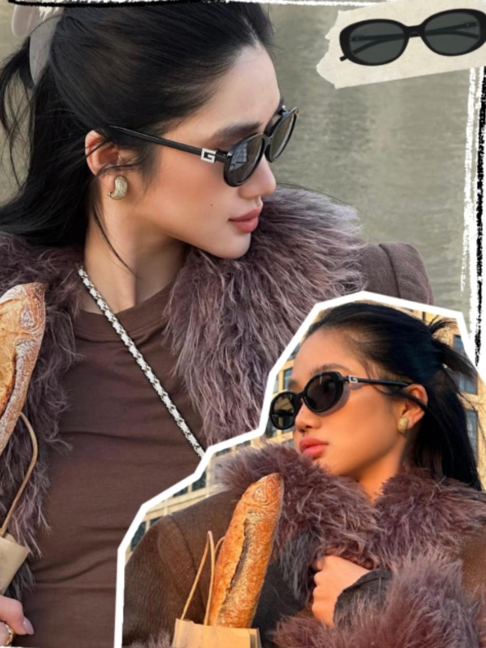這次採用椭圓貓眼的窄框設計,帶有一點復古文藝感,又能修飾臉型比例,視覺上達到自然提拉、顯臉小的效果。