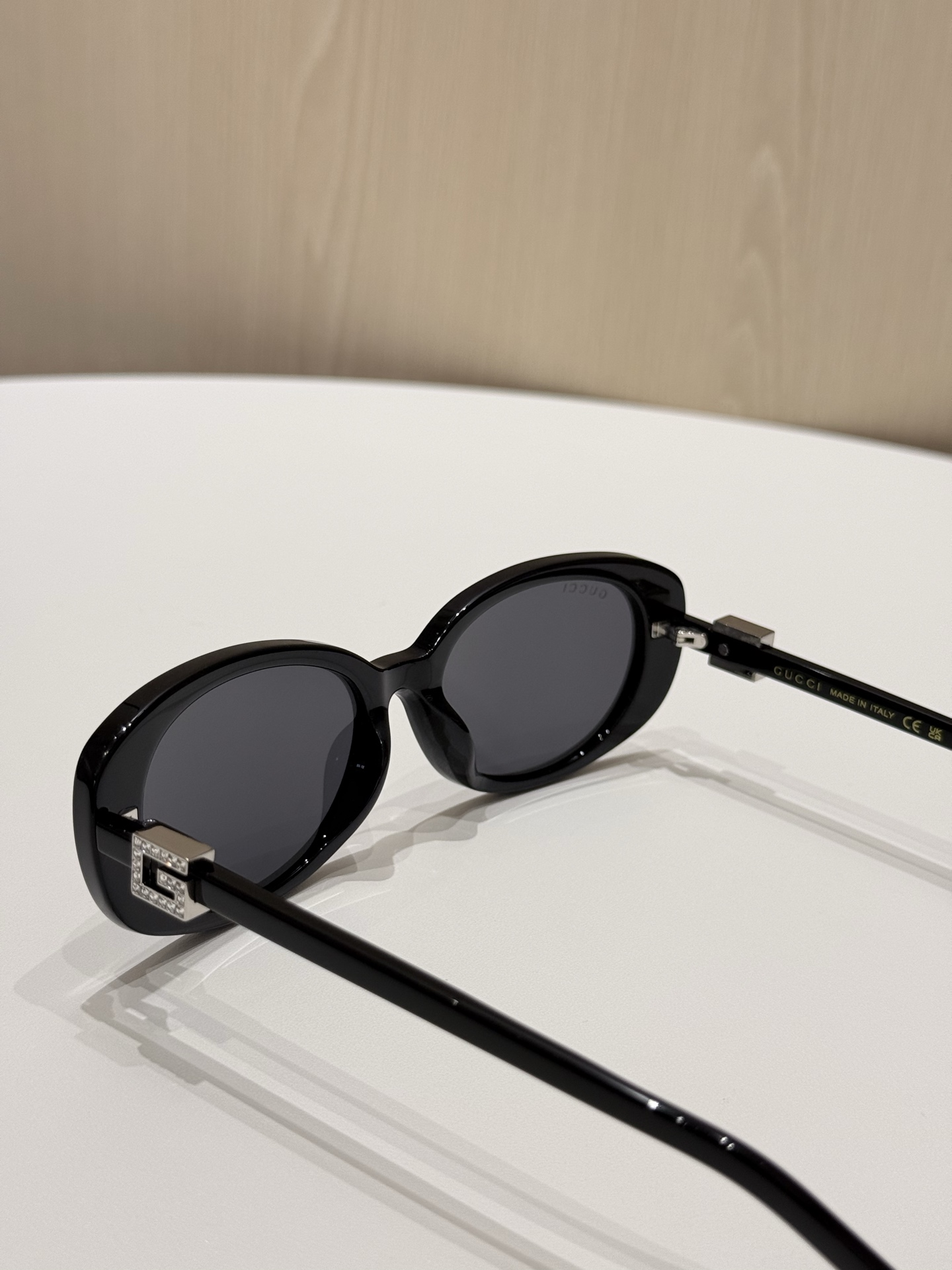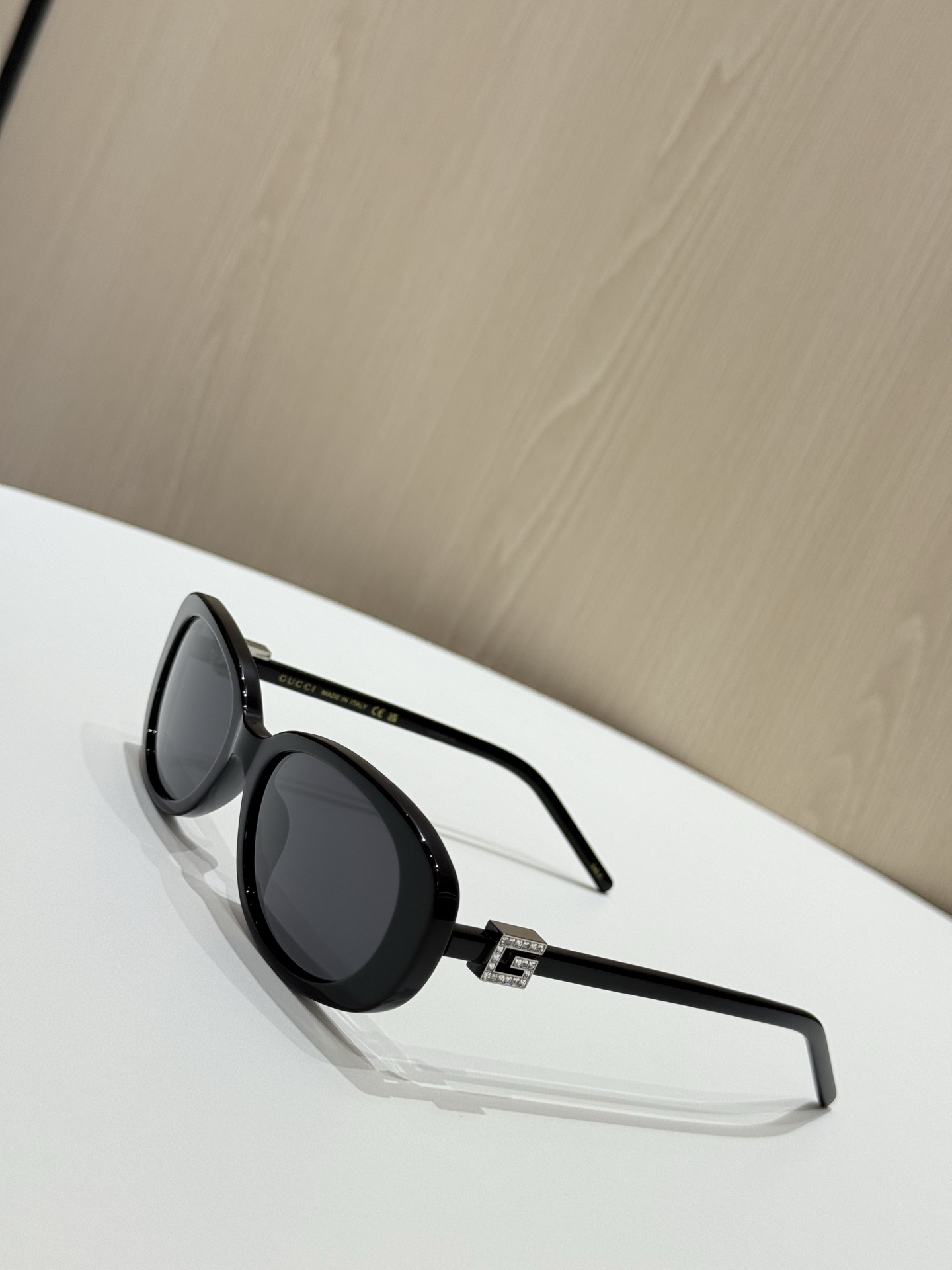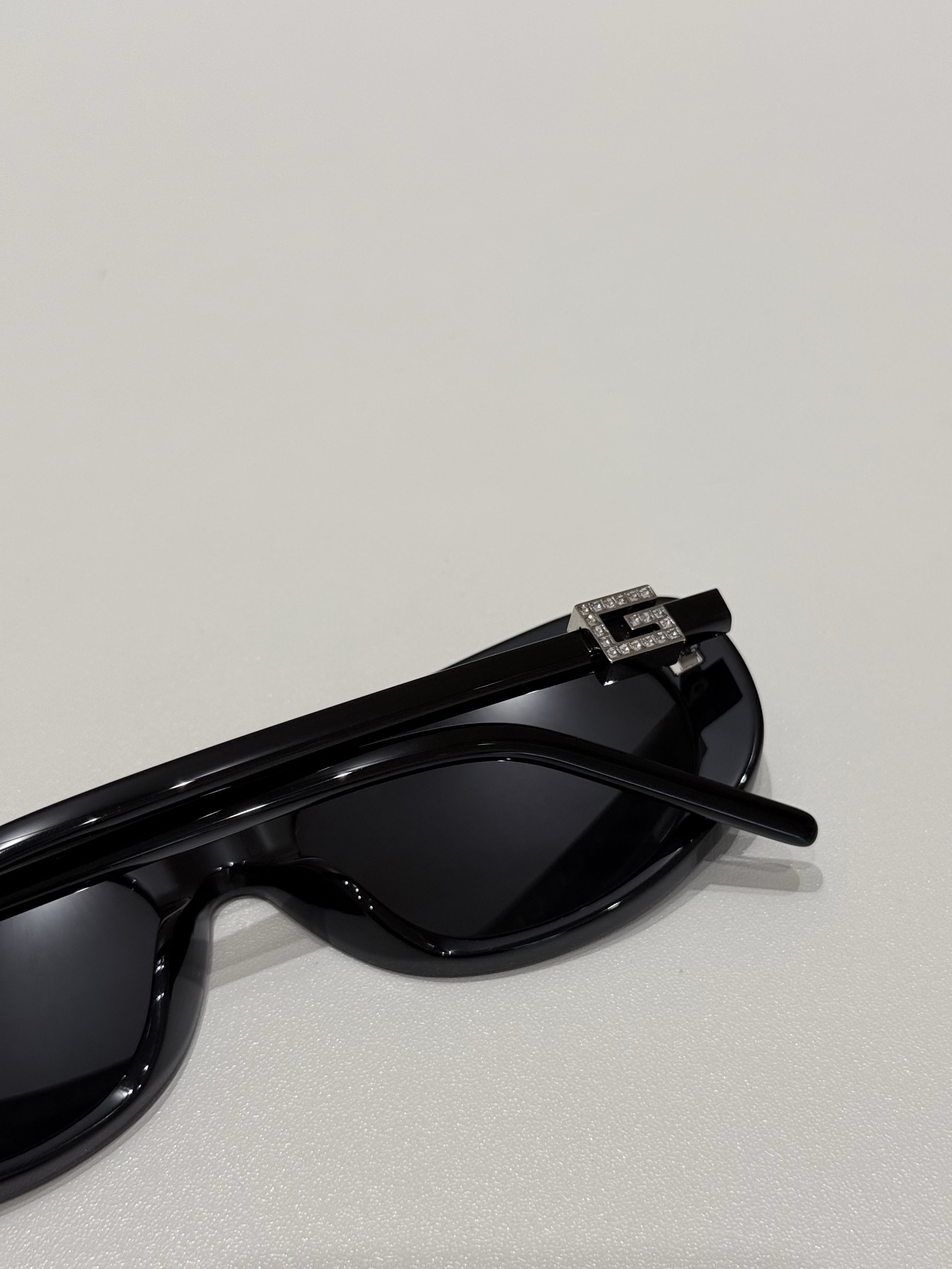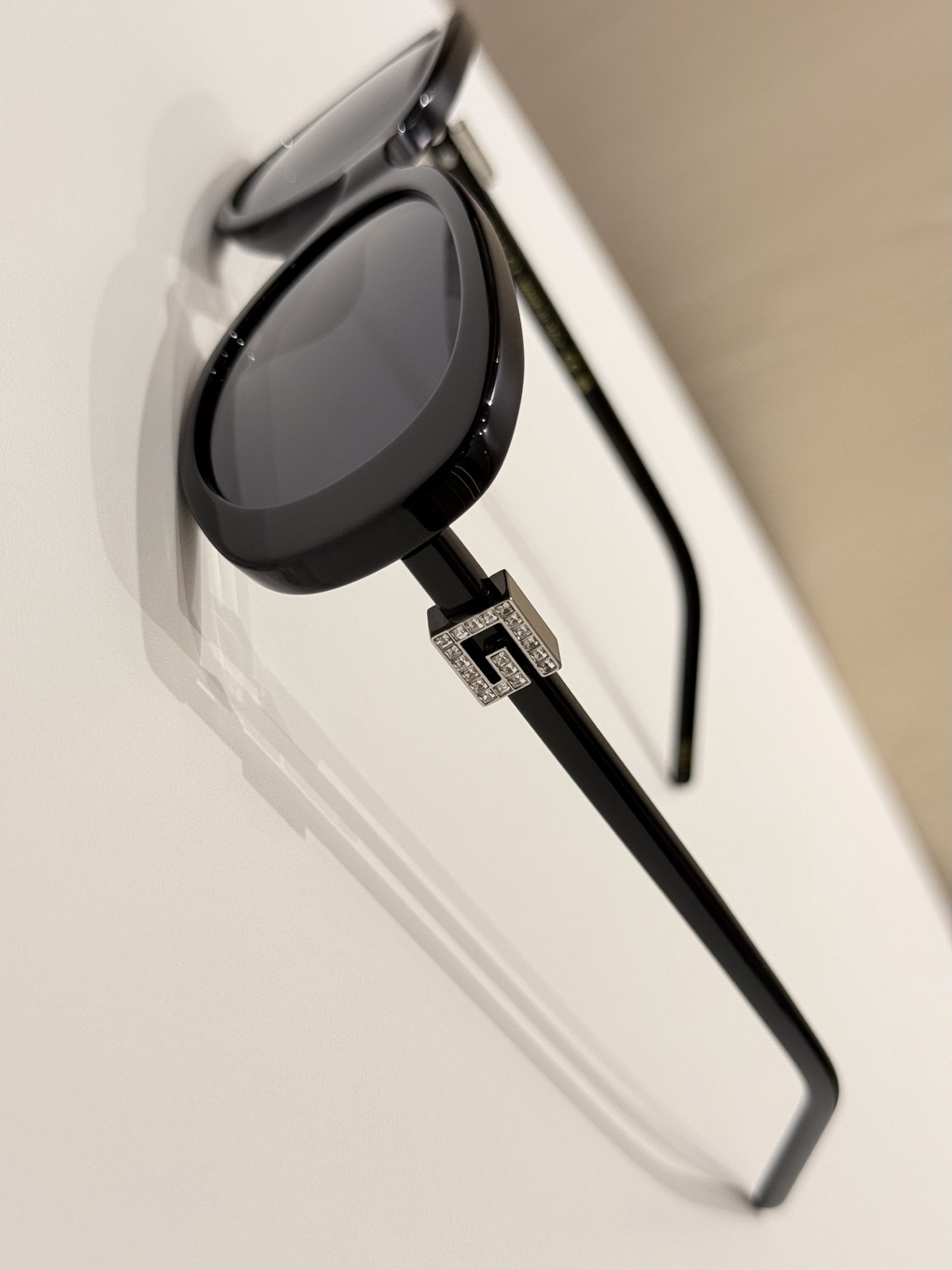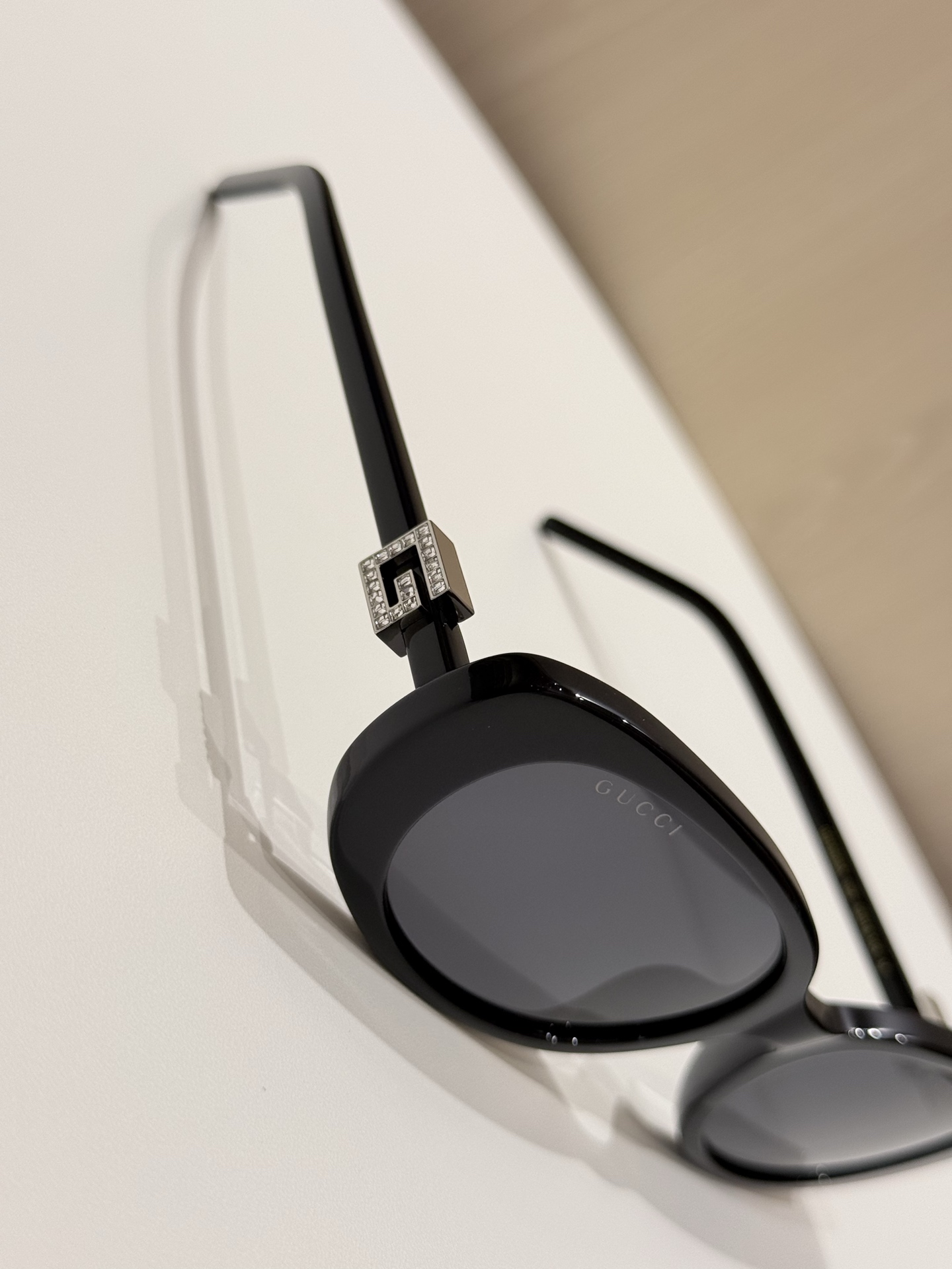 鏡腿的部分延續品牌標誌性的設計語言,以立體方形「G」Logo 展現識別度,部分款式還點綴晶瑩水鑽,細節中散發出低調奢華感。