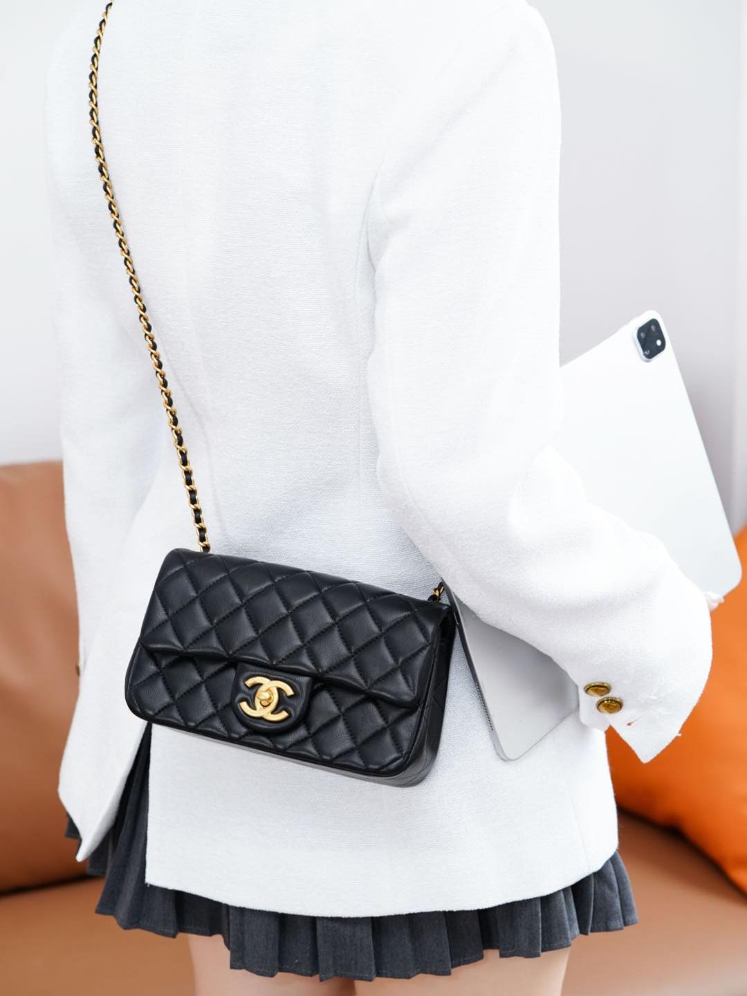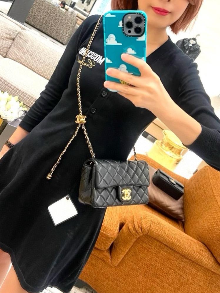 2025早秋新品 C家 25b雙C調節扣鍊條包CF大𝐦𝐢𝐧𝐢 (20cm)