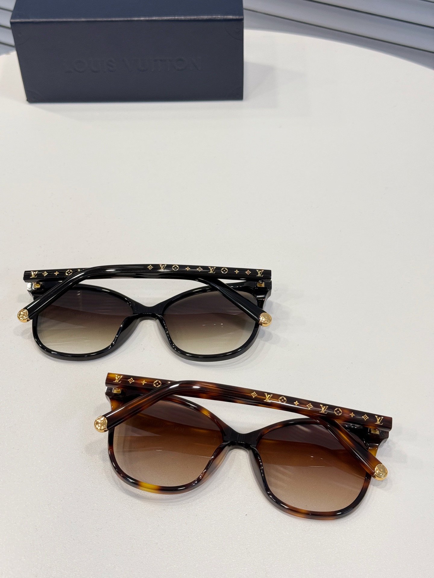 裝飾細節: 精緻的 Monogram 花卉 和 LV Circle 標識,以細膩的工藝點綴在鏡框各處,展現品牌的經典魅力。