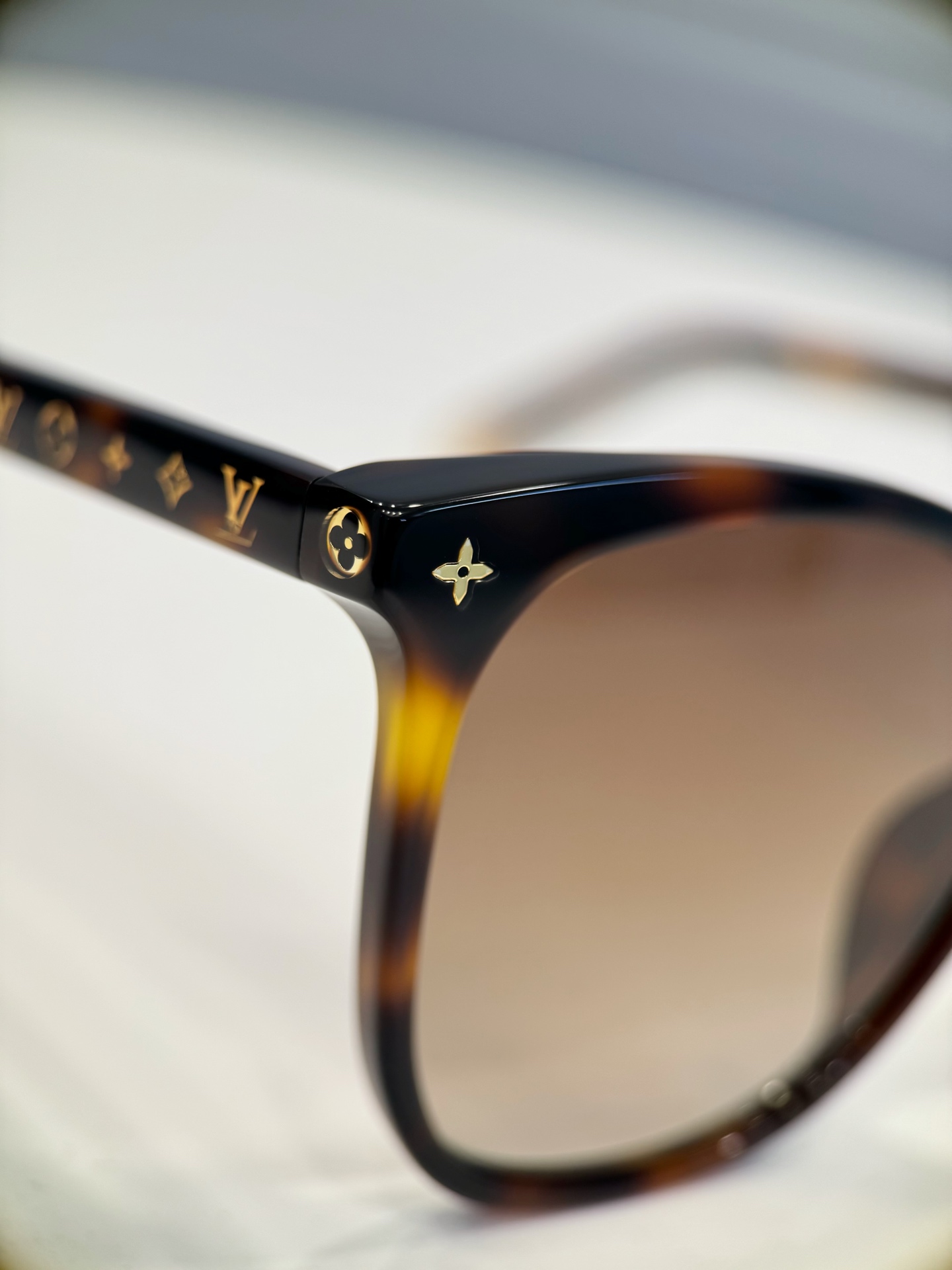 最讓我愛不釋手的是它在細節上的巧思!經典的 Monogram 花卉 和 LV Circle 標識,分別點綴在鏡腿和鉸接內側,低調地展現品牌質感。更特別的是,Monogram 花卉還在樁頭和鏡腿的末端綻放,就像藝術品般精緻,讓人忍不住多看幾眼!