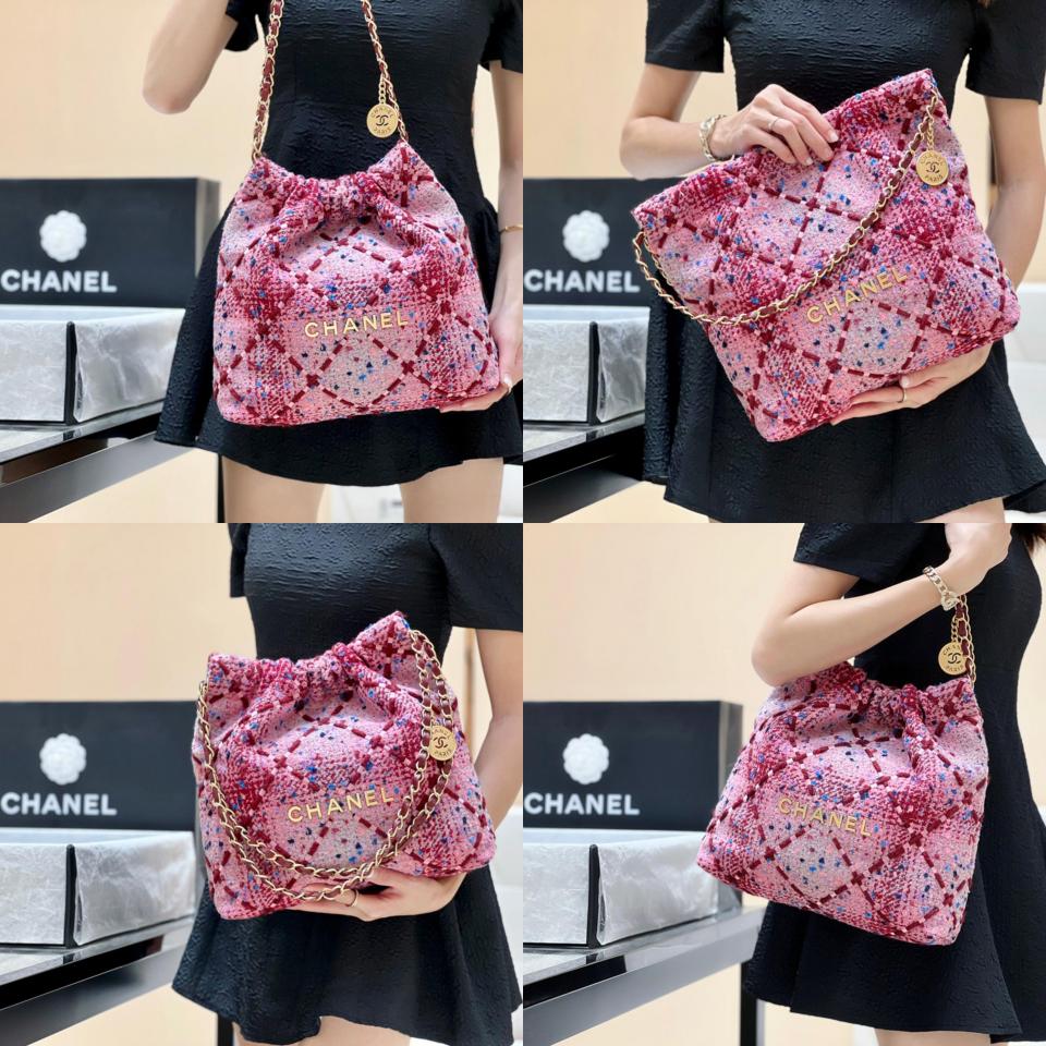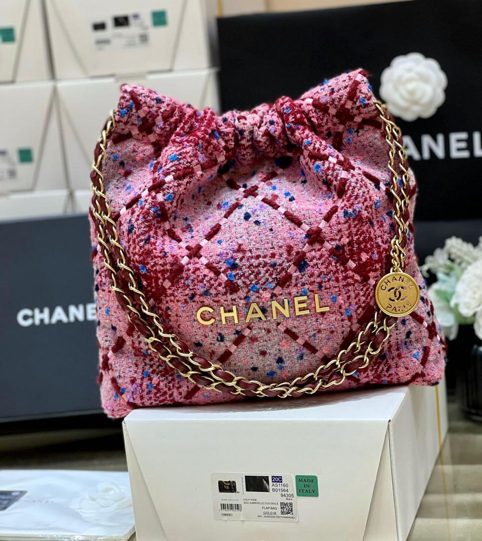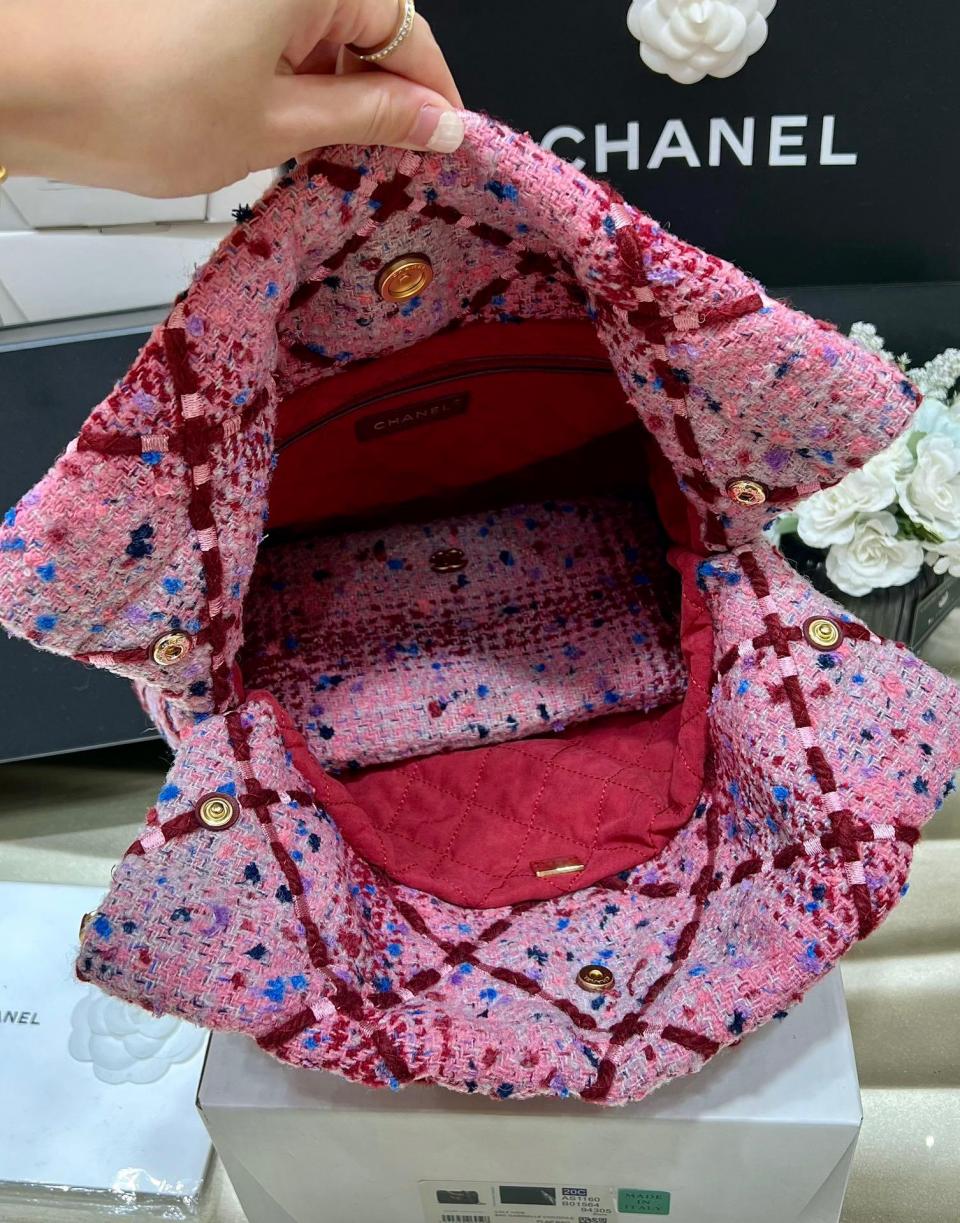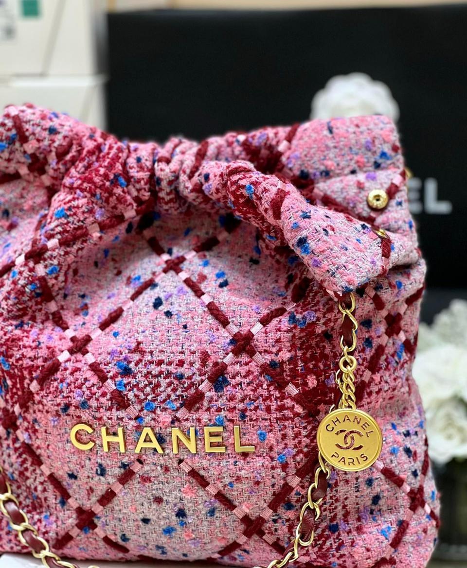 2022秋冬新品 新配色來襲 超級火爆款 22bag粉色花呢單肩購物袋(小號)