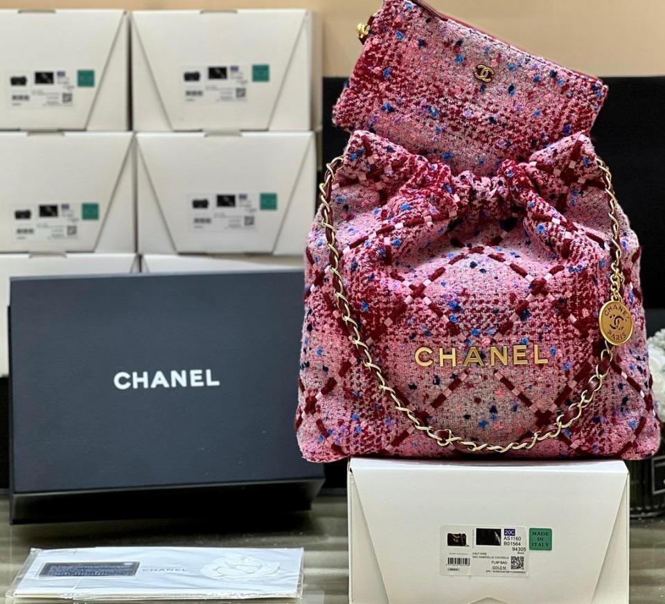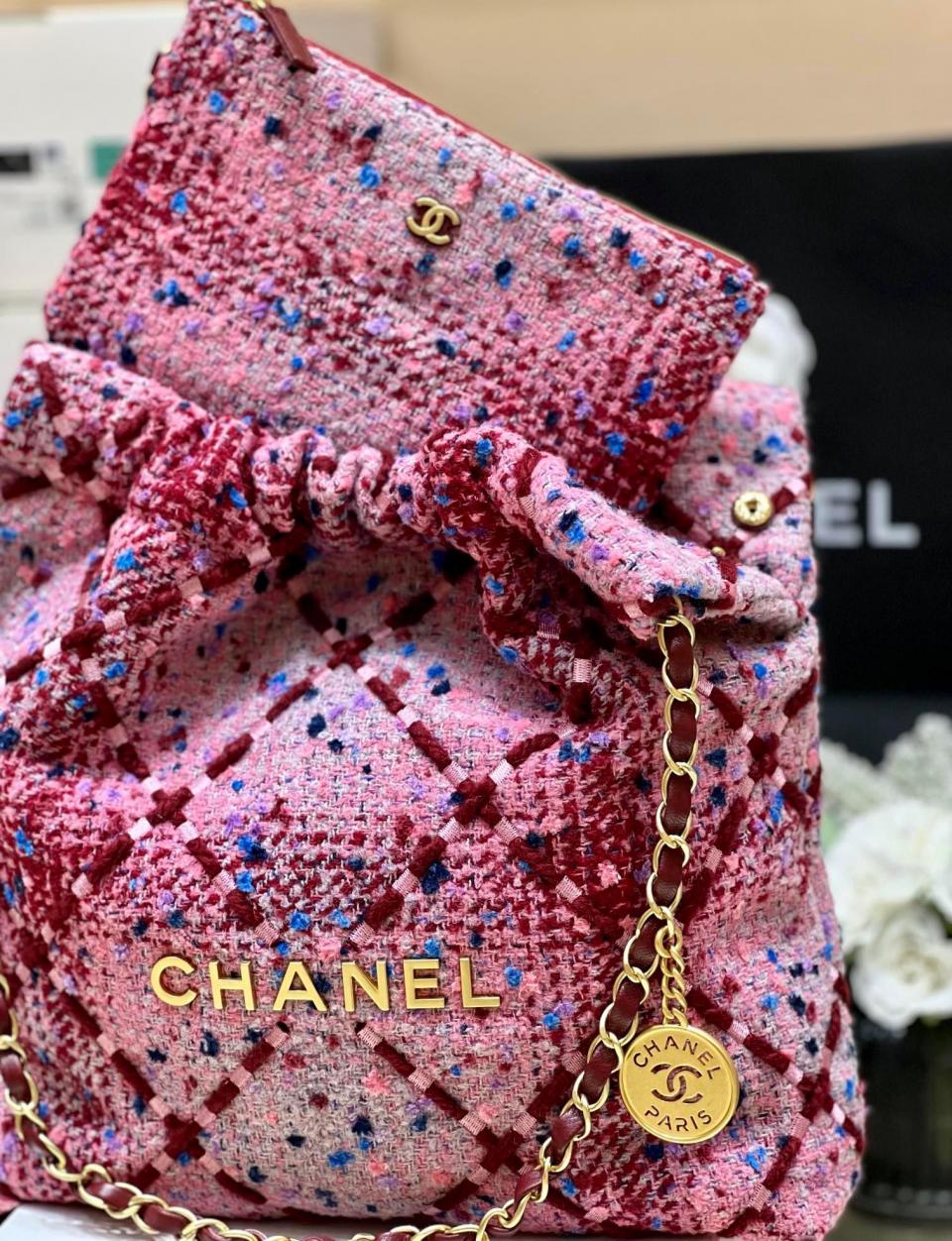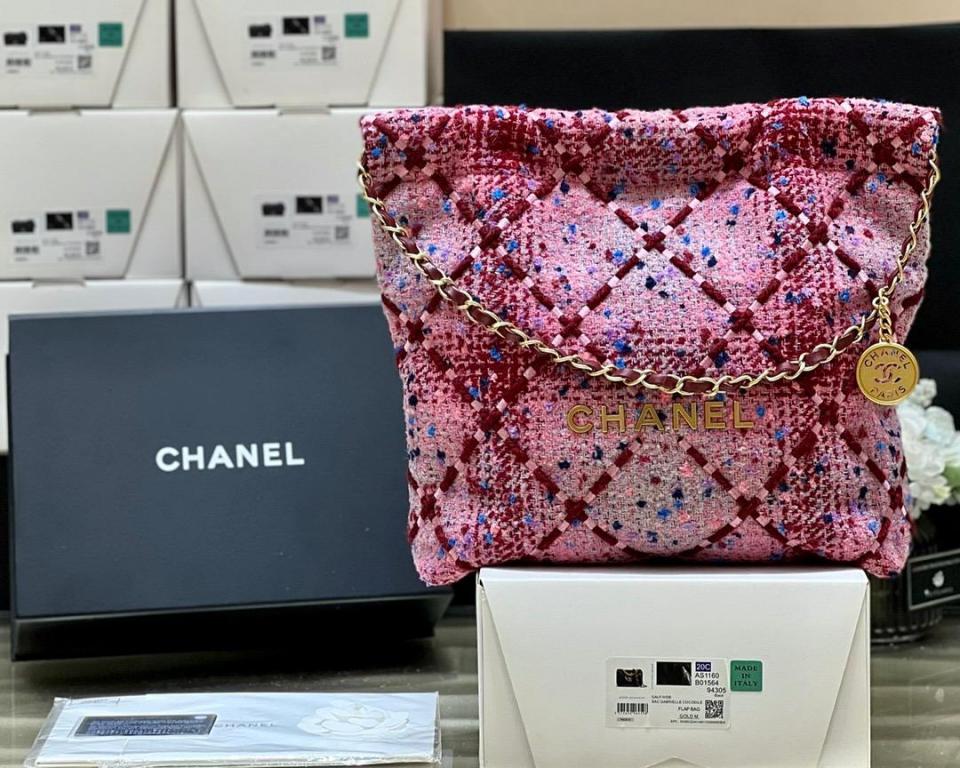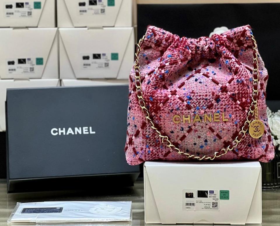 2022秋冬新品 新配色來襲 超級火爆款 22bag粉色花呢單肩購物袋(小號)