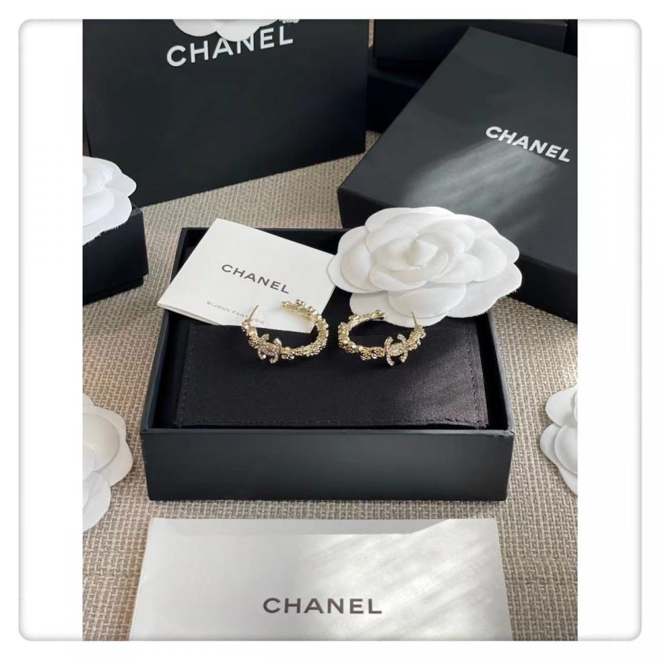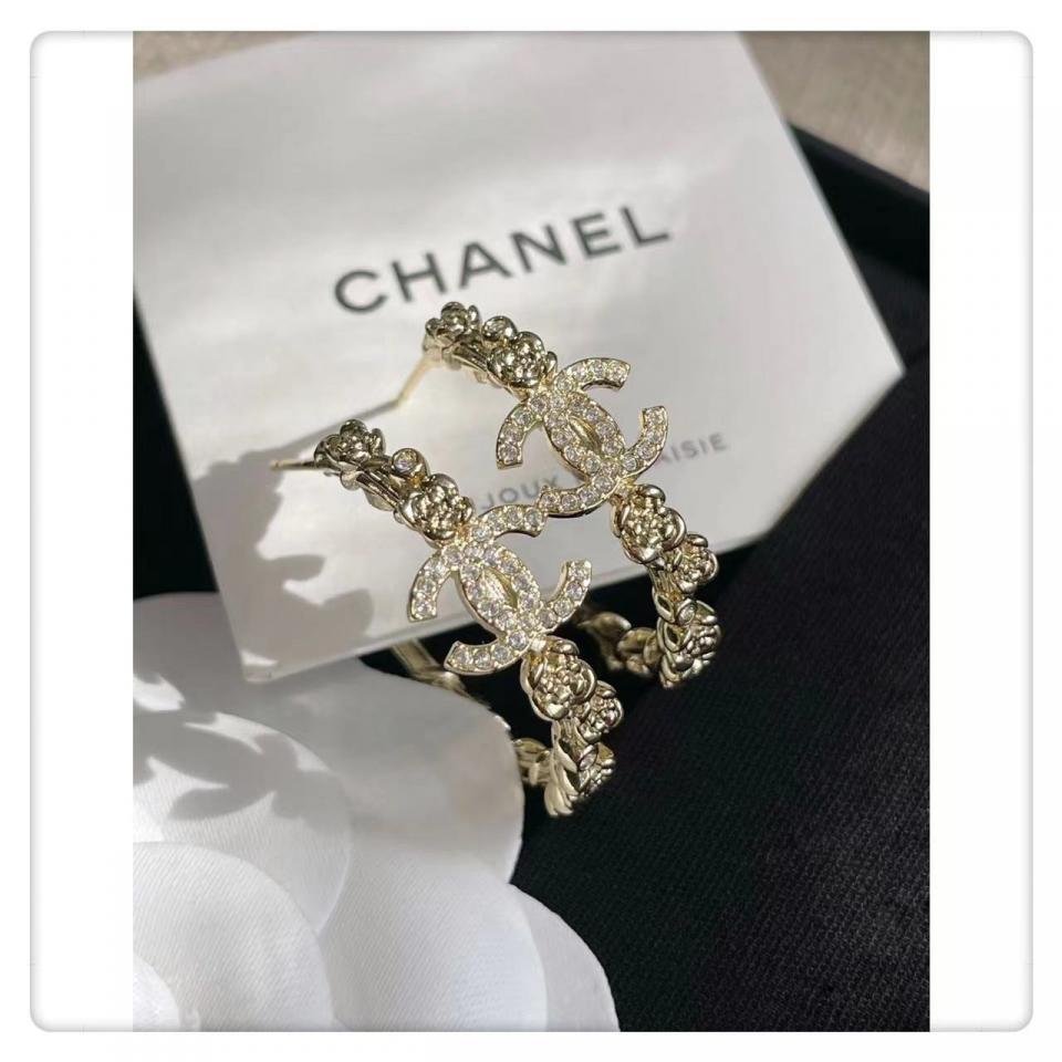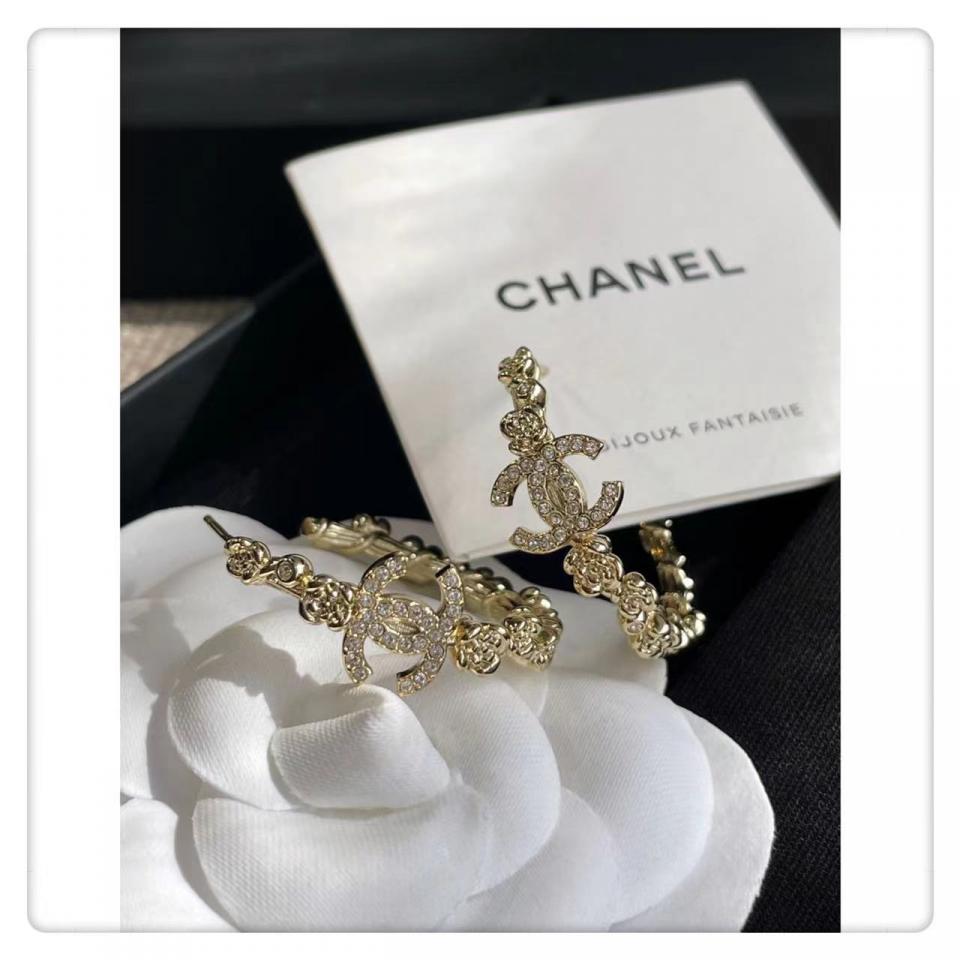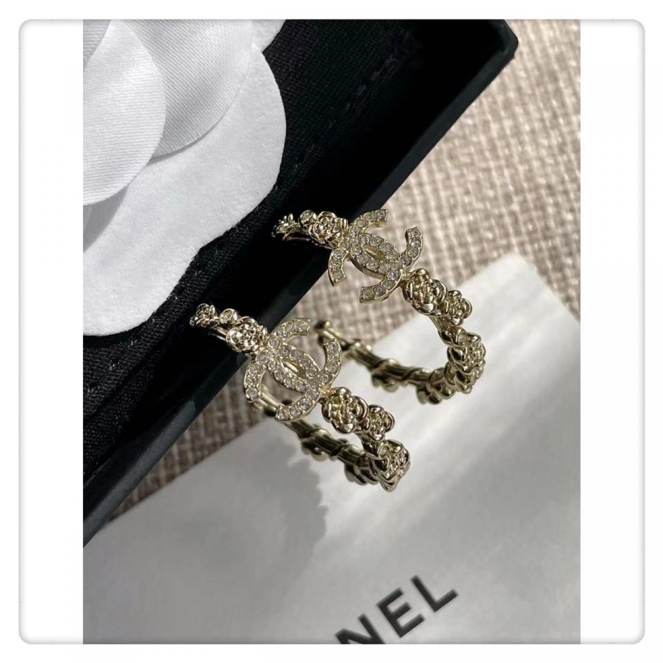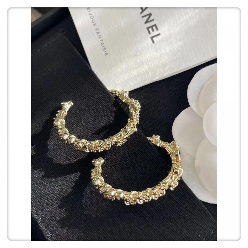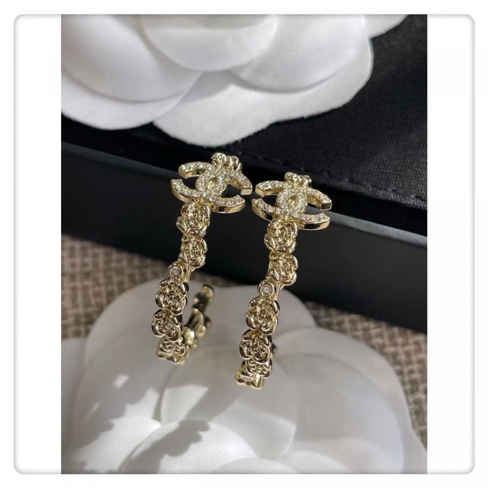 2022春夏 C家浮雕茶花雙C耳圈耳環