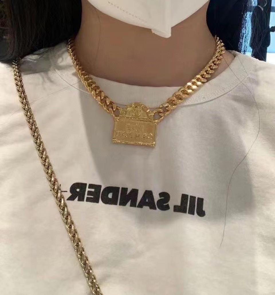《尺寸》項鍊鍊長約41CM,另有延長鏈約9CM,門牌部分寬約3.2CM