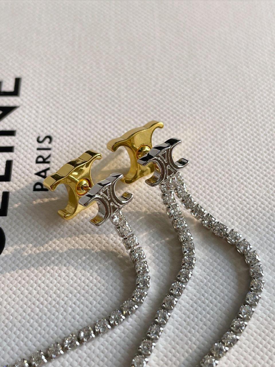 耳釘由兩個凱旋門標誌組成,一金一銀,分色電鍍,非常重工!非常清晰細膩!滿鑽鏈條流蘇的設計,什麼風格都能駕奴一年四季都可以佩戴的系列!