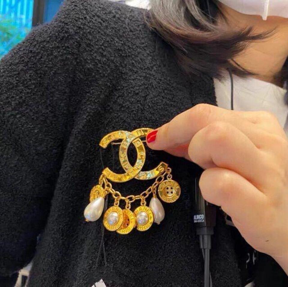 2021 雙C鈕扣流蘇胸針 整個胸針非常有設計感 還可以當包包掛件
