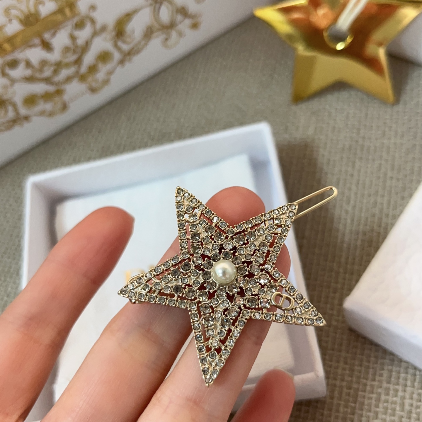 2026早春新品 D家 五角星珍珠CD髮夾