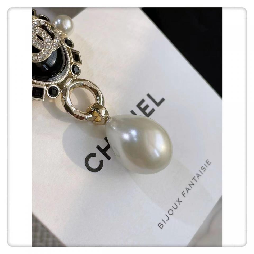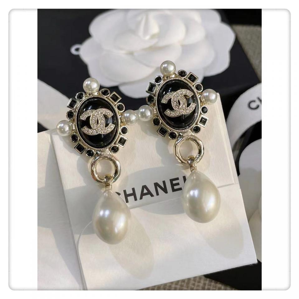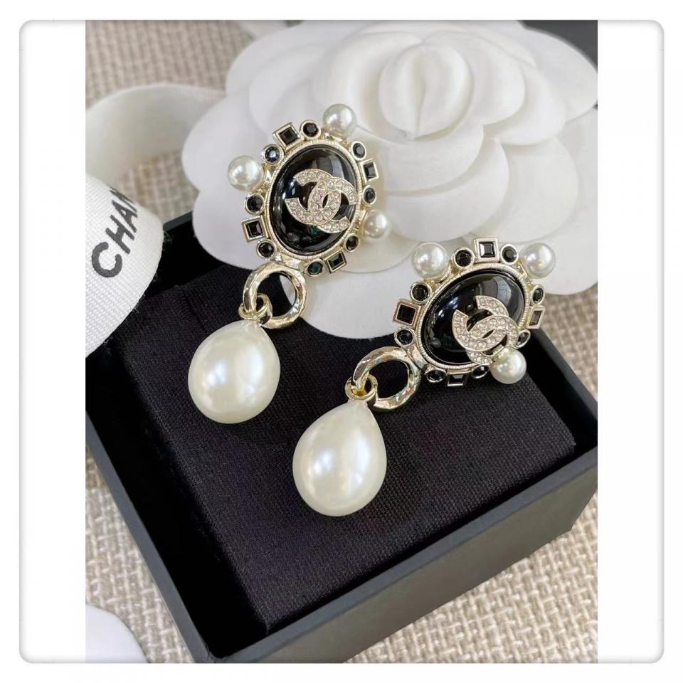 2022春夏 C家黑色鑽橢圓珍珠耳環