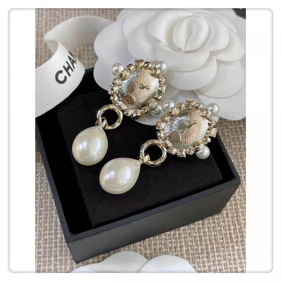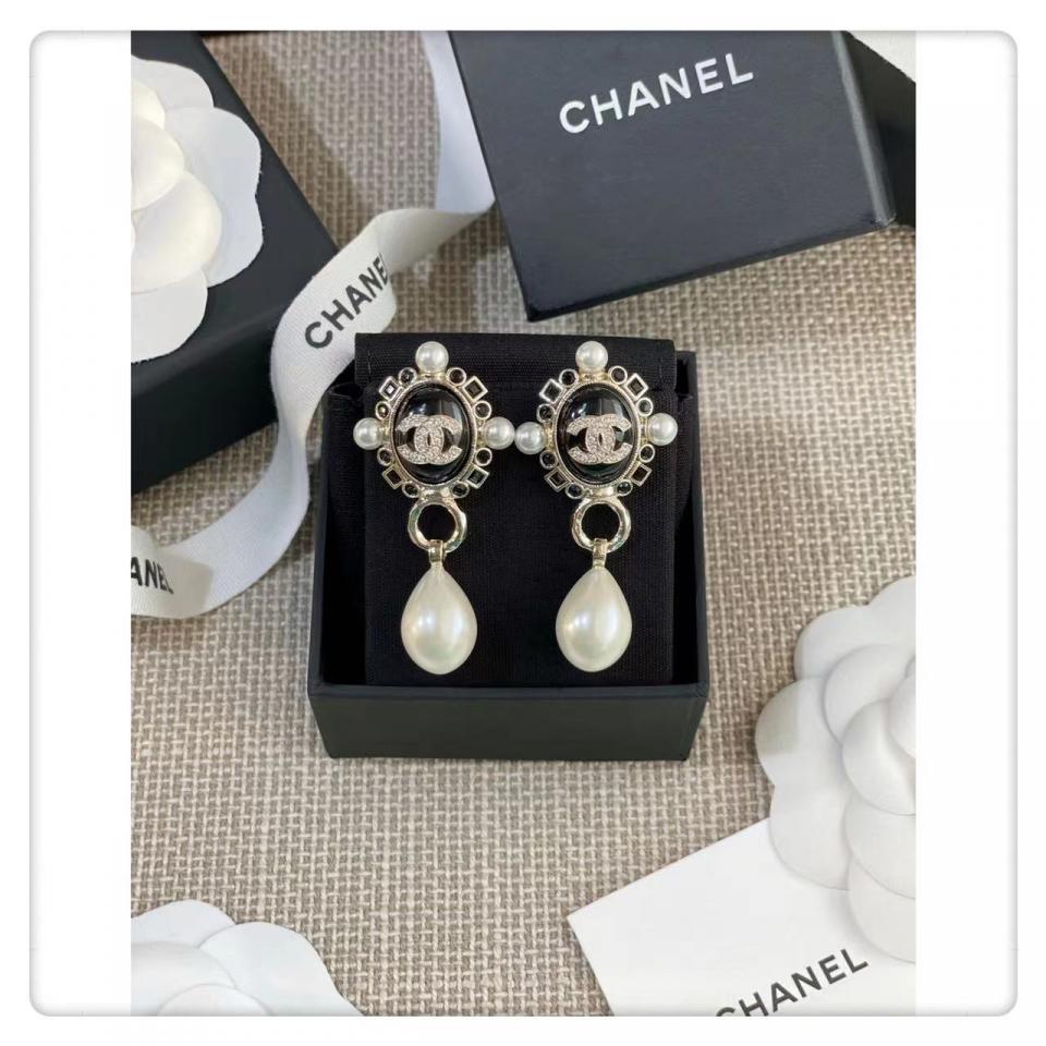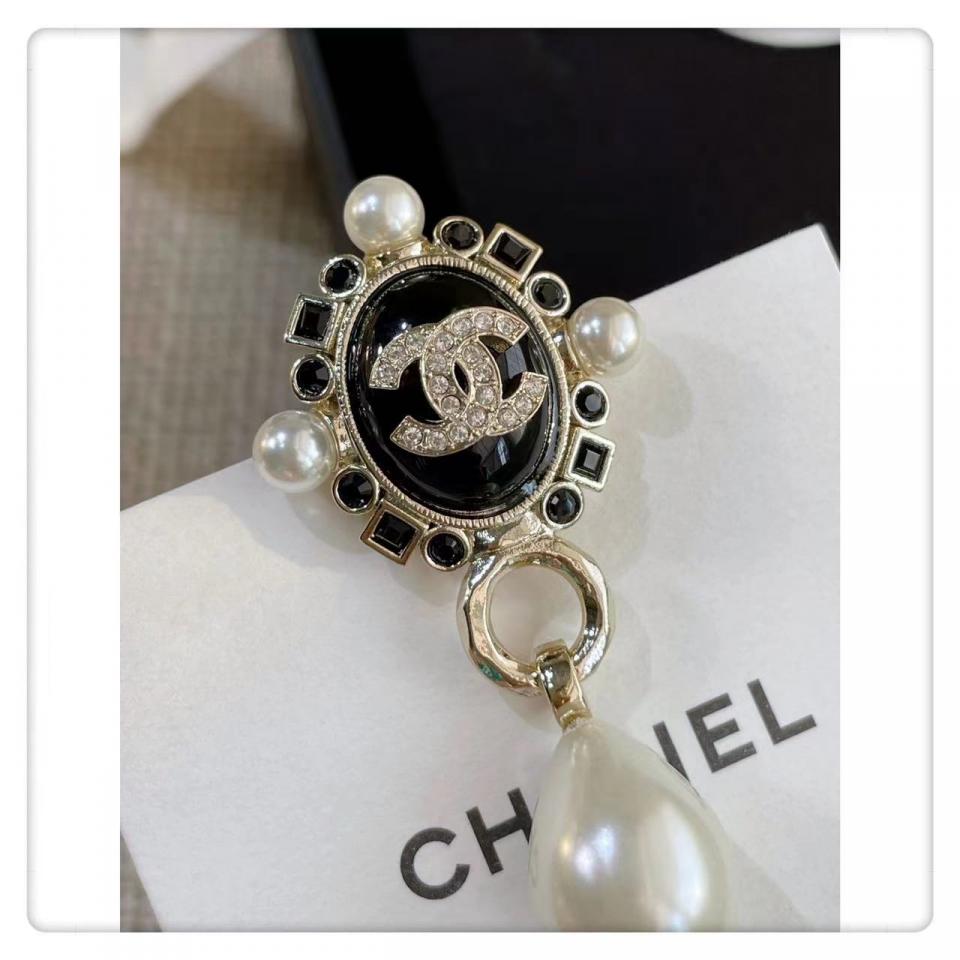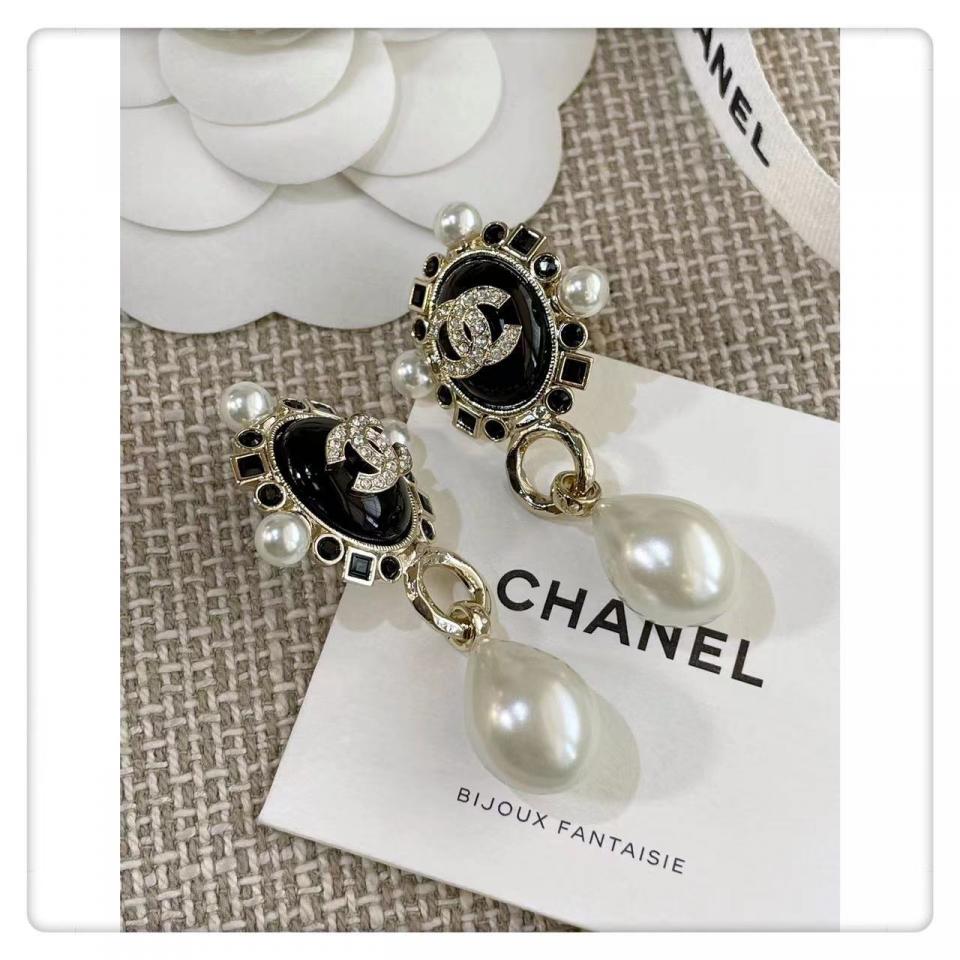 2022春夏 C家黑色鑽橢圓珍珠耳環