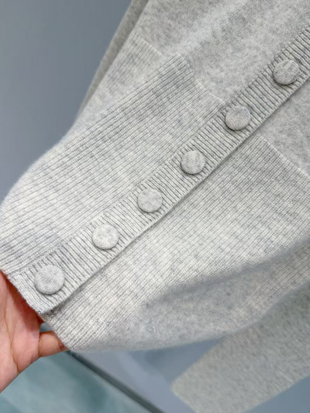 這件開衫採用 100% 純羊毛製作,觸感非常柔軟細膩,保暖度也超出色,秋冬單穿或內搭都不會覺得冷。