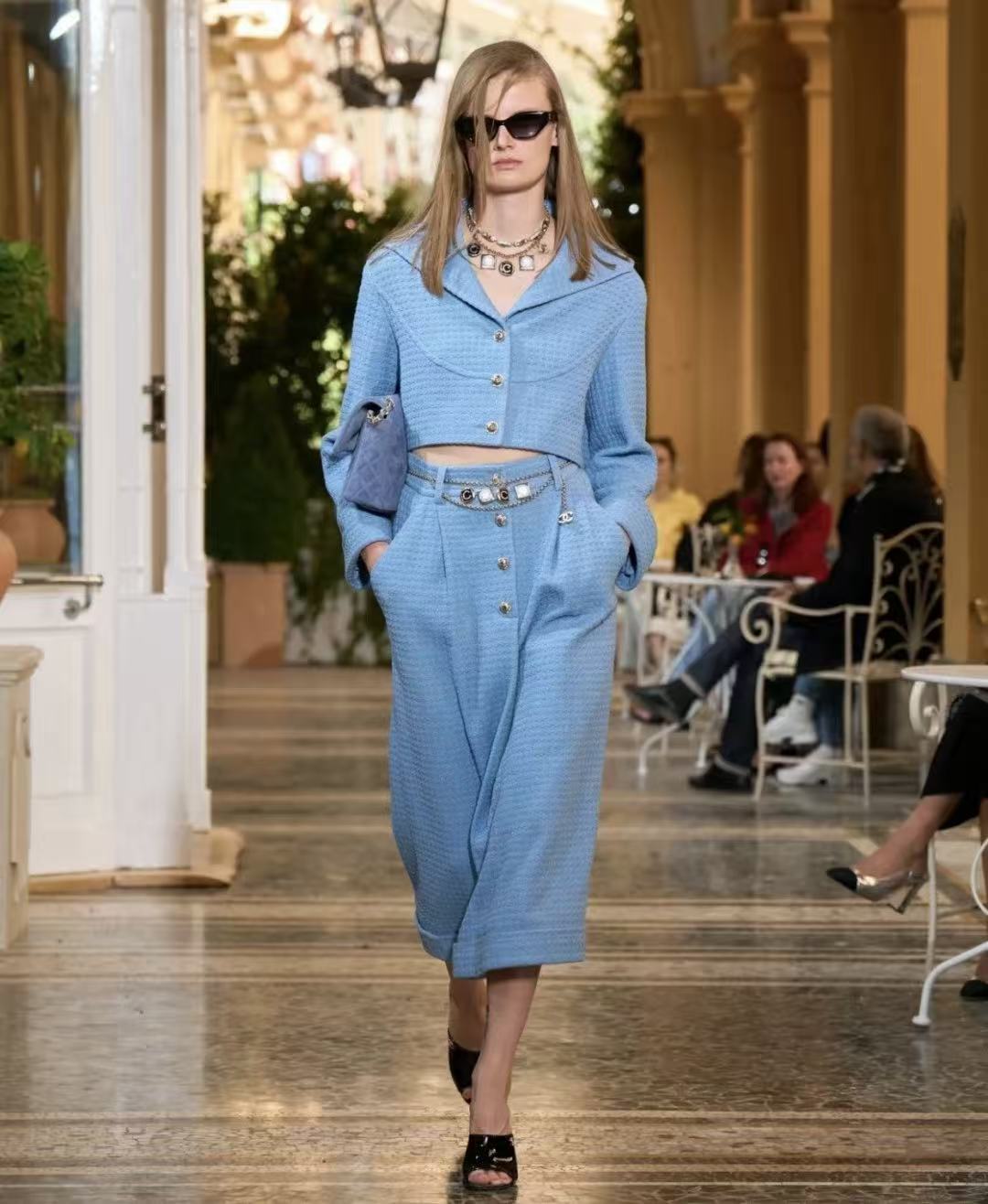 版型: 走秀款立體剪裁,外套為短款修身設計,裙裝為高腰包臀剪裁。