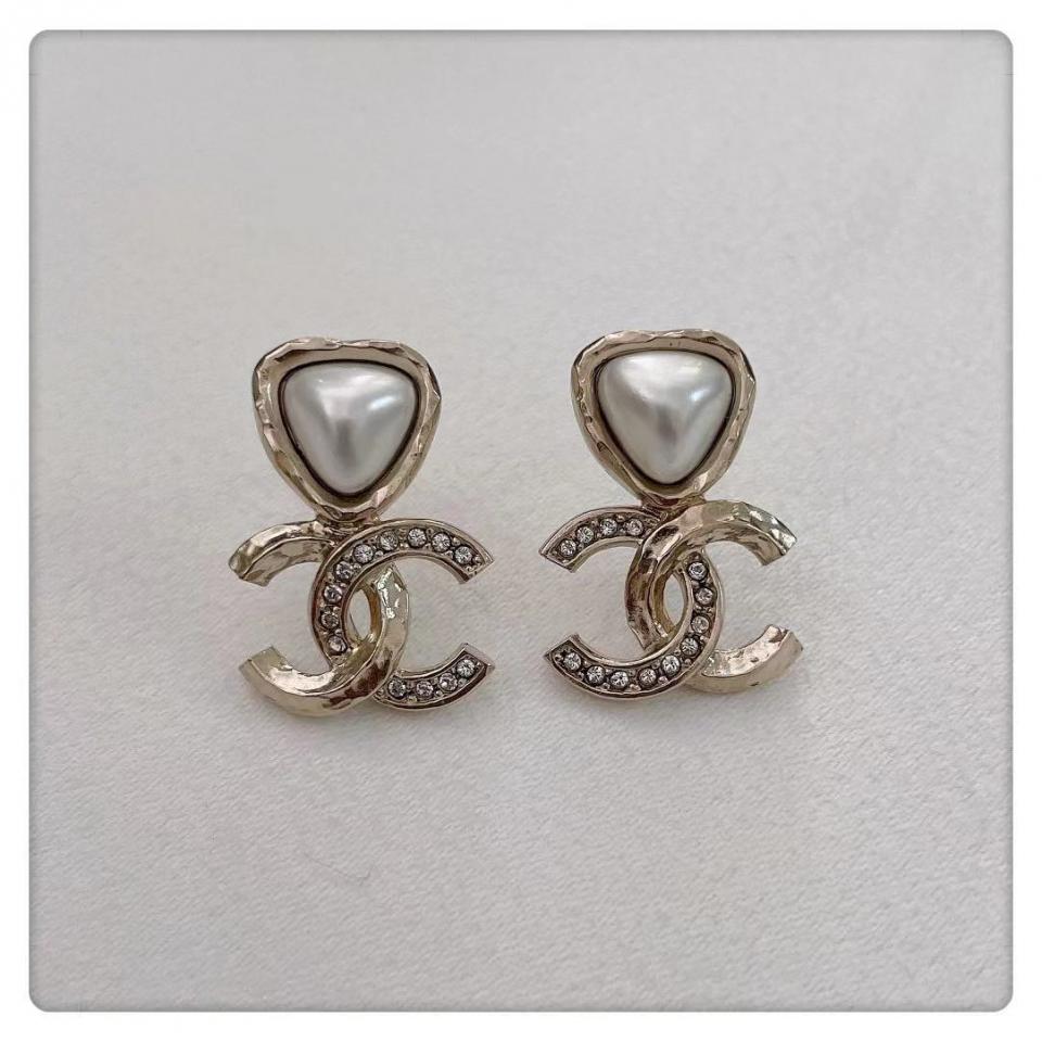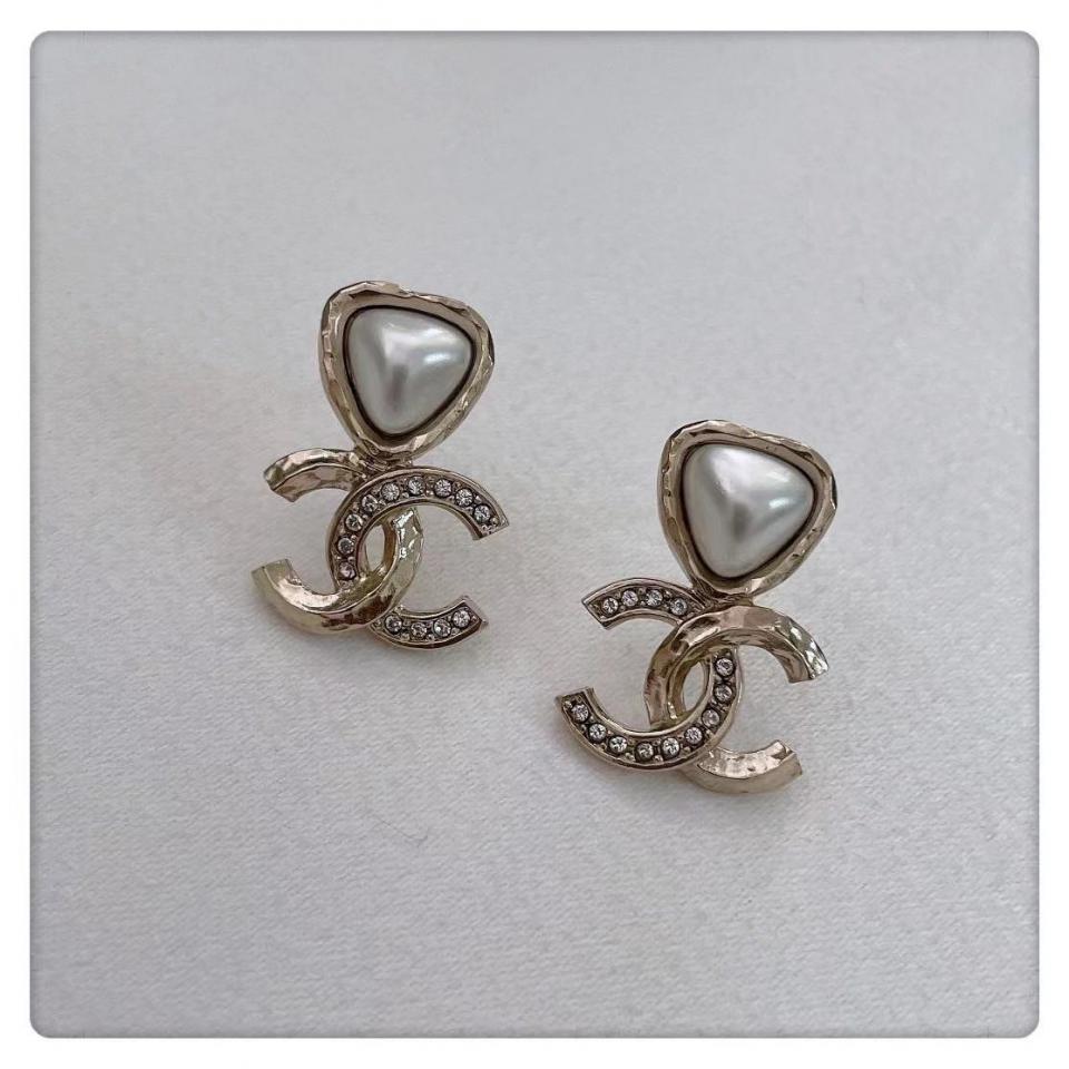 上邊三角形的珍珠是需要定制的,沒有現成的規格!Z一致施華洛珍珠+水晶,五金正反面都是有手工敲打出來的凹凸不平紋路,背面兩種工藝!帶點俏皮又有活潑力,絕對是一對減齡神器!
